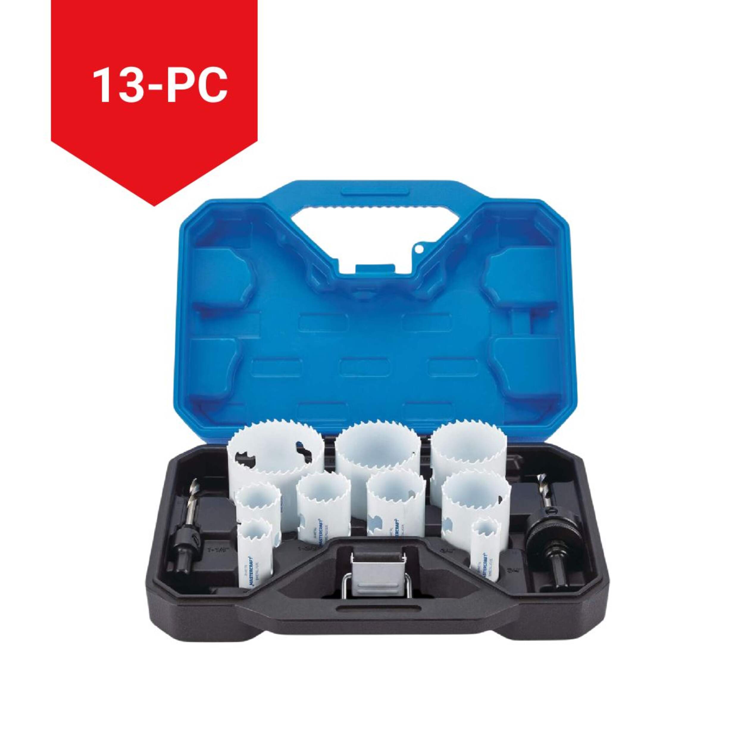 L'ensemble de scie-cloche bimétallique pour plomberie et électricité Mastercraft pour le métal, le bois et le plastique est conçu pour répondre aux besoins des projets de plomberie et d'électricité. Avec sa construction bimétallique durable, cet ensemble assure une coupe fiable et efficace pour divers matériaux. Doté de 13 pièces de différentes tailles, il est polyvalent pour une grande variété d'utilisations. L'ensemble comprend un étui de rangement robuste pour garder tous les composants organisés et prêts à l'emploi, ce qui en fait un ajout essentiel à n'importe quelle trousse d'outils.