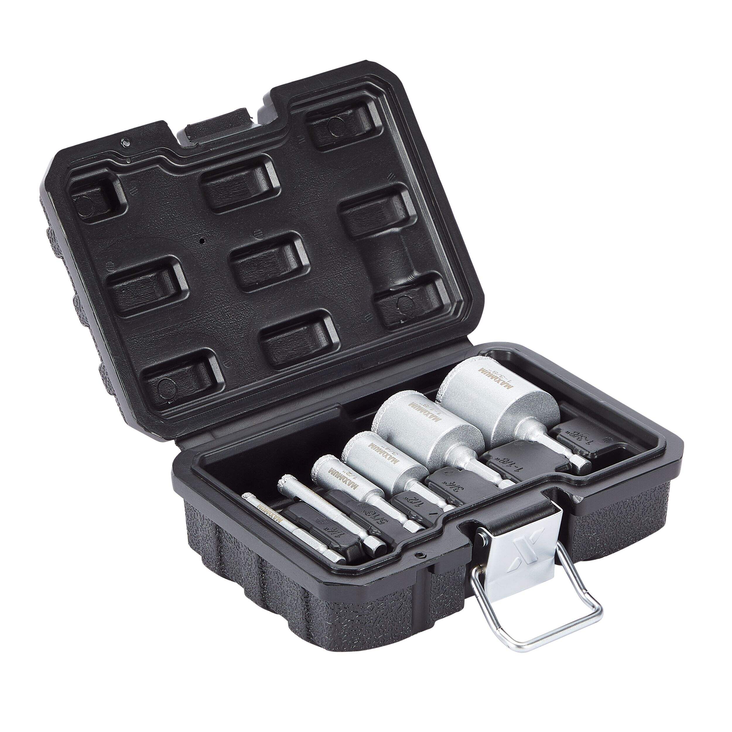 Les scies-cloches à grain diamant MAXIMUM sont conçues pour une coupe rapide et efficace. Les lames en diamant incluses dans cet ensemble de scies ont une forme unique de grande fente qui facilite le retrait des débris une fois le perçage terminé. Cet ensemble de scie-cloche MAXIMUM comprend 6 scies-cloches de différentes tailles, chacune spécialement conçue pour faire des coupes à sec. Chacune des puissantes lames de scie de cet ensemble est capable de percer des trous propres dans les matériaux durs, y compris le granite, la céramique et la pierre.