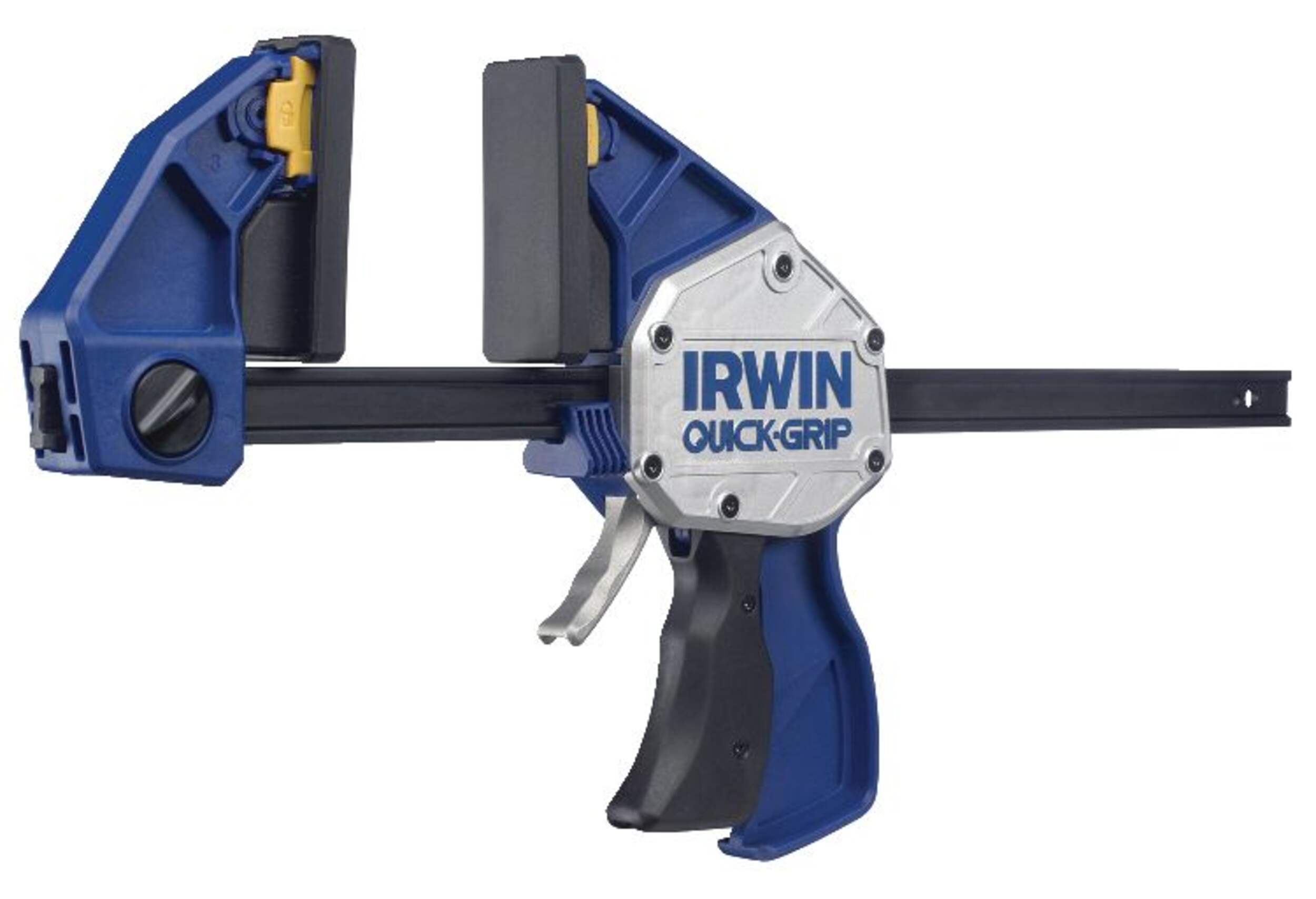 Fixez facilement de grandes pièces à travailler grâce à ce serre-joint à barre utilisable d'une main IRWIN QUICK-GRIPMD. Utilisable à une main, ce serre-joint permet un travail rapide et fluide, tandis que son bouton de changement rapide vous permet de passer d'un mode à l'autre pour accélérer votre travail. Les coussinets anti-rayures aident à protéger les surfaces tandis que les mâchoires pivotantes offrent plus de polyvalence. Conçu pour une utilisation pratique sur une variété de travaux, ce serre-joint à barre IRWIN est un accessoire incontournable pour votre trousse d'outils.
