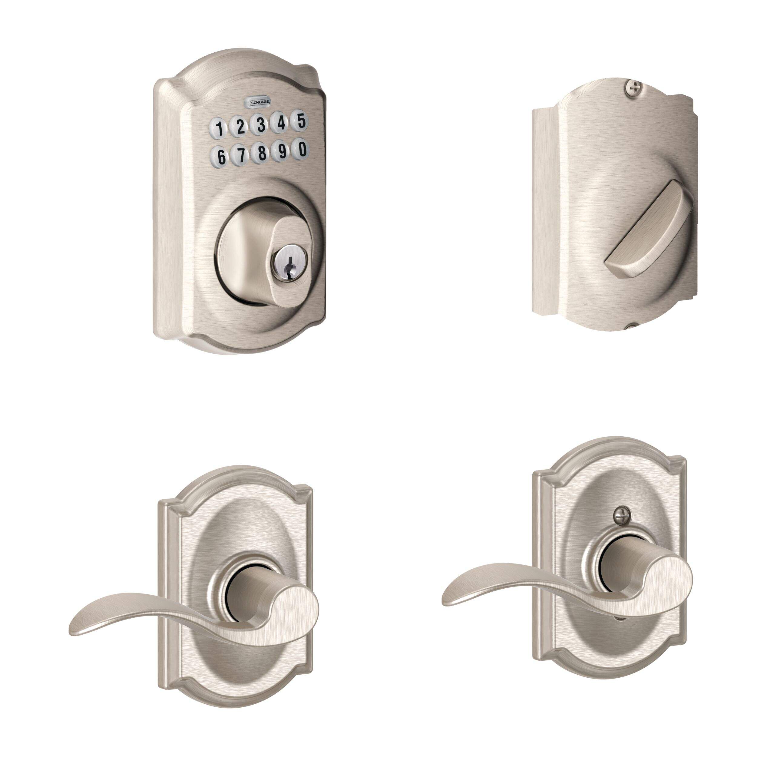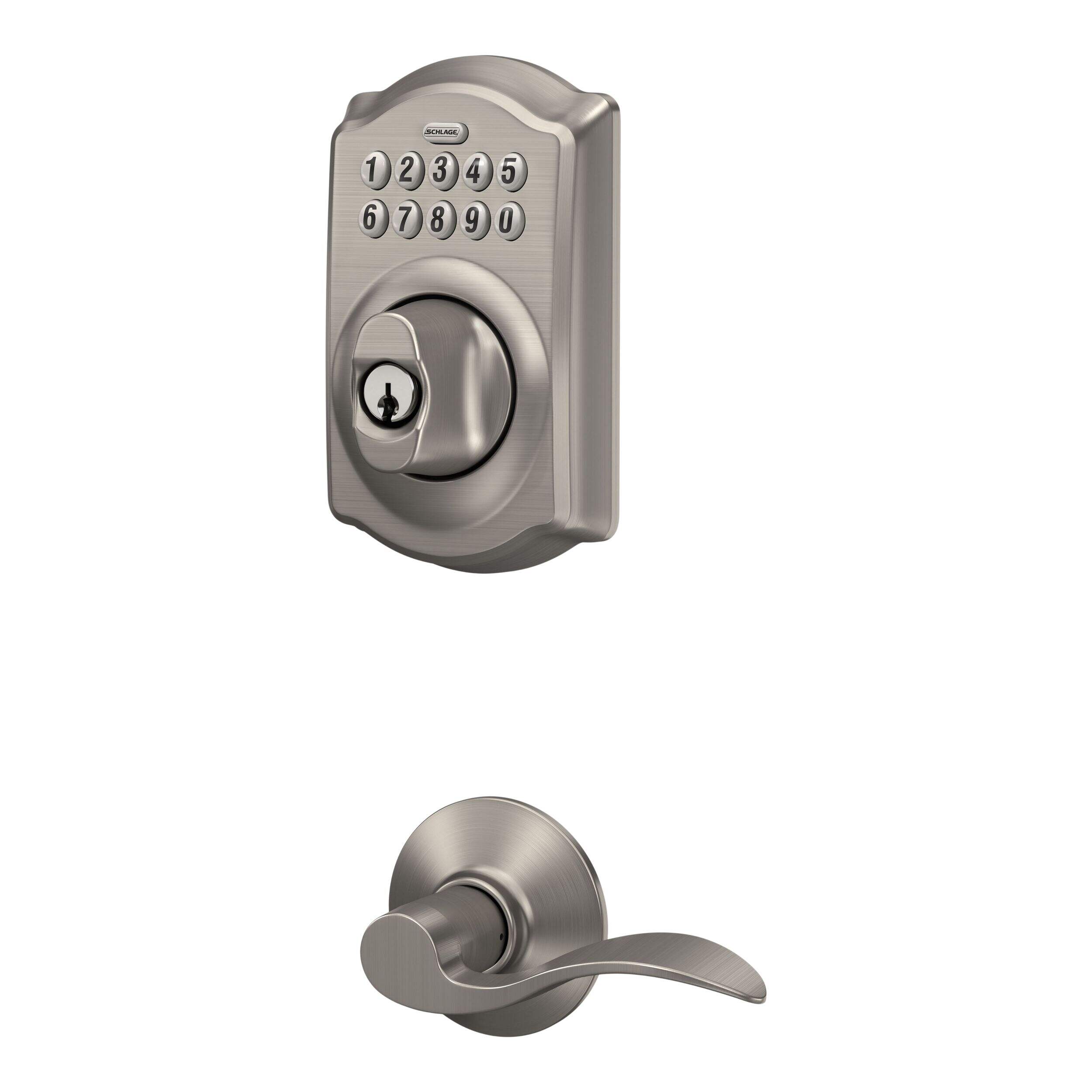 La serrure à pêne dormant et levier à clavier électronique Schlage Camelot/Accent est le choix idéal pour les propriétaires qui ne veulent pas faire de compromis sur le style. Avec ses élégantes garnitures Camelot et son fini en nickel satiné, ce pêne dormant électronique offre une allure moderne tout en assurant une entrée sans clé sécuritaire. Conçue pour une installation facile et une performance fiable, elle offre aux utilisateurs la tranquillité d'esprit sans le tracas des clés traditionnelles.