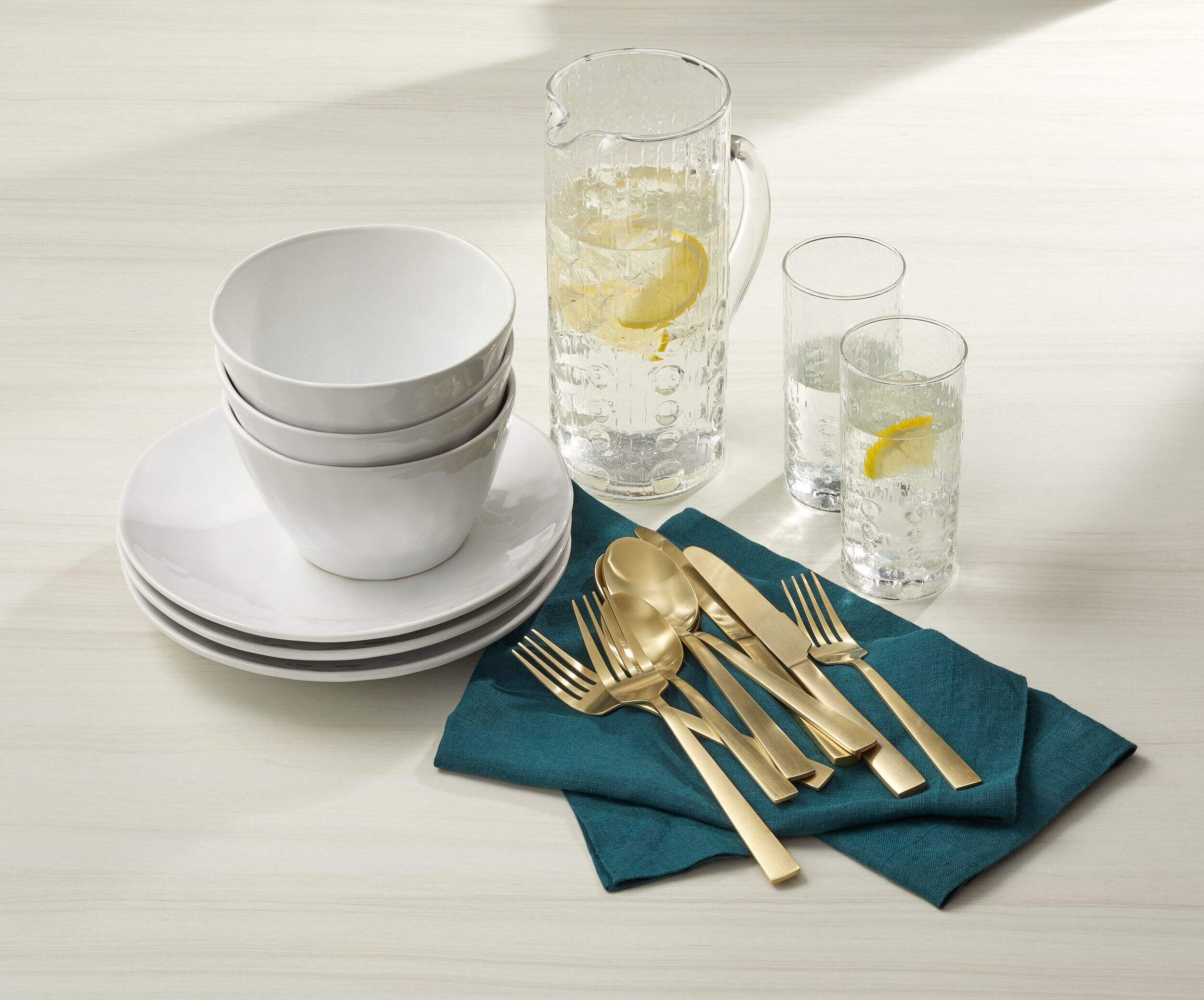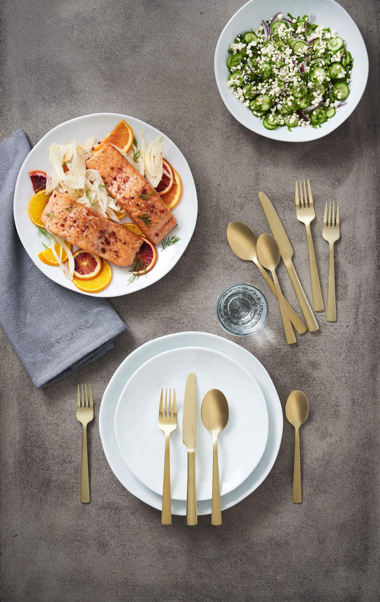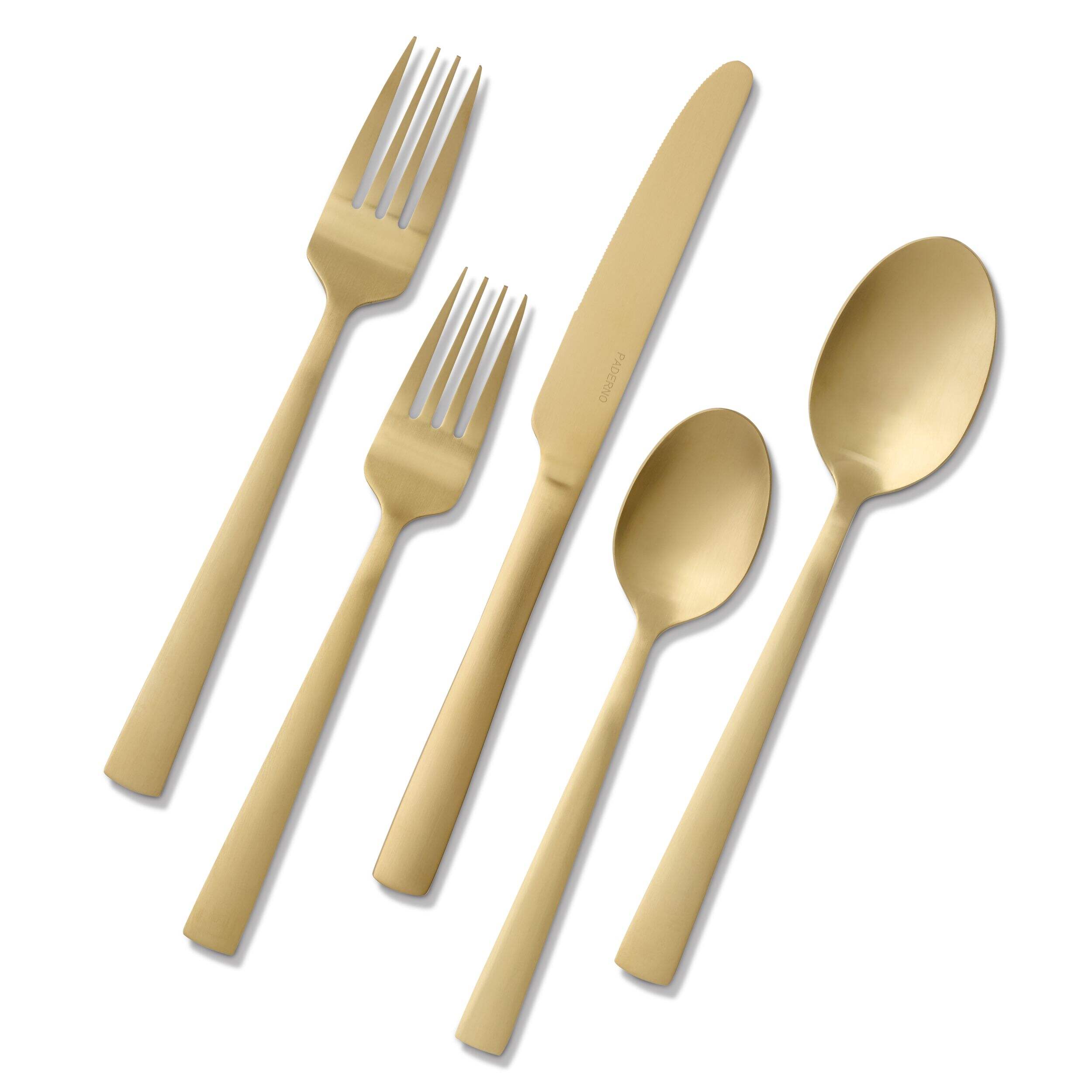 Ajoutez une touche de raffinement à votre salle à manger avec l'ensemble de couverts au fini mat champagne PADERNO. Doté d'un splendide fini mat champagne, cet ensemble de 20 pièces dégage une élégance intemporelle qui rehausse n'importe quel décor de table. Fabriqué avec expertise en acier inoxydable durable, il est conçu pour résister à une utilisation quotidienne tout en conservant son apparence magnifique. Que ce soit pour les repas décontractés ou les occasions spéciales, cet ensemble de couverts offre un mélange de style et de fonctionnalité à chérir toute une vie.