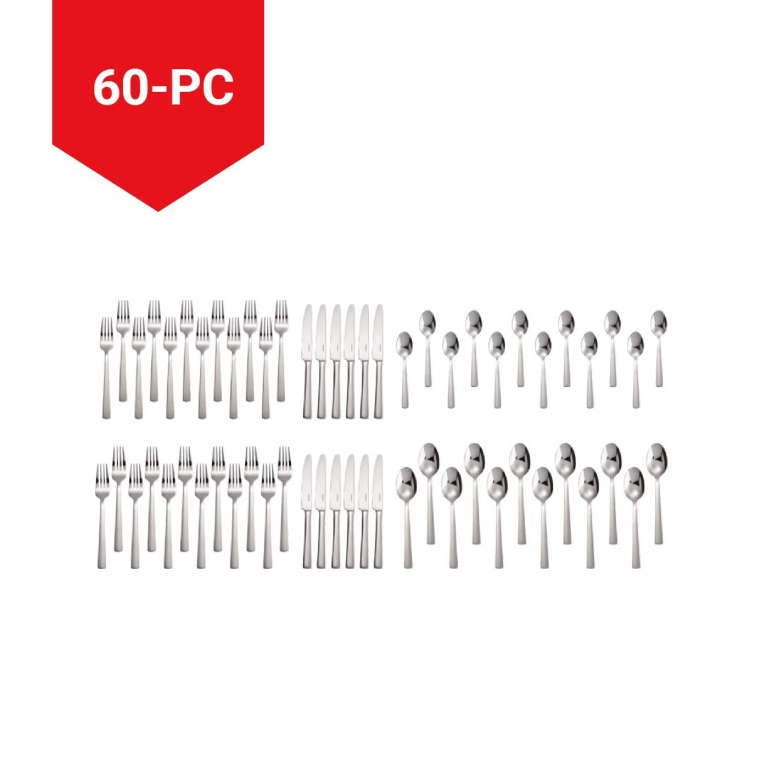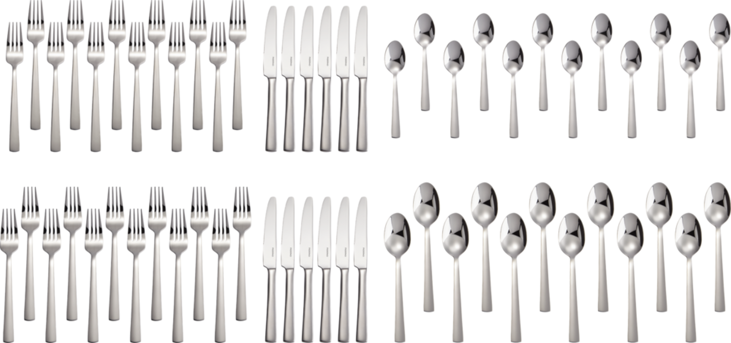 Ensemble comprenant (12) couteaux de table, (12) fourchettes à salade, (12) fourchettes, (12) cuillères de table et (12) cuillères à thé