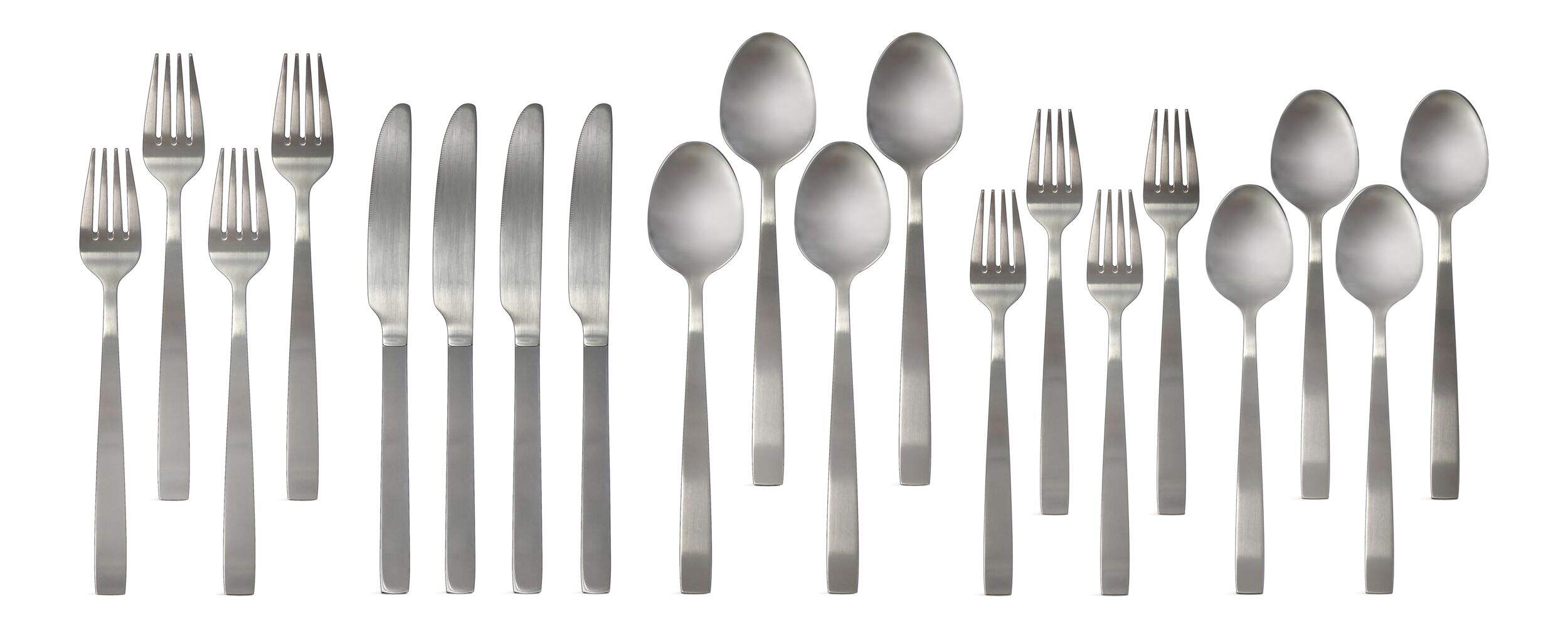 Comprend : 4 fourchettes à salade, 4 fourchettes de table, 4 couteaux de table, 4 cuillères de table et 4 cuillères à thé