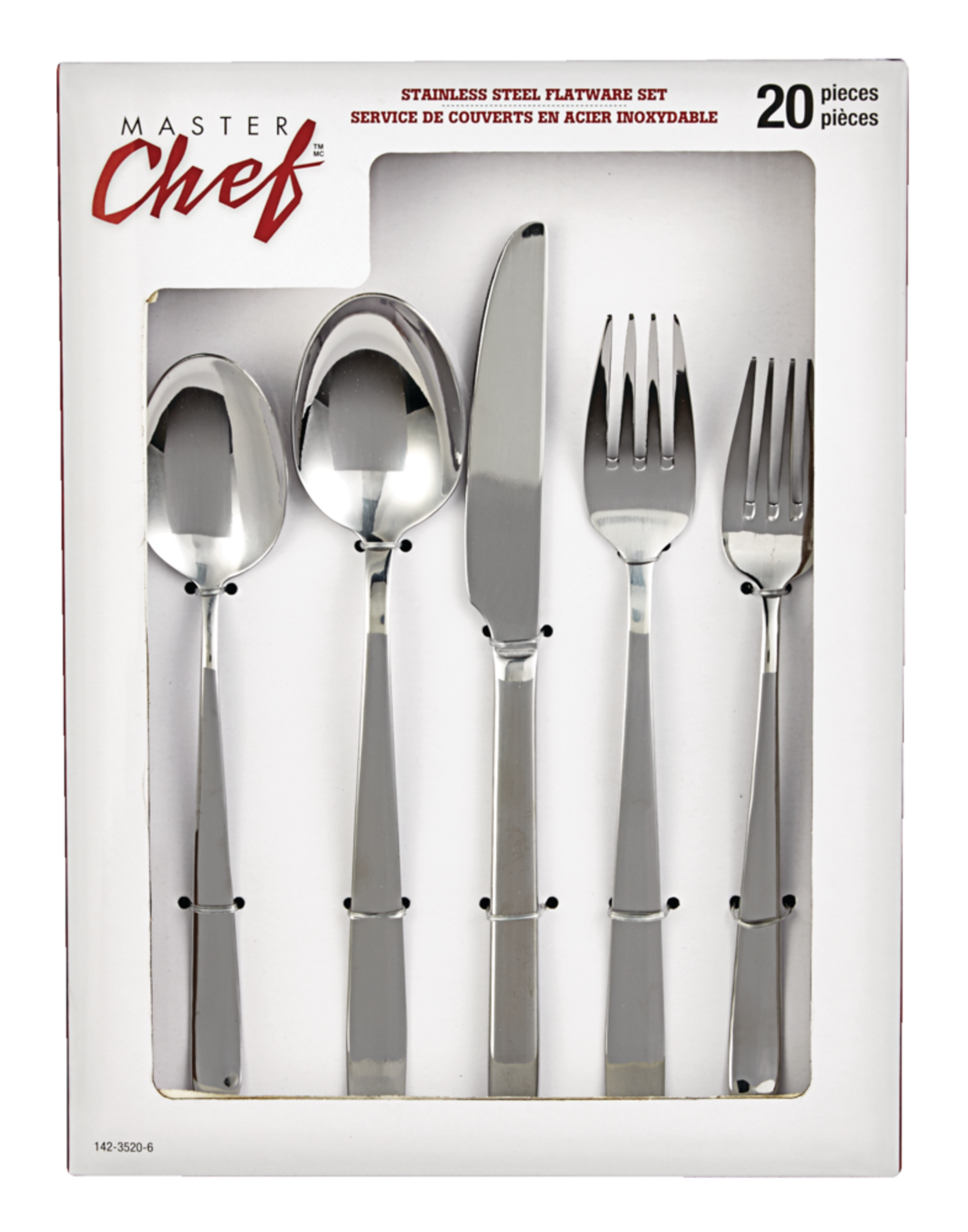Le service de couverts en acier inoxydable MASTER Chef en paquet de 20 est conçu pour rehausser votre expérience culinaire. Fabriqué en acier inoxydable 18/0, ce service présente un style contemporain avec des lignes épurées et des bords carrés qui ajoutent une touche moderne à n'importe quelle table. Le service offre tout ce dont vous avez besoin pour une table complète pour 4 personnes. Que ce soit pour les repas quotidiens ou les occasions spéciales, ce service de couverts ajoute style et fonctionnalité à votre table de salle à manger.