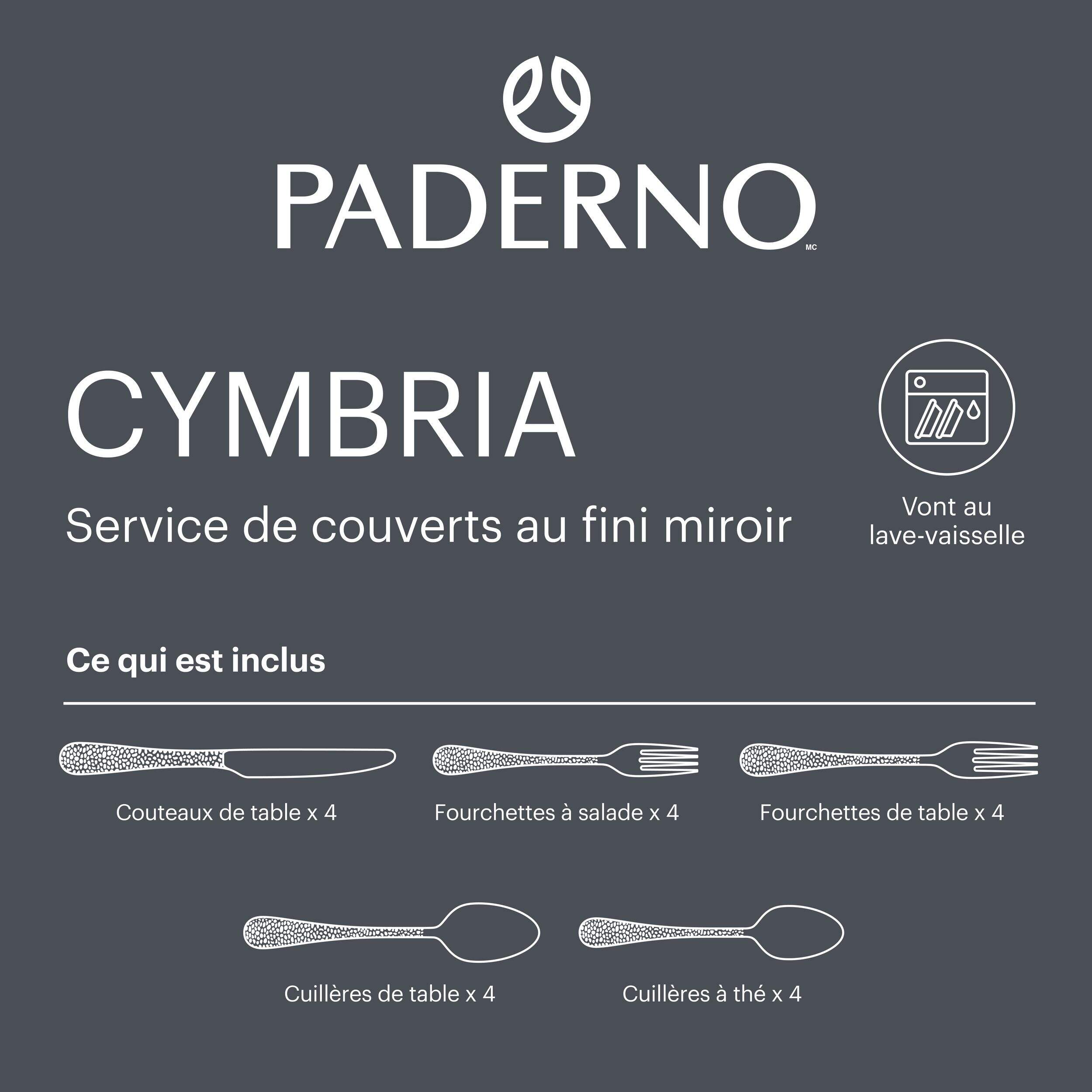 | Pièces comprises | Fourchette de table, Couteau de table, Cuillère de table, Fourchette à salade, Cuillère à thé |