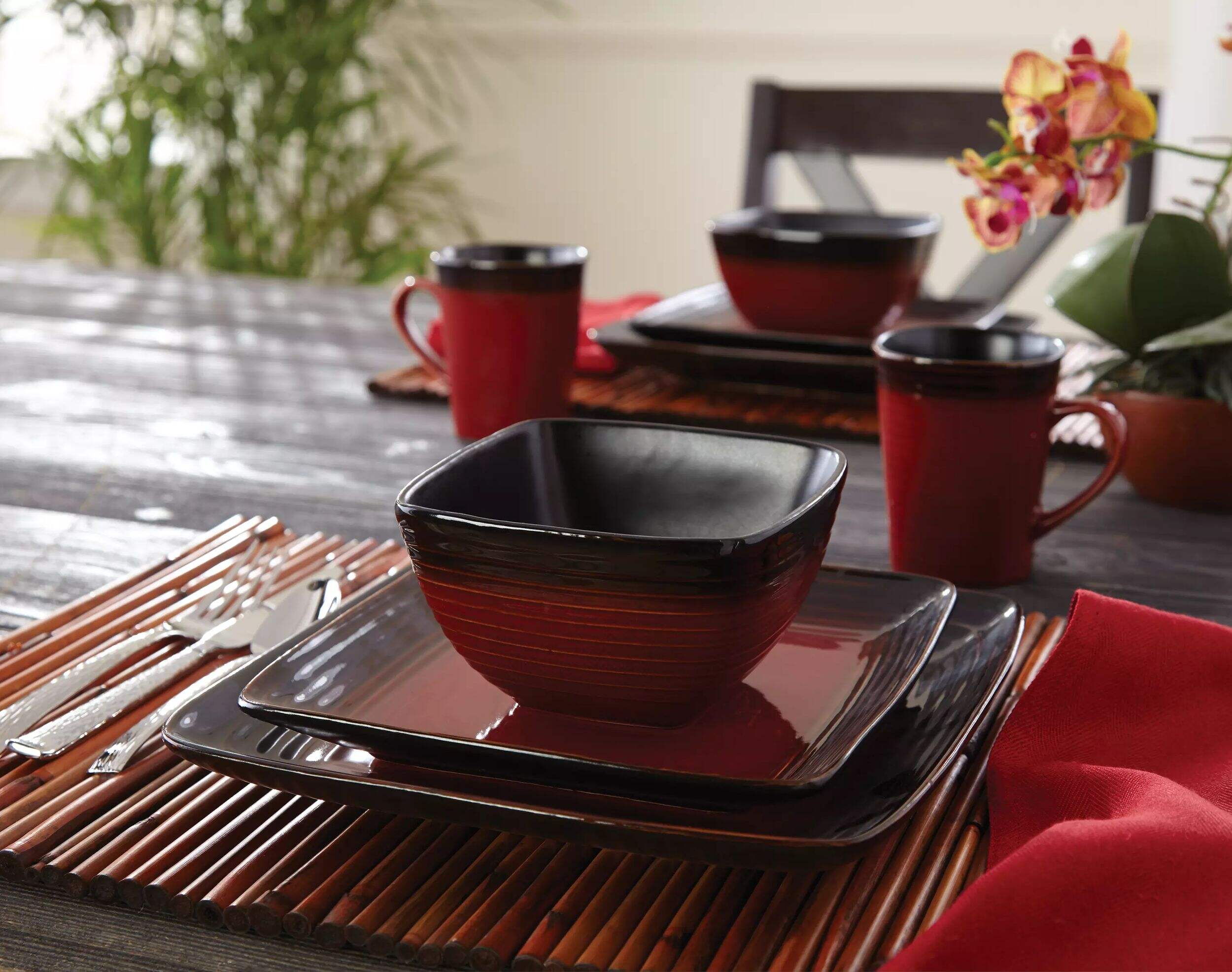 Le service de vaisselle en céramique CANVAS Taza offre un style moderne et pratique. Comprenant 4 assiettes plates, assiettes à hors d'oeuvres, bols et tasses, ce service de vaisselle offre tout ce dont vous avez besoin pour les repas en famille ou les rassemblements intimes. Sa forme carrée audacieuse et son dégradé rouge foncé ajoutent une touche spectaculaire et élégante à votre expérience gastronomique. Ce service de vaisselle durable est idéal pour les repas de tous les jours et les occasions spéciales.