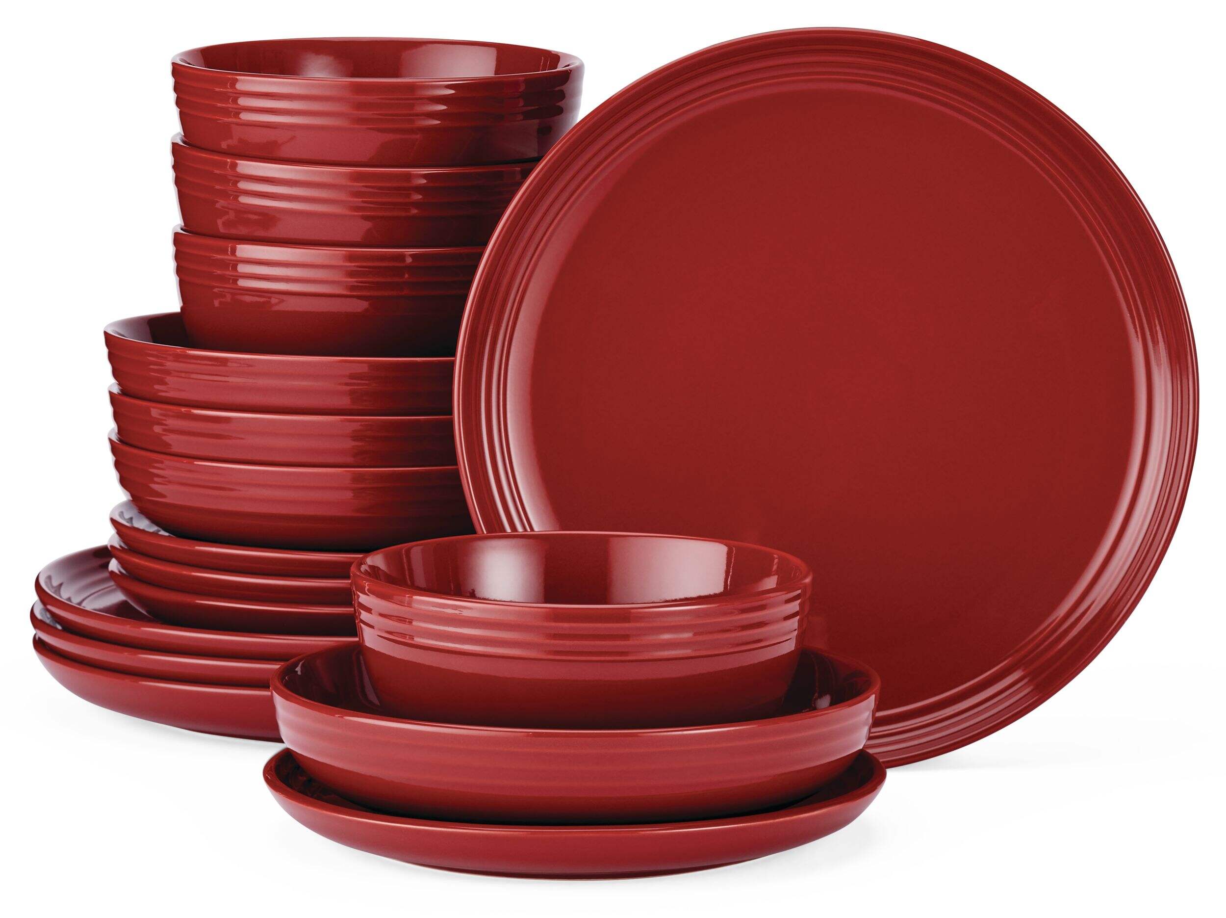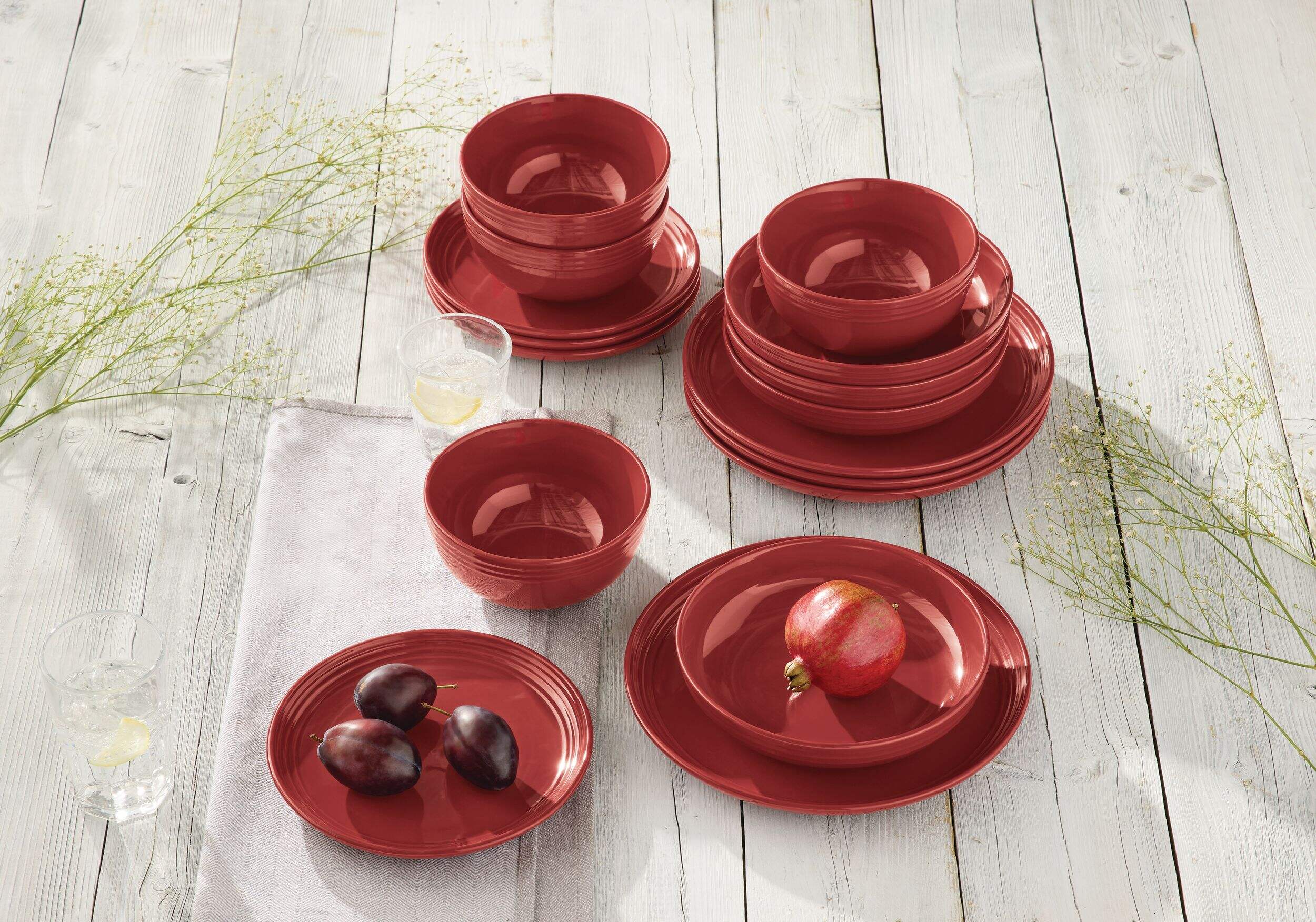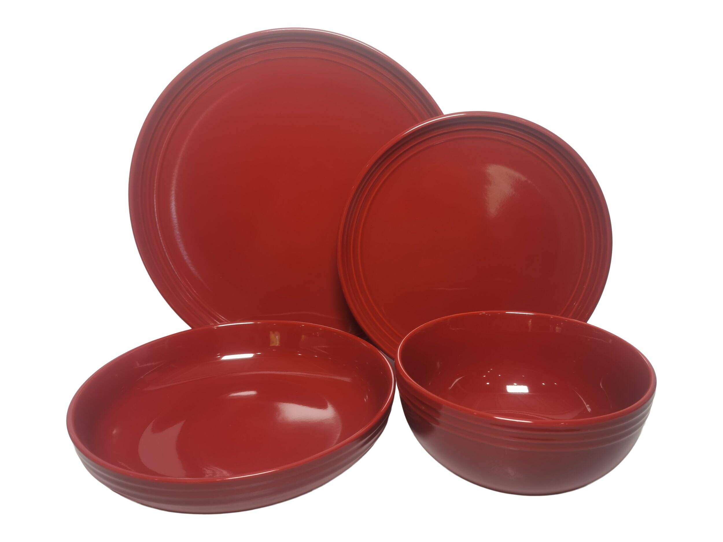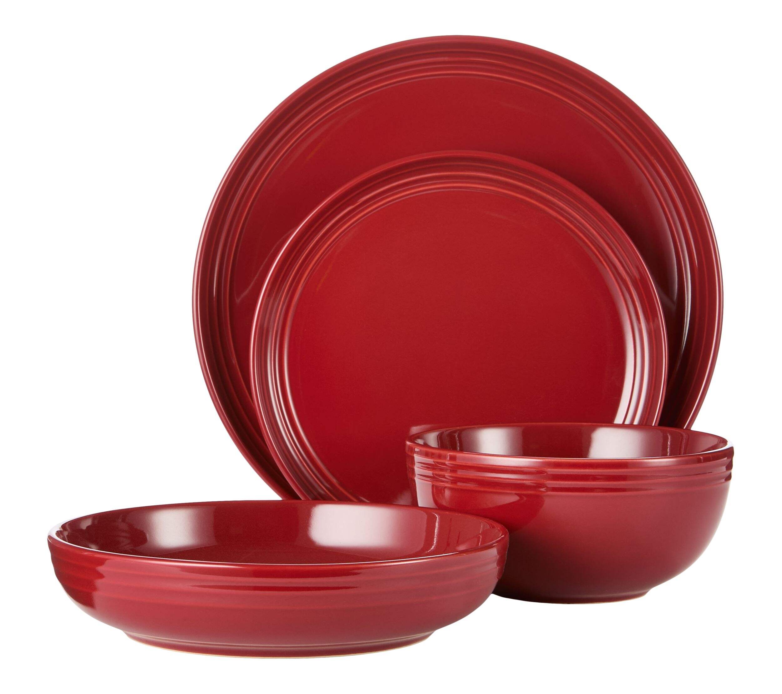 Comprend (4) assiettes à dîner de 26,7 cm (10-1/2 po), (4) assiettes à salade de 20,6 cm (8 po), (4) bols tout usage de 15,3 cm (6 po) et (4) bols peu profonds de 20,3 cm (8 po) pour un total de 16 pièces