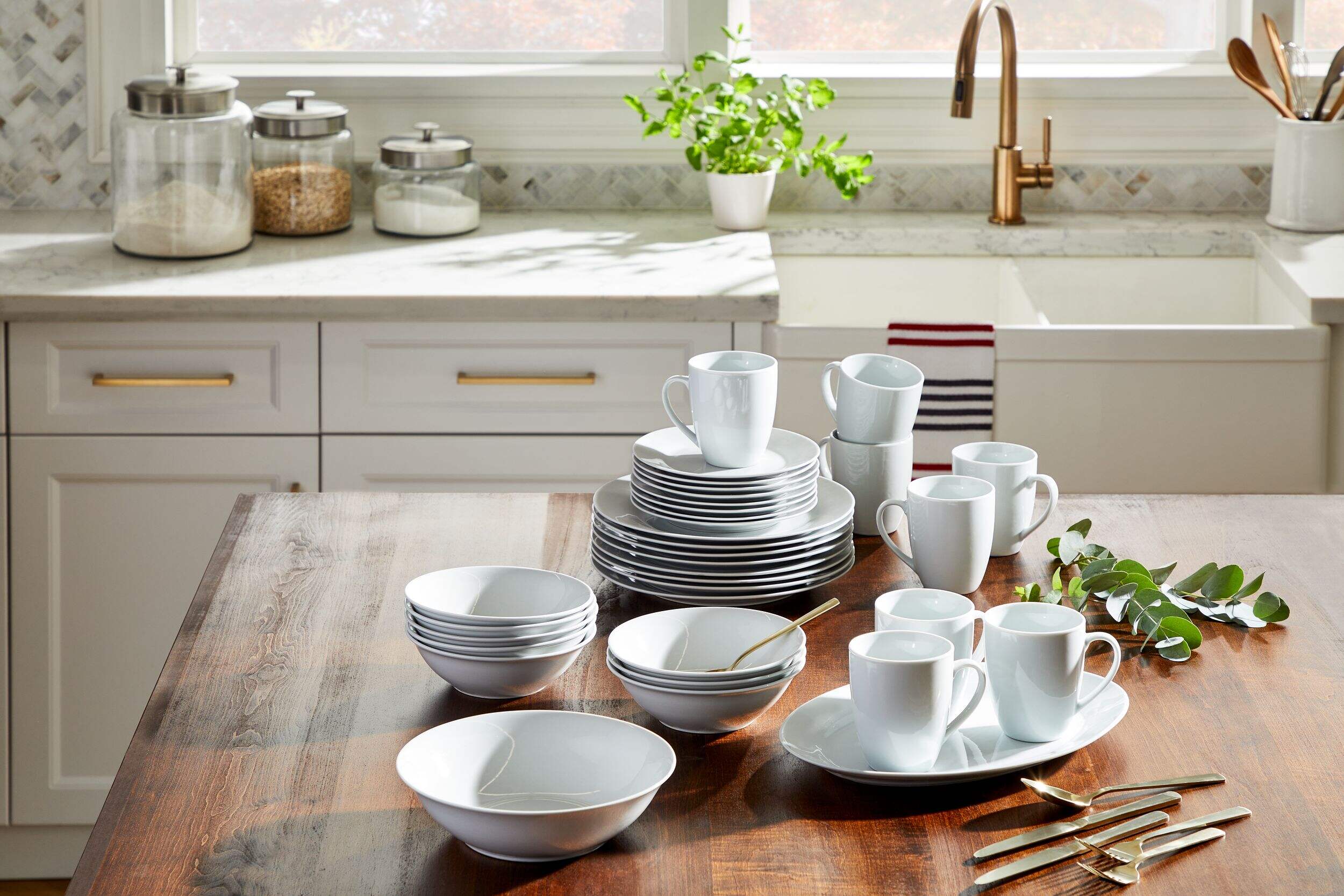 Le service de vaisselle CANVAS Lauren en porcelaine de 34 pièces offre un style élégant, moderne et durable, ce qui le rend idéal pour une utilisation quotidienne ou pour les réceptions officielles. Avec 8 assiettes plates, assiettes à hors d'oeuvres, bols et tasses, ainsi qu'un bol de service et un plat ovale, ce service de vaisselle peut accueillir un repas complet pour 8 personnes. Sa conception blanc neutre s'harmonise à n'importe quel décor ou peut être jumelée à des éléments colorés pour une touche personnalisée.