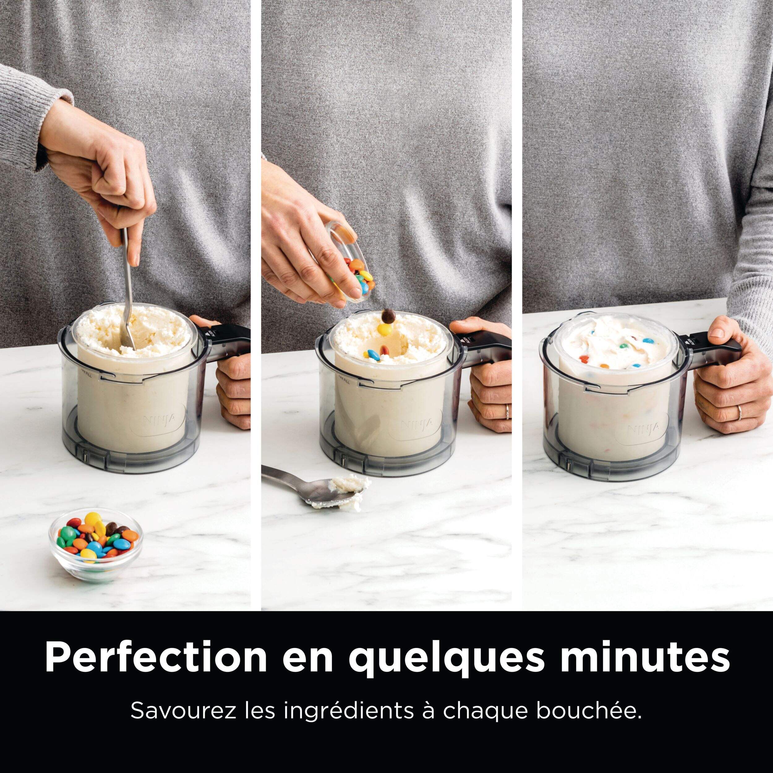 • Ajoutez vos chocolats, noix, bonbons, fruits préférés et plus encore pour personnaliser n'importe quelle gâterie CREAMiMC