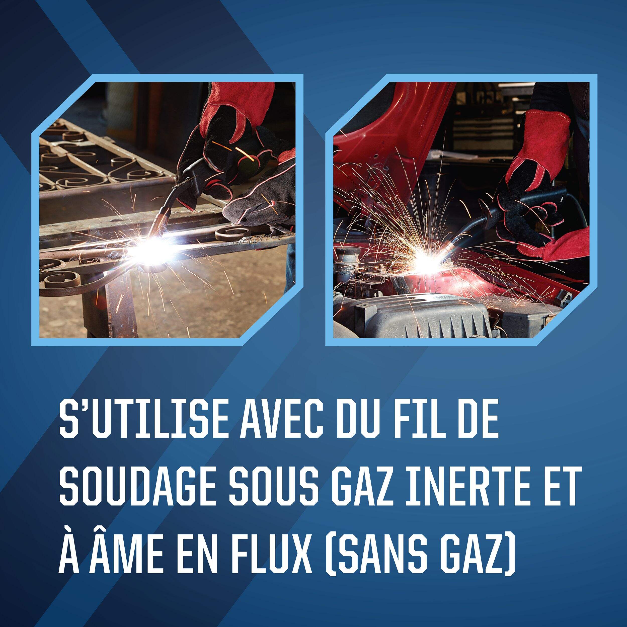 Fonctionne avec les fils fourrés de 0,030 po et de 0,035 po, et les fils MIG de 0,023 po, de 0,030 po et de 0,035 po