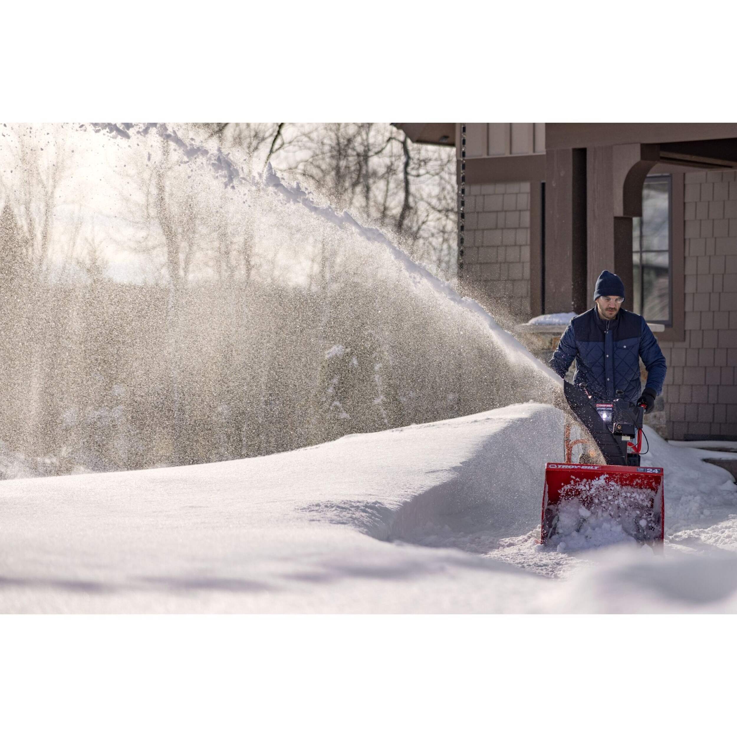 Lorsque l'hiver frappe fort, la souffleuse à neige Troy-Bilt Storm 2435 est prête à réagir. Équipée d'un moteur de 243 cm3 et d'une largeur de déblaiement de 24 po, cette machine à déneiger se fraye un chemin dans la poudreuse jusqu'à 12 po d'épaisseur. Ses tarières dentelées en acier coupent les bancs de neige avec une force constante. Malgré sa puissance, la Storm 2435 se contrôle grâce à la direction assistée Touch N' Turn. Les poignées chauffantes offrent un confort agréable, tandis que le phare intégré au tableau de bord assure une visibilité suffisante, ce qui est idéal pour les déneigements avant l'aube. Cette souffleuse à neige maîtrise les hivers rigoureux grâce à ses performances, son confort et son contrôle.