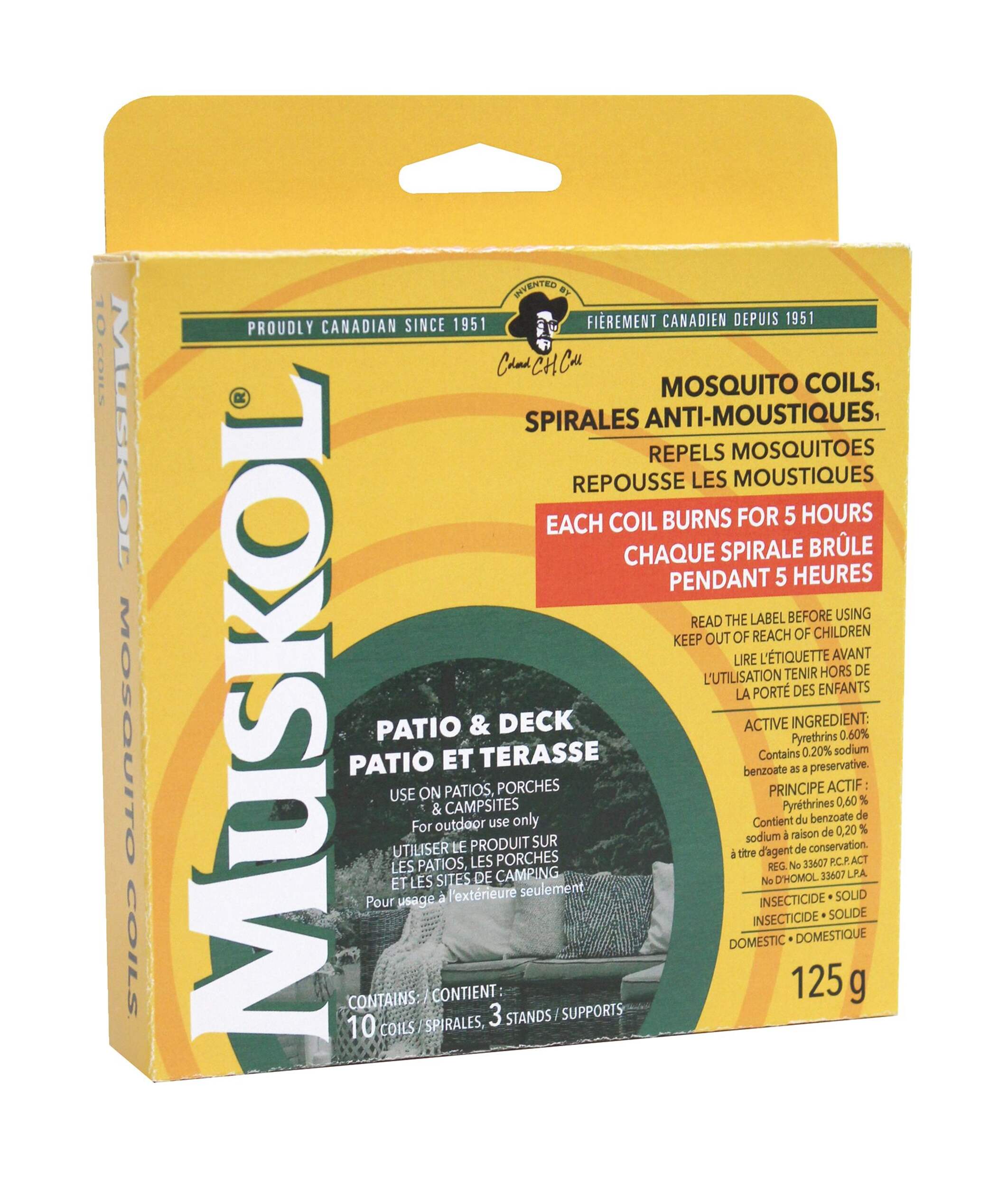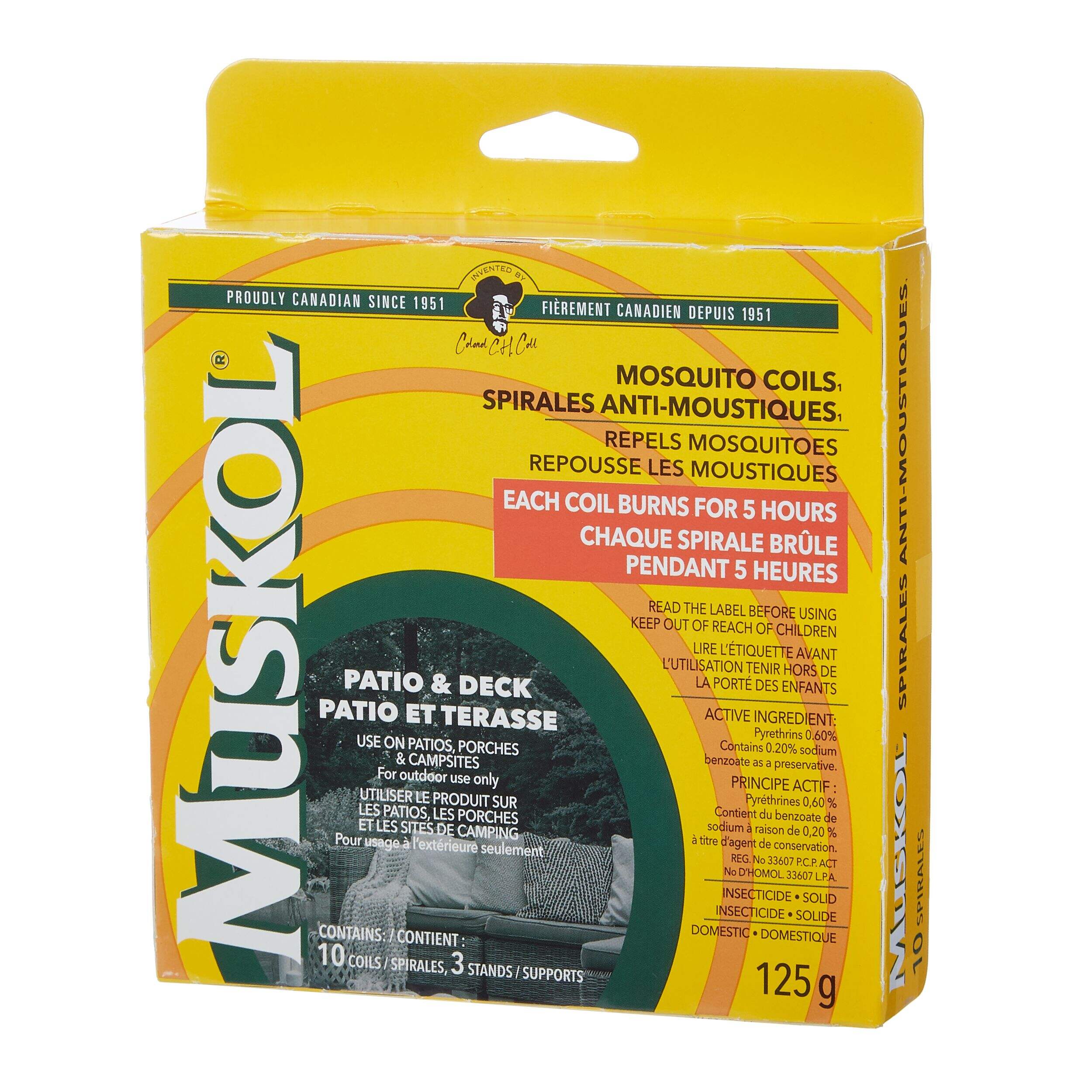 Profitez des rassemblements en plein air grâce aux spirales chasse-moustiques/insectes 50 heures Muskol, qui assurent une protection efficace contre les moustiques à l'extérieur. Conçues pour être utilisées sur les terrasses, les porches et les sites de camping, ces spirales chasse-insectes émettent un produit chimique antimoustiques qui contribue à créer un espace confortable pour vous et vos invités. Dignement fabriquées au Canada, elles constituent le choix idéal pour une lutte efficace contre les moustiques dans les zones extérieures.