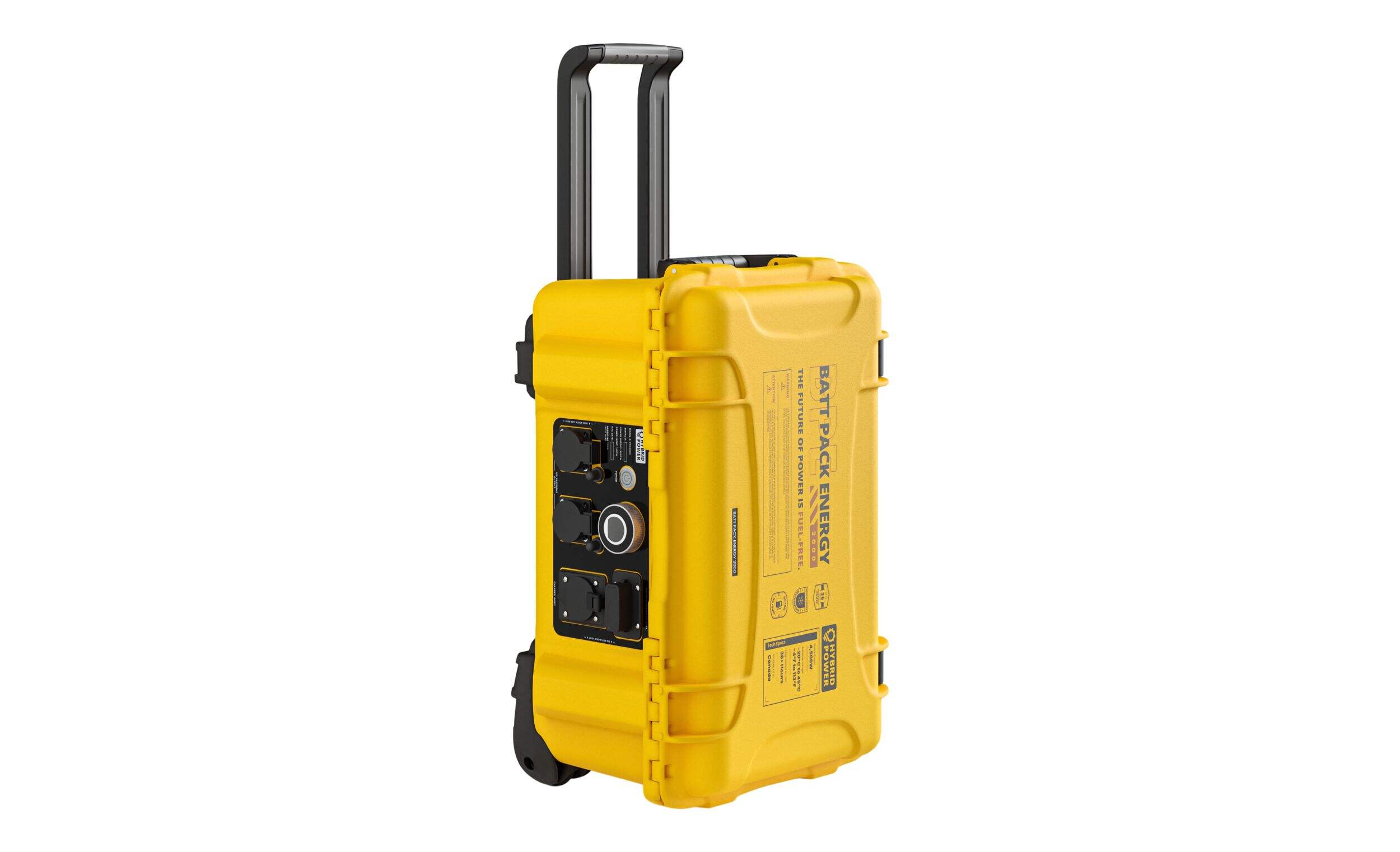 Station d'alimentation portative étanche Hybrid Power Solutions constituant un système de batterie au lithium-ion léger et portatif conçu pour remplacer les génératrices de qualité commerciale et industrielle