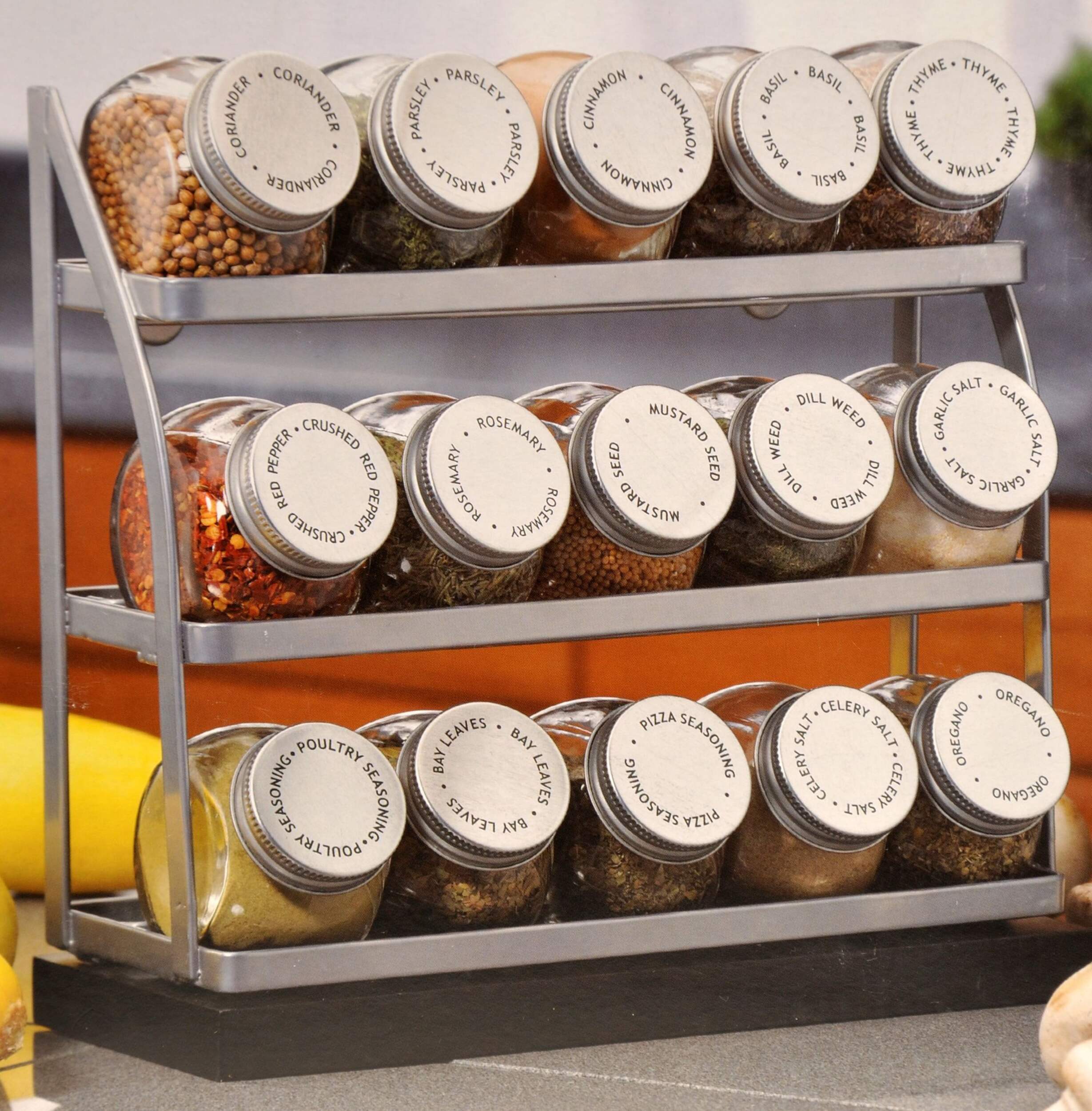 Support à épices au fini métallisé peint par poudrage contenant 15 pots vides
