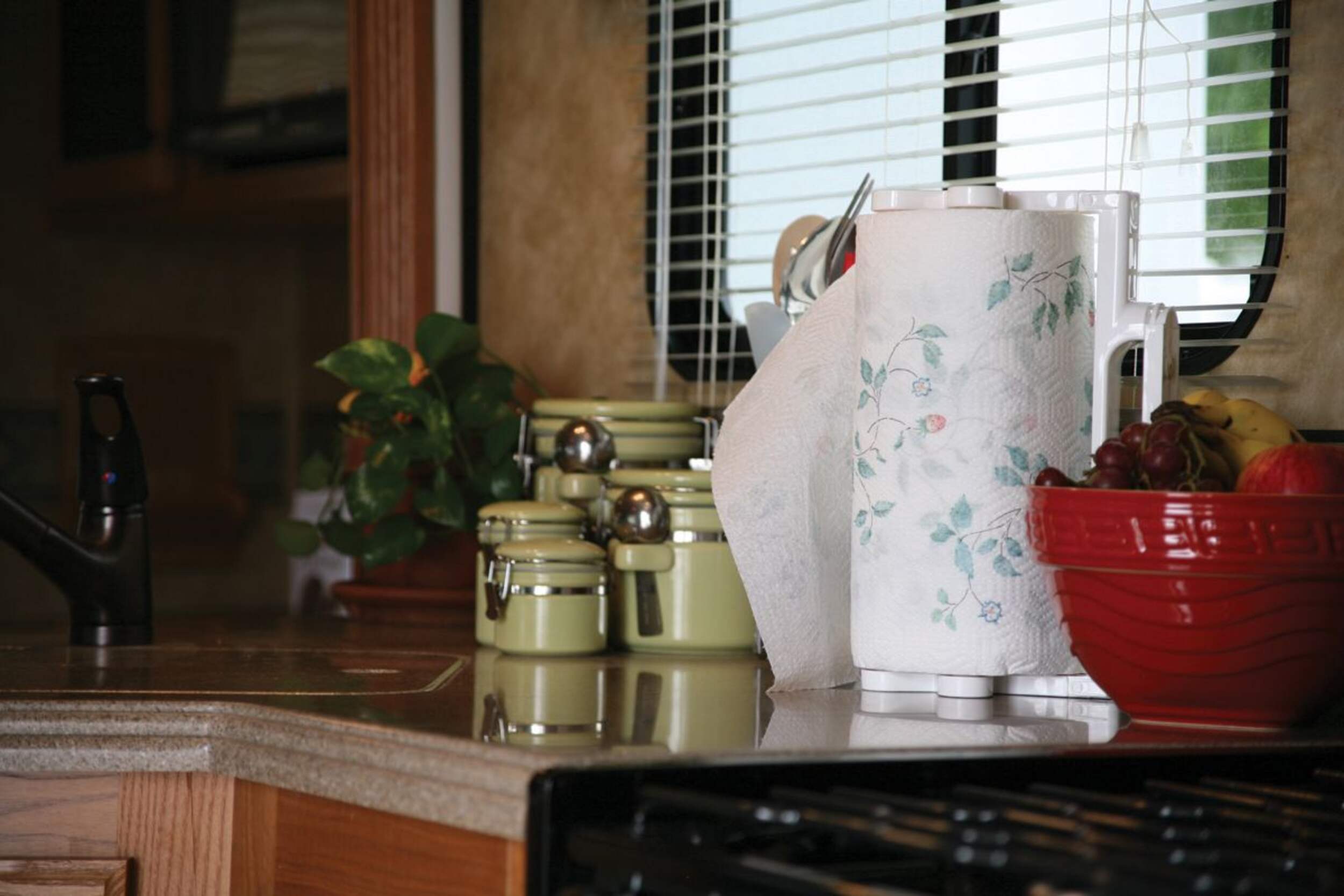 Support à essuie-tout blanc de VR Camco Pop-A-Towel conçu pour garder le rouleau d'essuie-tout propre et bien situé. Support pouvant être fixé de façon permanente sur une porte d'armoire, un mur ou sous une armoire. Se glisse hors du support de montage pour se tenir seul ou pour être emporté au besoin.