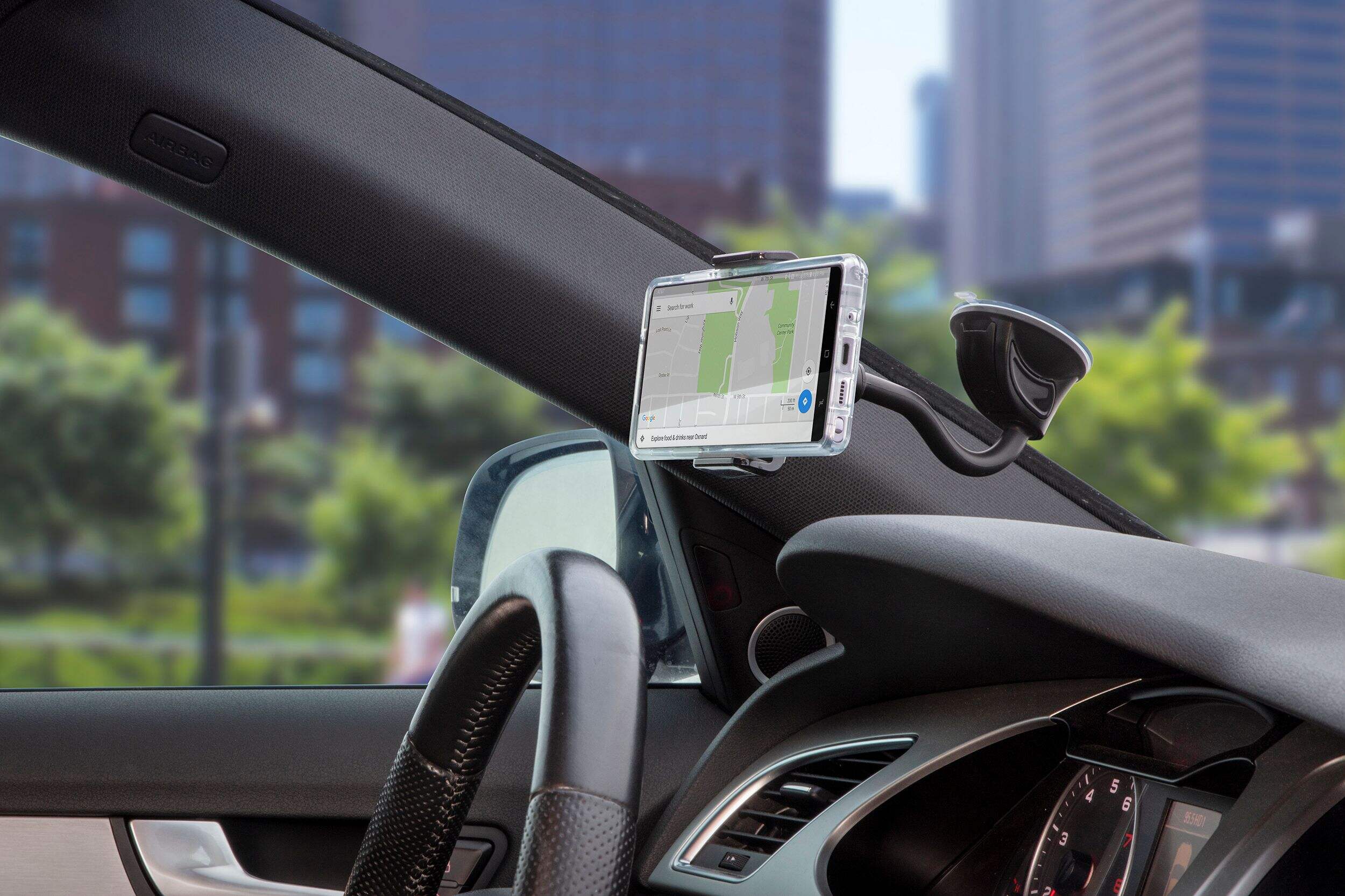 Base à ventouse robuste qui permet de déplacer facilement le support d'une voiture à l'autre, de la voiture à la maison ou de la voiture au bureau. Se fixe simplement à n'importe quelle surface ferme, plate, solide ou texturée