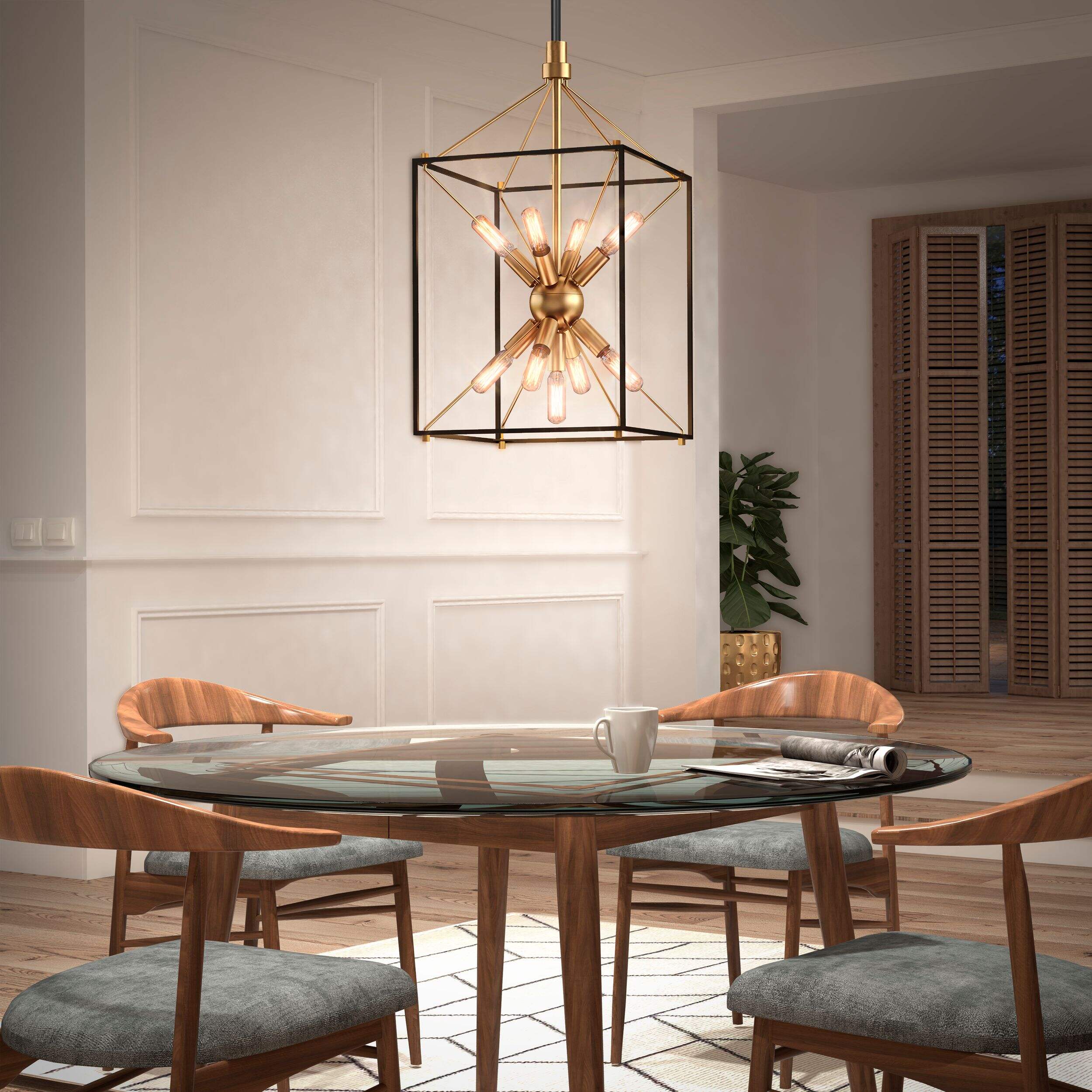 La suspension à 9 lampes Artika Clyde présente une esthétique industrielle minimaliste, avec un ravissant mélange d'éléments en fini laiton et en noir mat. Sa conception est adaptée aux plafonds inclinés, ce qui en fait un ajout polyvalent à n'importe quel décor. Ce luminaire à 9 lampes Artika ajoute en toute subtilité une touche de charme moderne aux espaces traditionnels, créant une solution d'éclairage sophistiquée qui se marie à merveille à une variété de styles intérieurs.