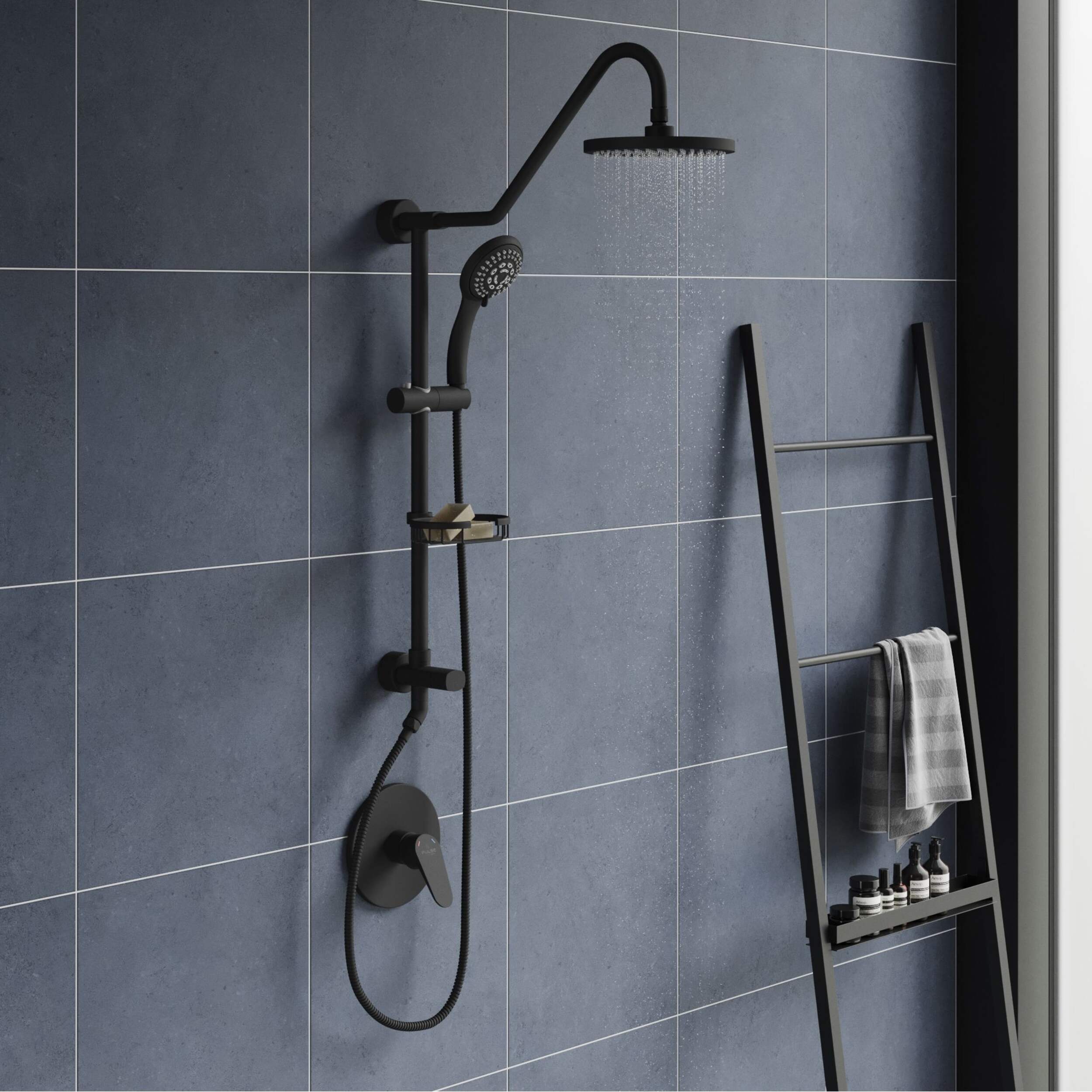 Douchette à 5 fonctions avec barre coulissante murale réglable qui crée une expérience utilisateur personnalisable