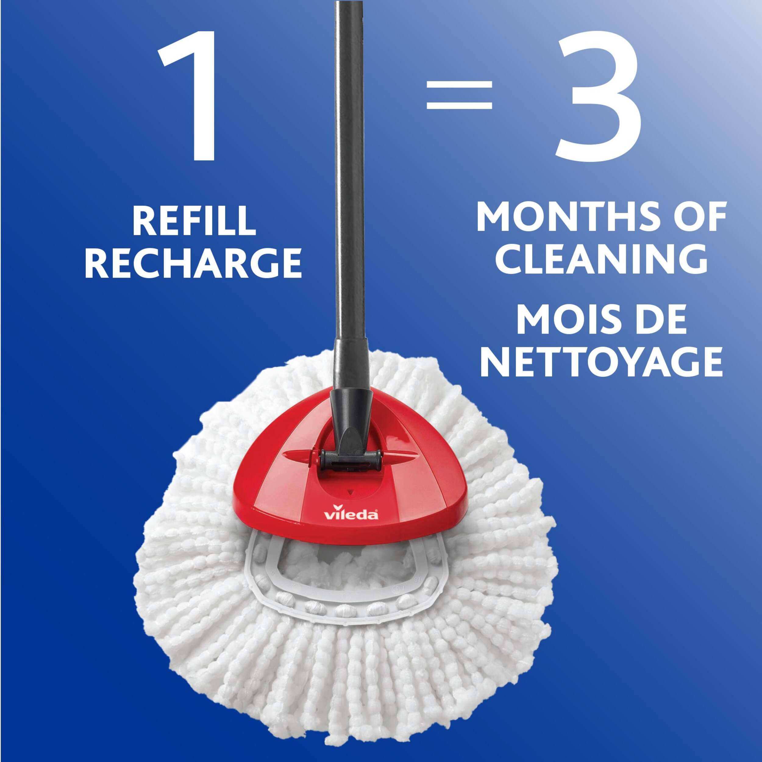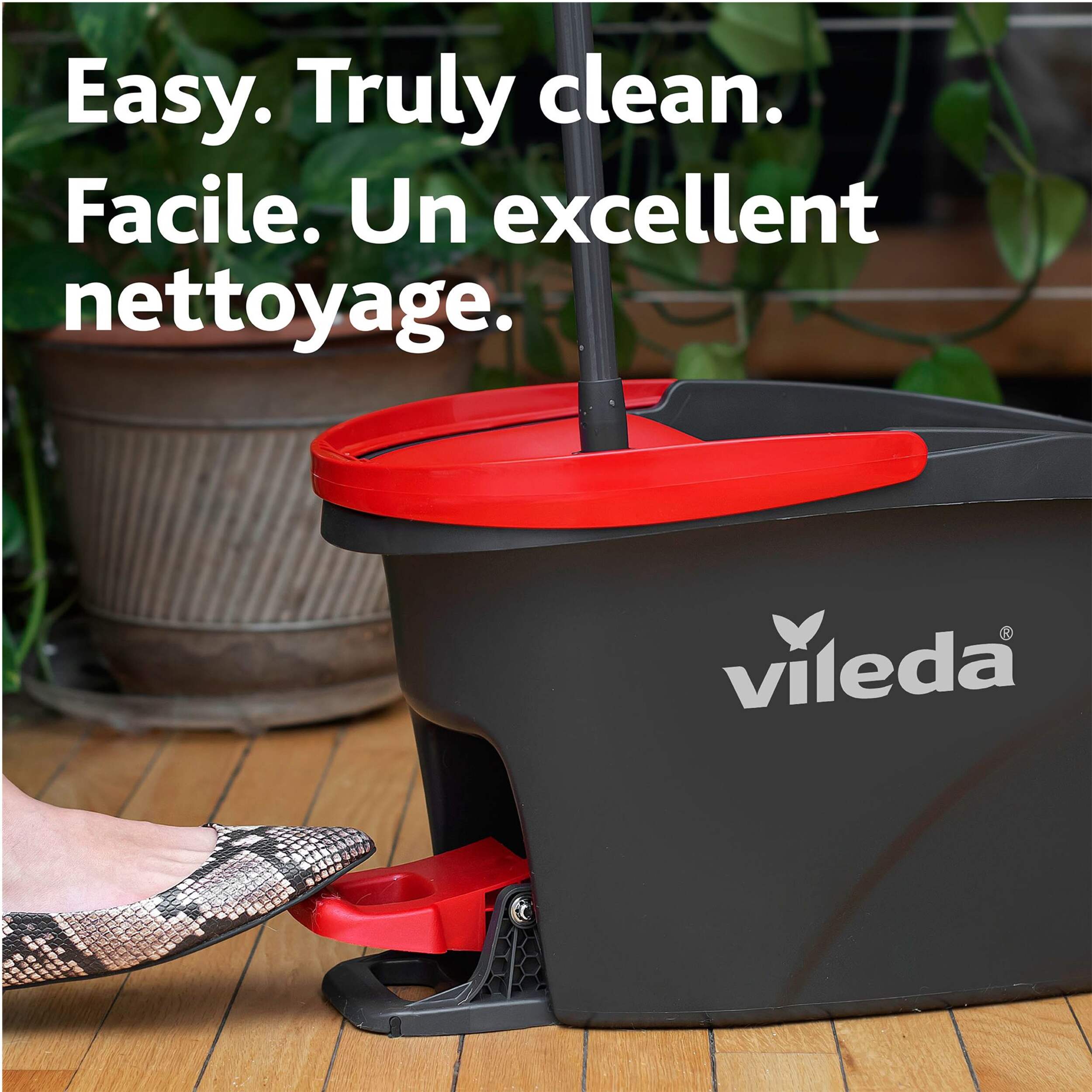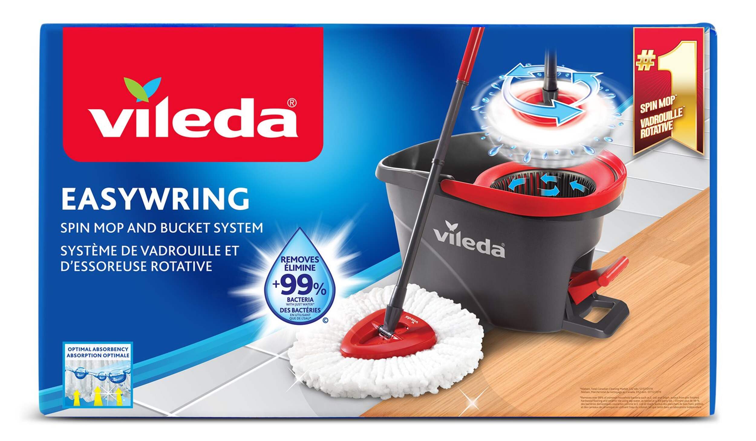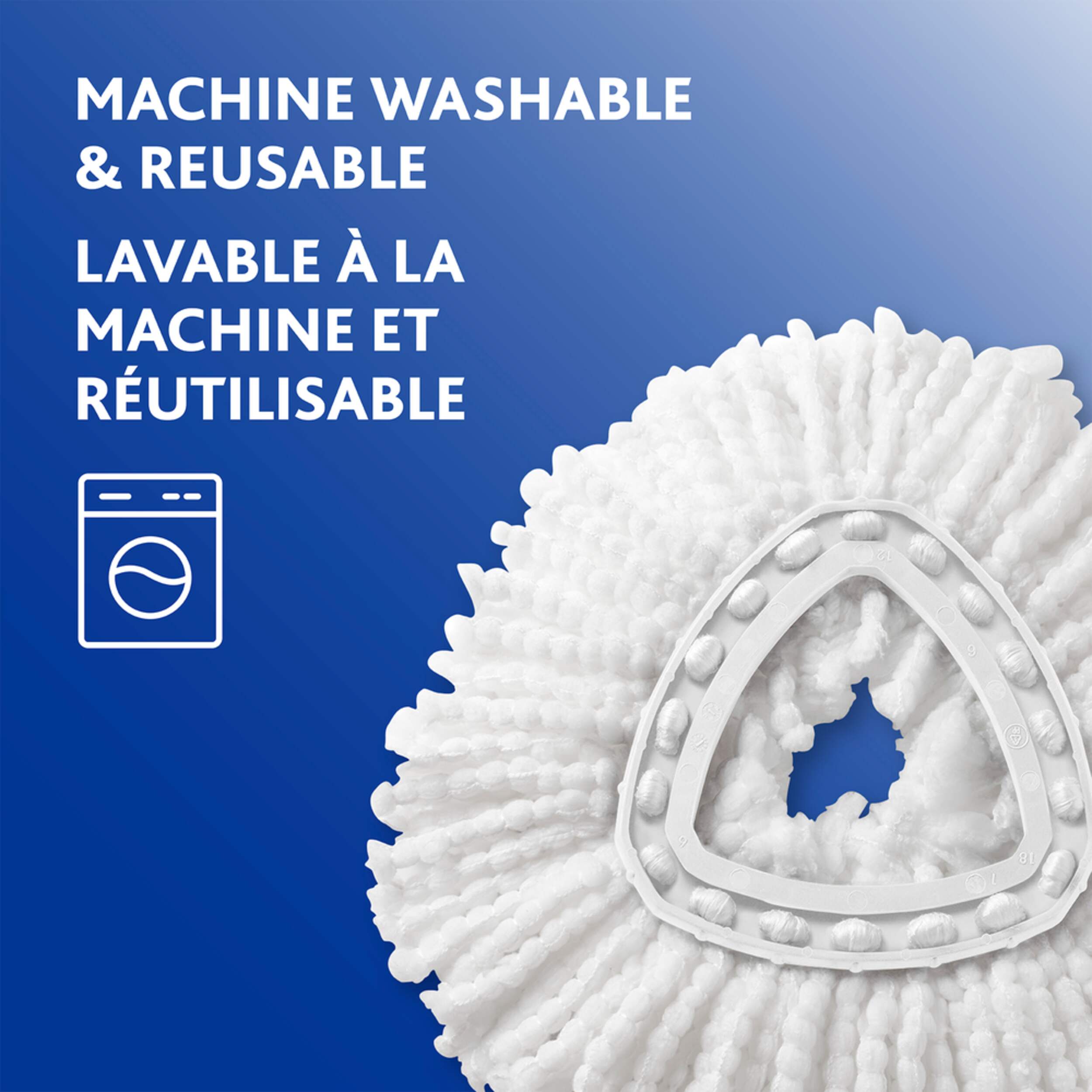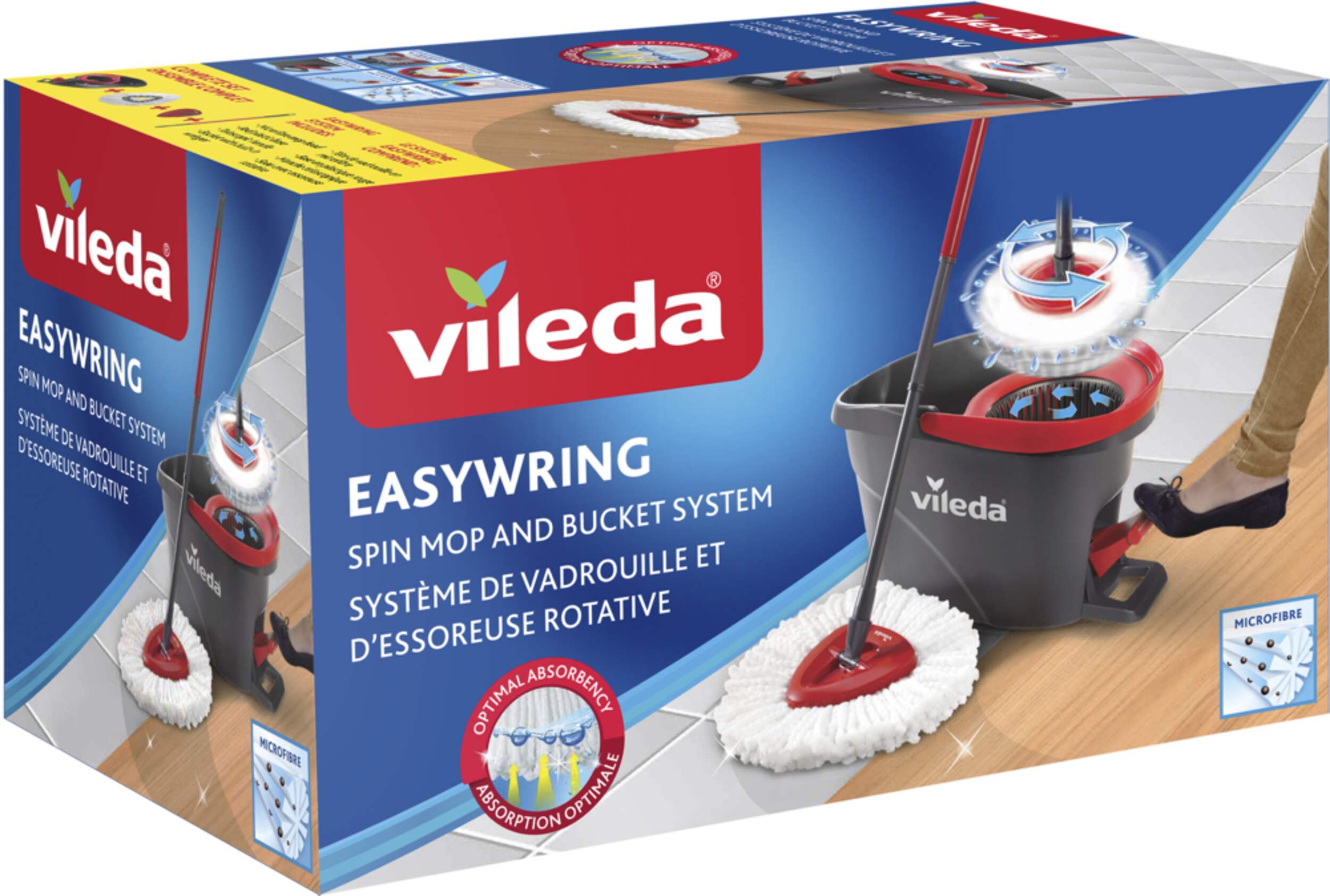 Nettoyez sans tracas avec la vadrouille rotative Vileda EasyWring. Conçue avec une essoreuse et une pédale intégrées, cette vadrouille élimine le besoin de se pencher et d'essorer à la main. Microfibre puissante de Vileda qui élimine plus de 99 % des bactéries en utilisant seulement de l'eau, offrant une expérience de nettoyage complète pour votre maison. Tête de vadrouille unique qui permet un accès facile aux endroits difficiles d'accès et aux coins étroits, ce qui facilite le nettoyage.