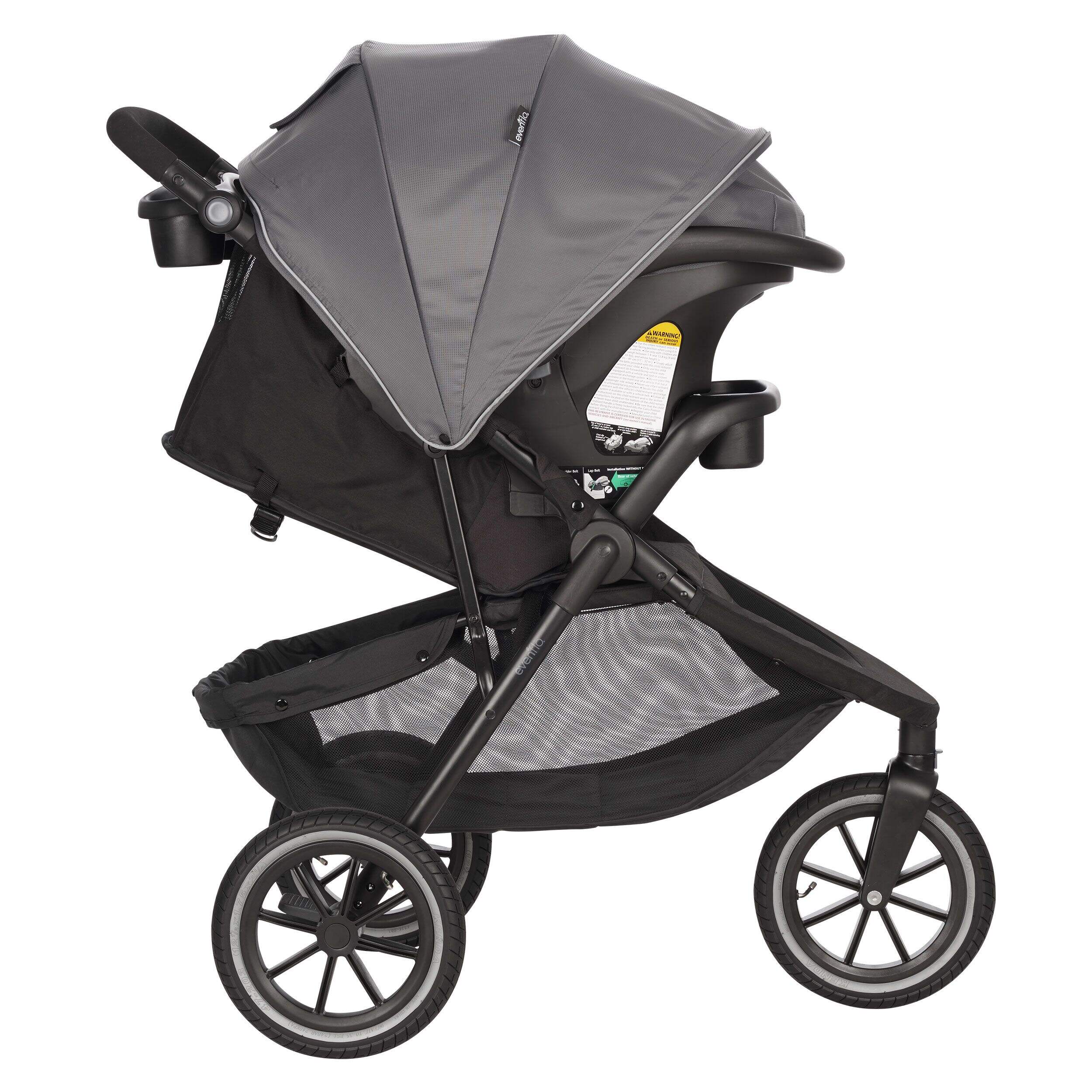 La poussette polyvalente ultime : le système de voyage pour poussette et jogging EvenfloMD Folio3MC est le meilleur des deux mondes. Tout équipée et légère pour les promenades de tous les jours; avec l'avantage supplémentaire de gros pneus gonflés à l'air et une roue avant verrouillable pour le jogging tout-terrain. Le siège se replie de façon unique et plus compacte que la plupart des poussettes pleine grandeur, et il se tient debout pour que vous n'ayez jamais à vous pencher pour le mettre dans votre véhicule. Un panier de rangement surdimensionné, des consoles pour parents et enfants et un auvent pleine grandeur avec fenêtre coucou pratiques pour magasiner et visiter le parc, tandis que les pneus pneumatiques, la roue avant pivotante verrouillable et la poignée réglable vous offrent la performance dont vous avez besoin pendant le jogging! Lorsque vous arrivez à destination, le siège d'auto pour bébé LiteMaxMC 35 se déplace de la base à la poussette en un seul clic. Testé pour le renversement et pour les impacts latéraux, ce siège pour bébé est un choix sécuritaire. Le système de verrouillage de ceinture intégré, la base à positions multiples et l'indicateur d'inclinaison vous permettent d'avoir l'esprit tranquille en sachant que la base est correctement et solidement installée. Léger et doté d'une poignée ergonomique, ce siège peut être transporté confortablement dans le creux des bras. Il comprend également les autres articles essentiels comme un auvent qui couvre complètement, un harnais réglable à l'avant et un coussin pour la tête en peluche.
