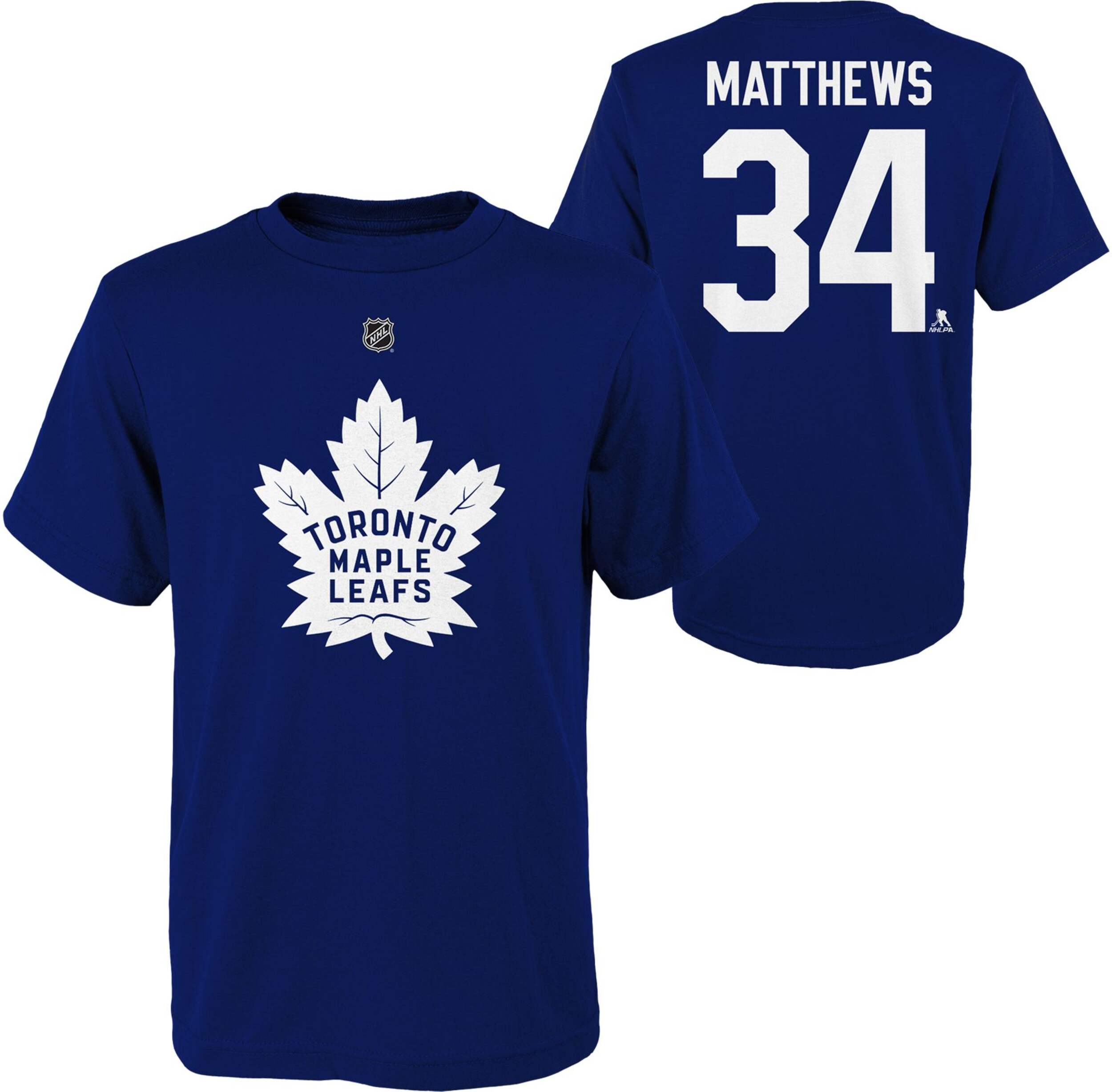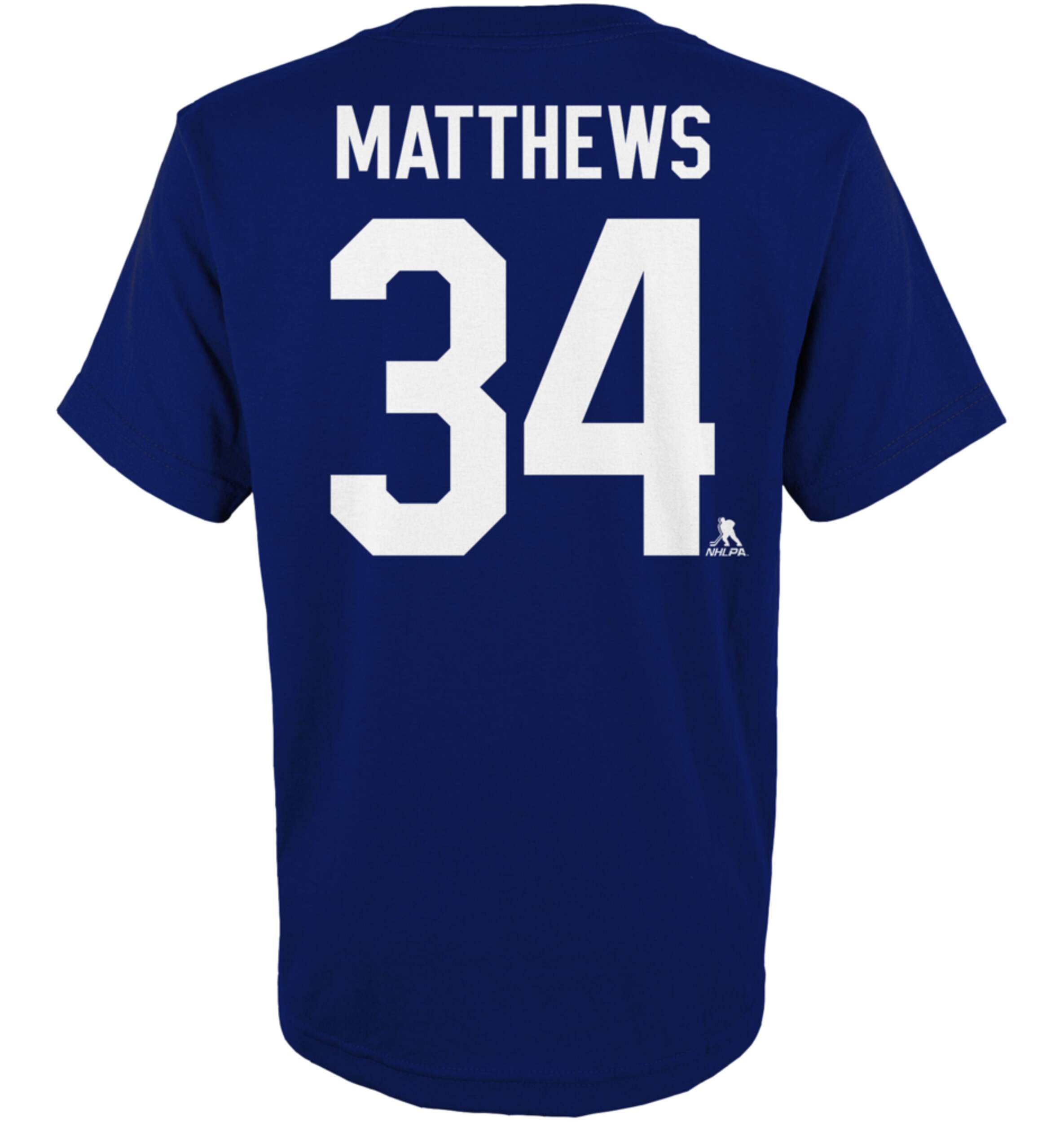 Le t-shirt nom/numéro Auston Matthews des Maple Leafs de Toronto de la LNH est spécialement conçu pour les jeunes fans de hockey. Il est orné du logo officiel de NHL Shield et du nom et du numéro imprimés à l'écran d'Auston Matthews. Ce t-shirt à coupe décontractée est offert dans un assortiment de tailles pour jeunes. Une façon idéale pour vos tout-petits de montrer leur soutien à leur joueur des Maple Leafs préféré.