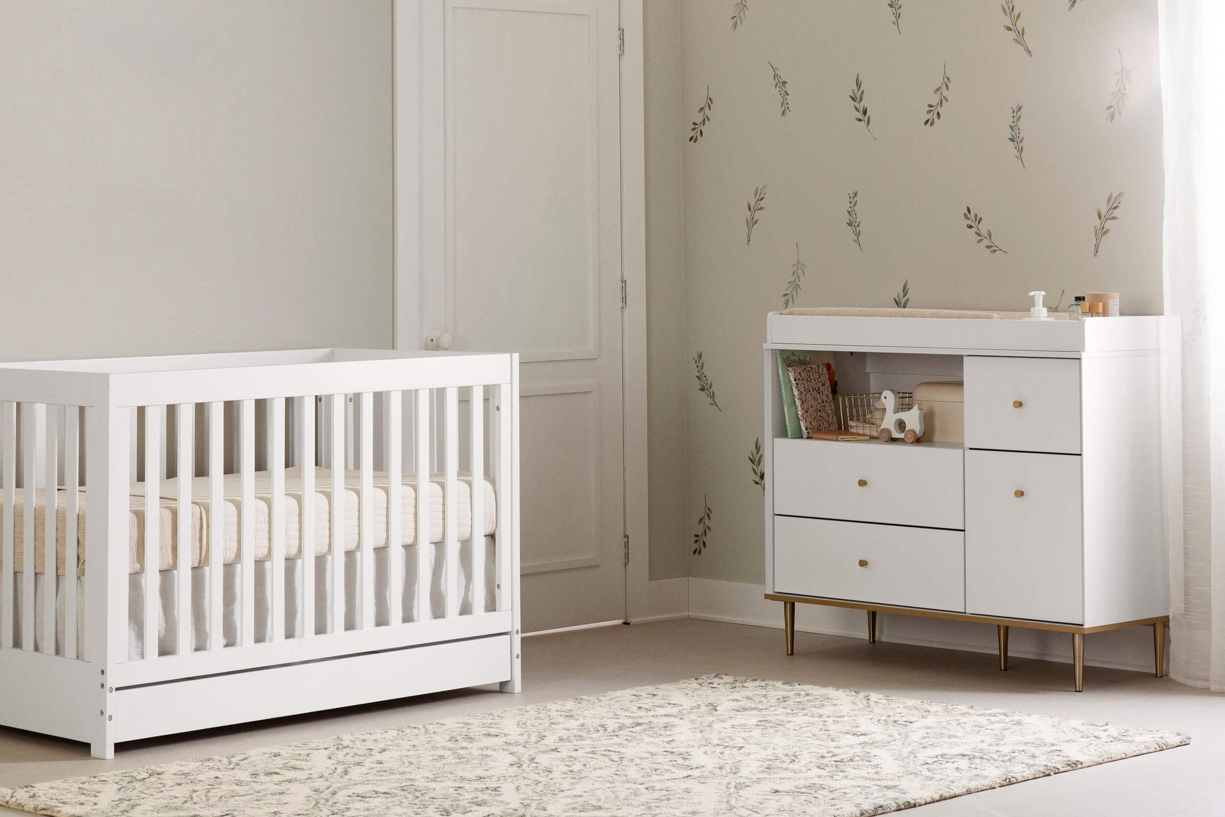 Table à langer South Shore Dylane avec tiroirs et rangement ouvert dotée d'un rebord amovible pour que le meuble puisse être adapté à mesure que votre nouveau-né grandit