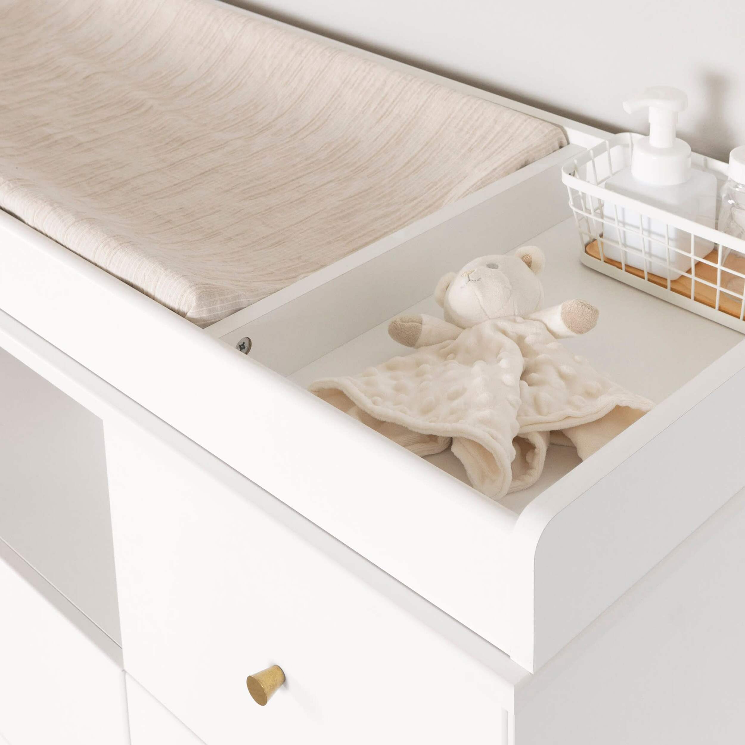 Espace ouvert à l'avant et petit espace sur le dessus pour garder les lingettes, les poudres et les lotions à portée de main