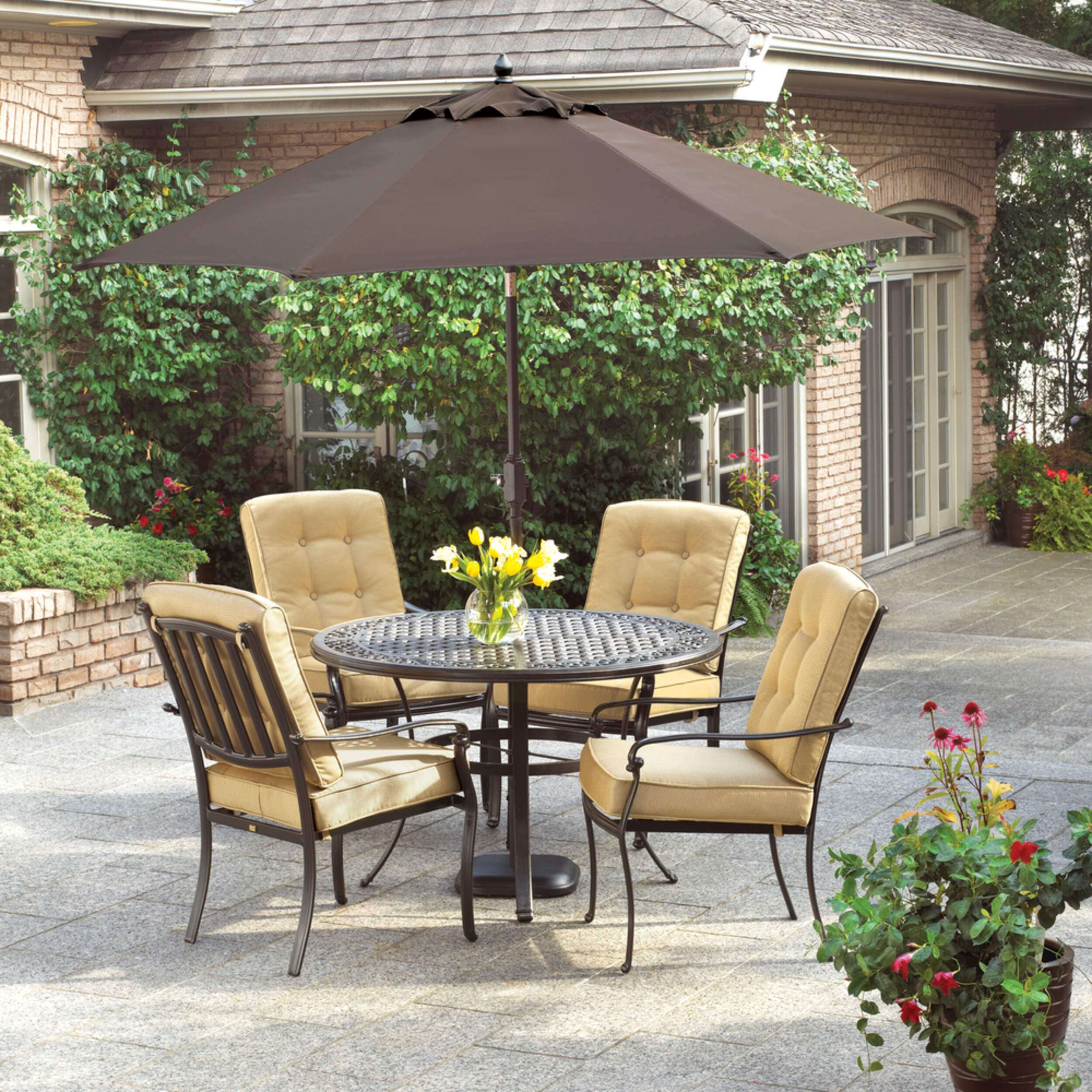 Table de jardin La-Z-Boy d'inspiration italienne élégante avec surface en aluminium moulé tissé décorative