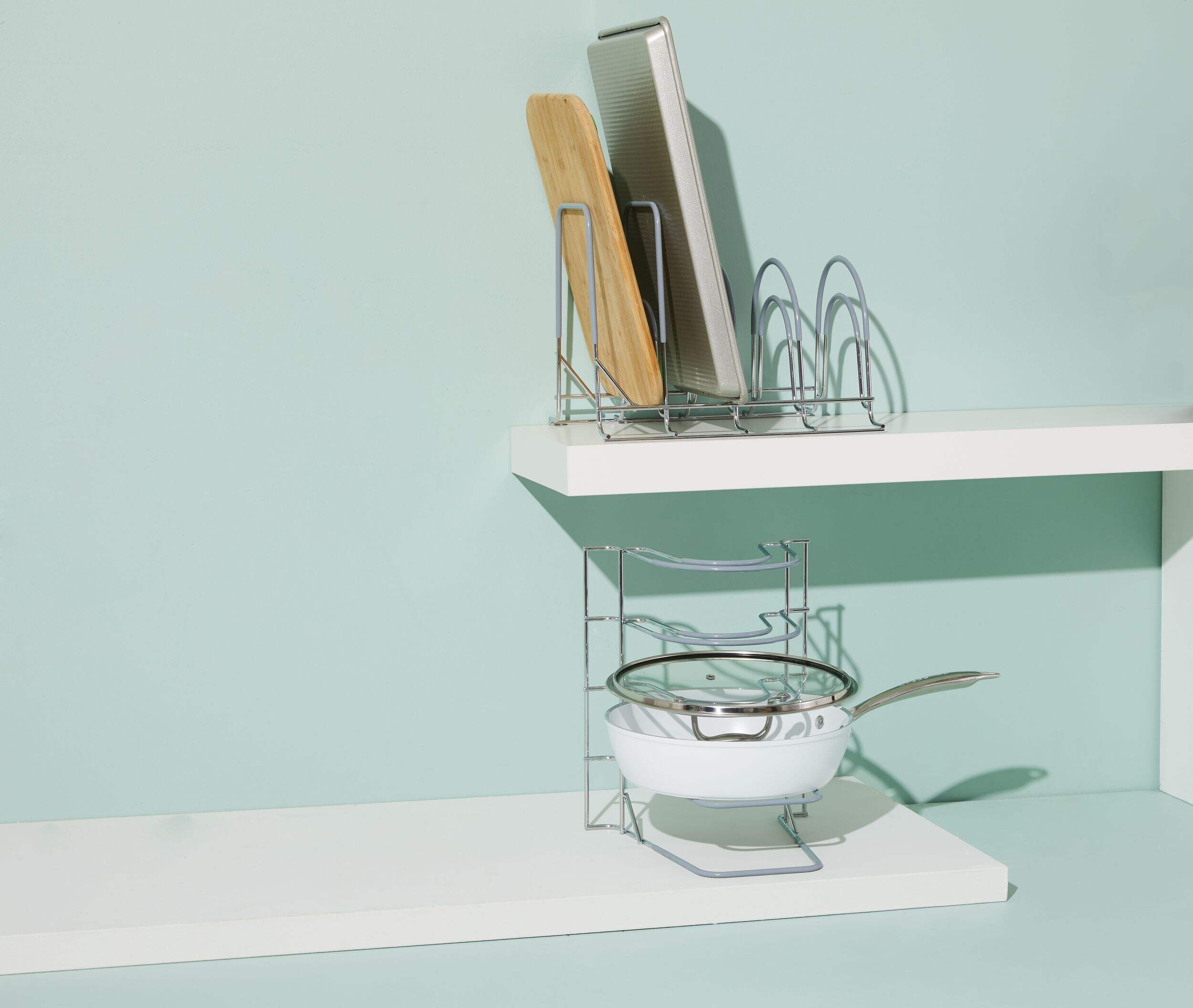 Organisez facilement votre batterie de cuisine et articles de cuisson avec le support de couvercle à poêle Type A Stay. Ce support polyvalent peut être placé à l'horizontale ou à la verticale pour maximiser l'espace de votre cuisine. Idéal pour garder les articles bien ordonnés sur les comptoirs, sur les tablettes et dans les armoires, ce support allie style et fonctionnalité pour que vos ustensiles de cuisson soient facilement accessibles et rangés.