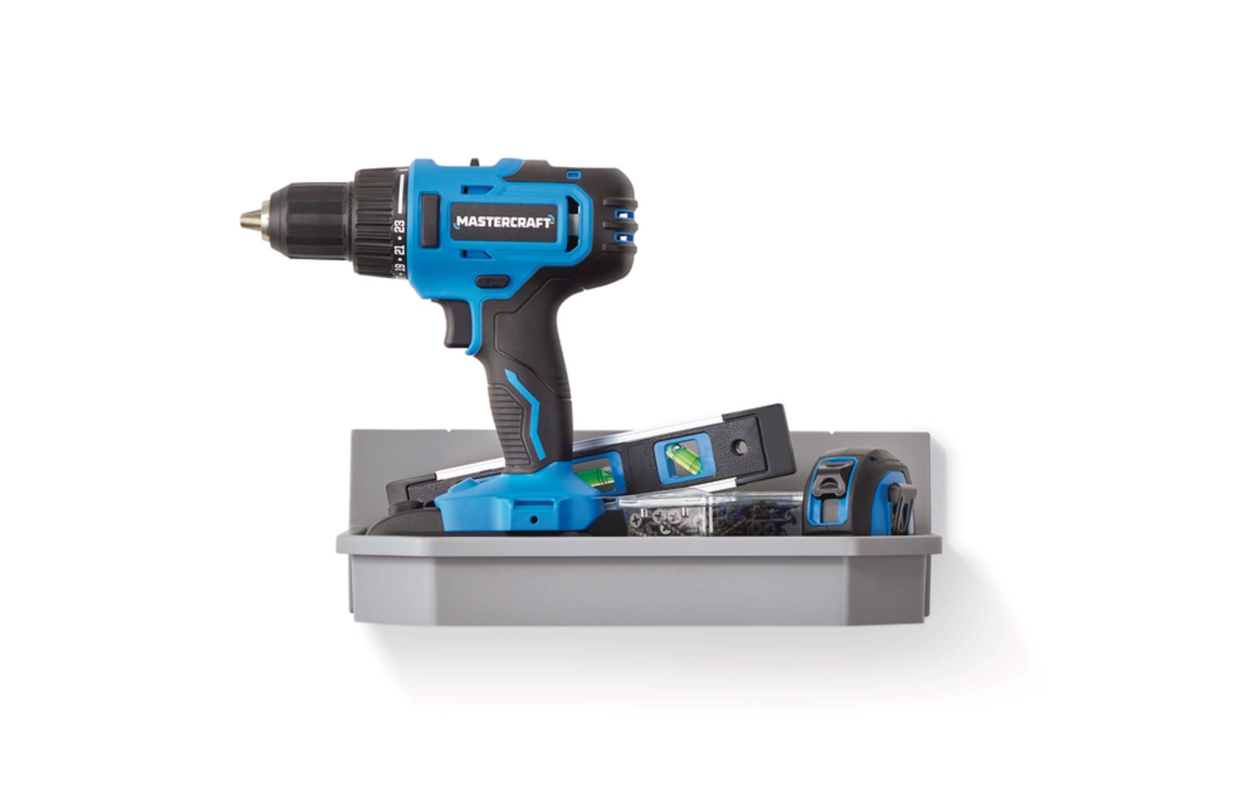 Restez organisé avec la tablette de rangement utilitaire MOD Mastercraft, capacité de charge de 30 lb, support mural. Cette solution de rangement simple vous aide à garder une longueur d'avance sur le désordre en rangeant une variété d'articles. Supporte une capacité de charge de 13,6 kg (30 lb). Que ce soit pour les articles en bouteille, les vaporisateurs ou les accessoires de nettoyage, le support de rangement est idéal pour le garage, l'atelier ou le sous-sol. Support fait de nylon renforcé; idéal pour les montants exposés et les murs finis. Conception extrêmement durable pour une utilisation constante. Faisant partie du système de rangement modulaire pour le garage Mastercraft, cette étagère de rangement est compatible avec le support de goujon de fixation MOD Mastercraft, la trousse de départ MOD et les rails muraux MOD. Grâce aux accessoires MOD préfixés aux pinces MOD, vous bénéficiez de l'avantage d'une installation simple et facile. L'ensemble comprend (1) tablette utilitaire, (2) pinces MOD, (4) vis à bois no 8, (4) ancrages pour cloison sèche et (1) gabarit d'installation.