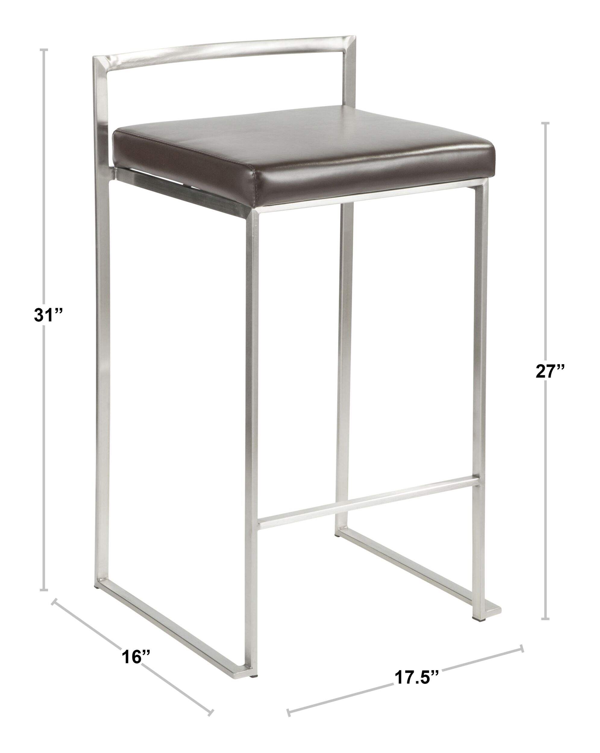 Élégants tabourets Fuji au confort surprenant. Pattes et dossier en acier inoxydable léger avec coussin en similicuir épais. Modèle empilable facile à ranger. S'agence à tout décor.