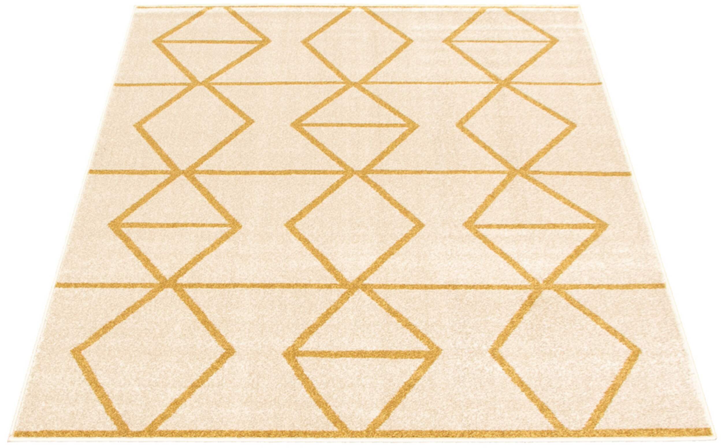 Petit tapis d'intérieur abstrait moderne/contemporain de couleur ivoire et or