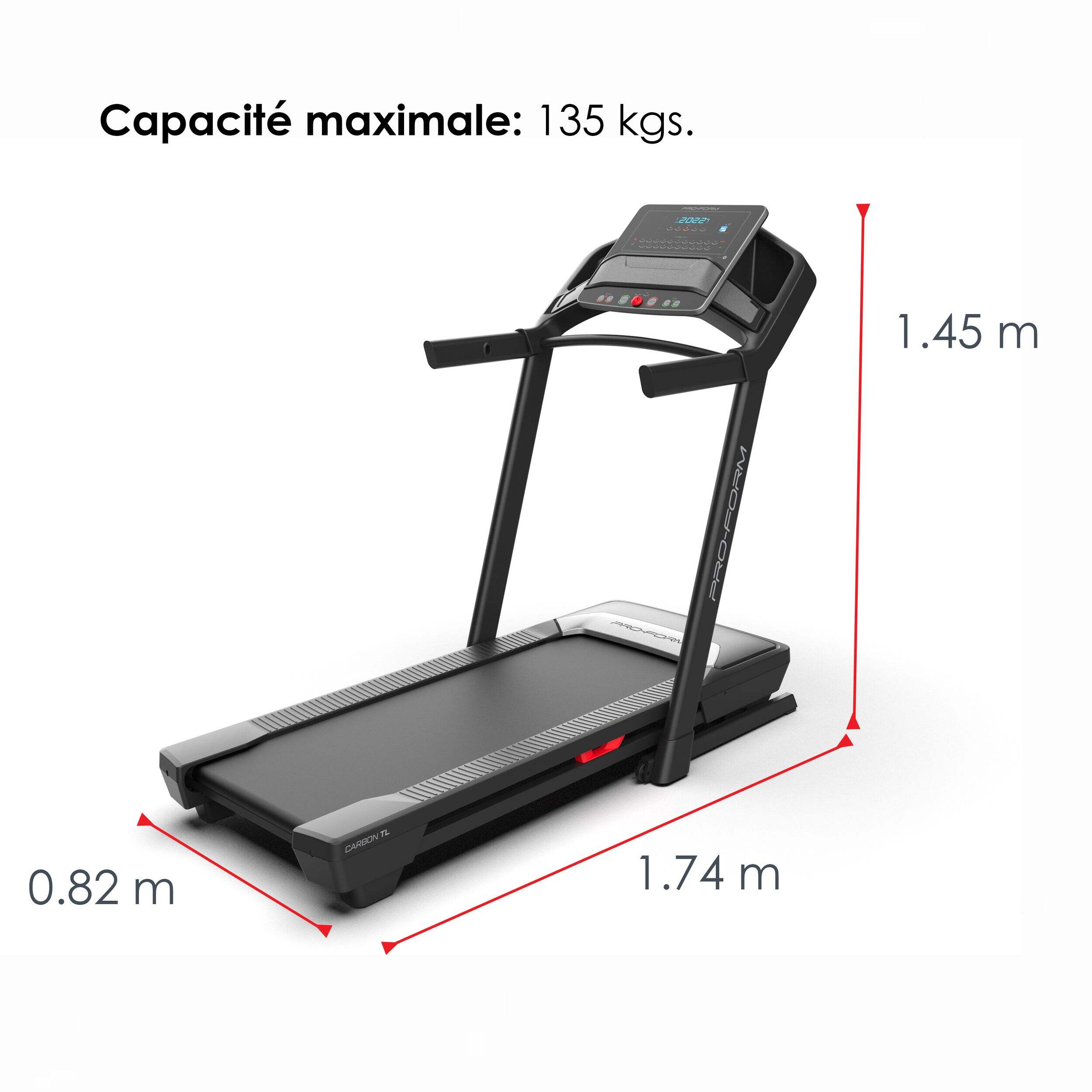Faites passer votre entraînement à la maison au niveau supérieur avec le tapis roulant pliable ProForm Carbon. Ce tapis roulant novateur compatible avec iFitMD est doté d'un écran facile à lire qui vous permet de voir vos statistiques d'entraînement et de diffuser des cours en studio et d'une puissante courroie coussinée pour une course fluide jusqu'à 10 mi/h. Avec la possibilité de personnaliser vos entraînements, ce tapis roulant pliable vous permet de vous entraîner de façon interactive à la maison.