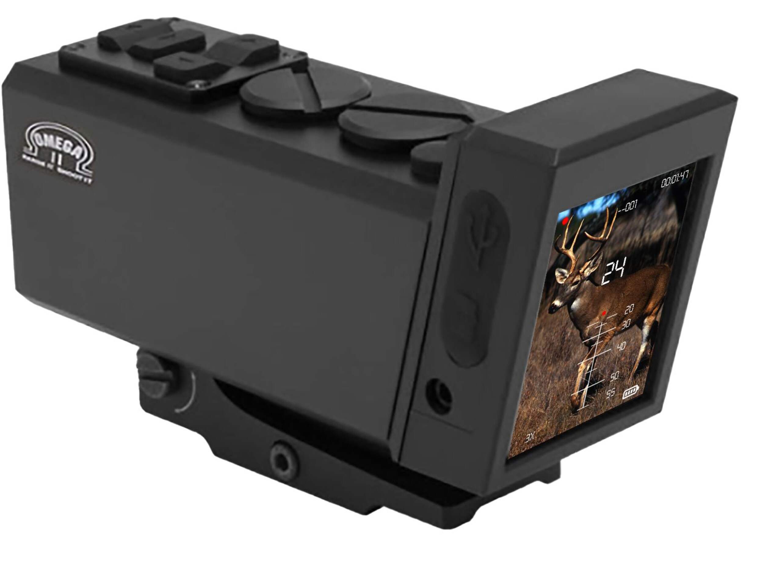 L'Omega 2 est un viseur de tir polyvalent et novateur. Au lieu des objectifs en verre traditionnels, il utilise une caméra HD intégrée qui projette la vue sur un écran ACL lumineux de 1 1/2 x 2 po. Avec un dégagement oculaire illimité, il peut se fixer n'importe où sur votre arme. La caméra s'adapte aux fusils de chasse, revolvers, arbalètes et arcs à poulies, avec 5 échelles de réticule. La plage de zoom de 2x à 6x, le pare-soleil et le mode faible éclairage sont utiles en cas de faible luminosité. Plus qu'un simple viseur, l'Omega 2 enregistre des vidéos HD 1080p sur sa carte SD de 16 Go, ce qui vous permet d'examiner vos tirs directement sur le terrain. Le télémètre intégré offre une portée allant jusqu'à 600 verges pour une précision accrue sur de longues distances.