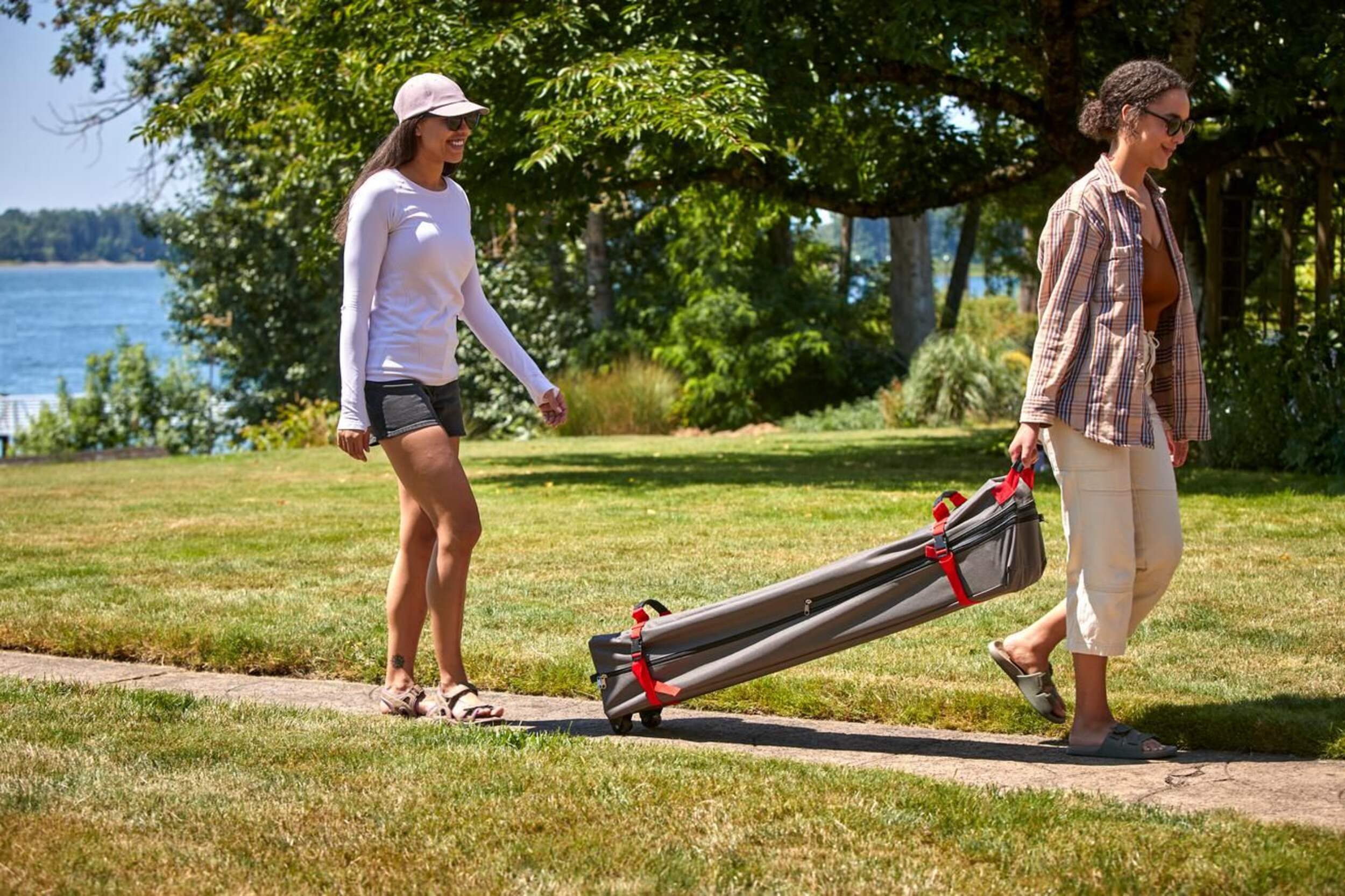 SAC DE TRANSPORT À ROULETTES : Comprend des sangles pour un rangement sécuritaire et une traction facile
