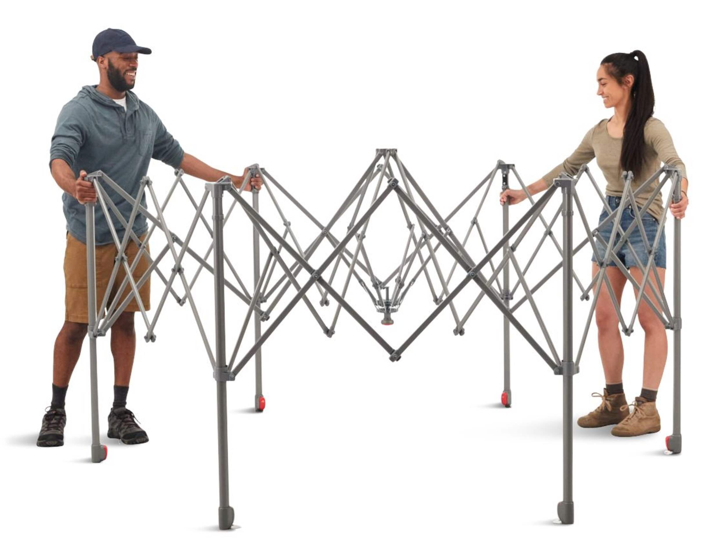 MOYEU CENTRAL À BOUTON-POUSSOIR Technologie OnePeak qui facilite et accélère la configuration lorsqu'il est temps de ranger, il suffit de tirer sur la sangle pour la démonter