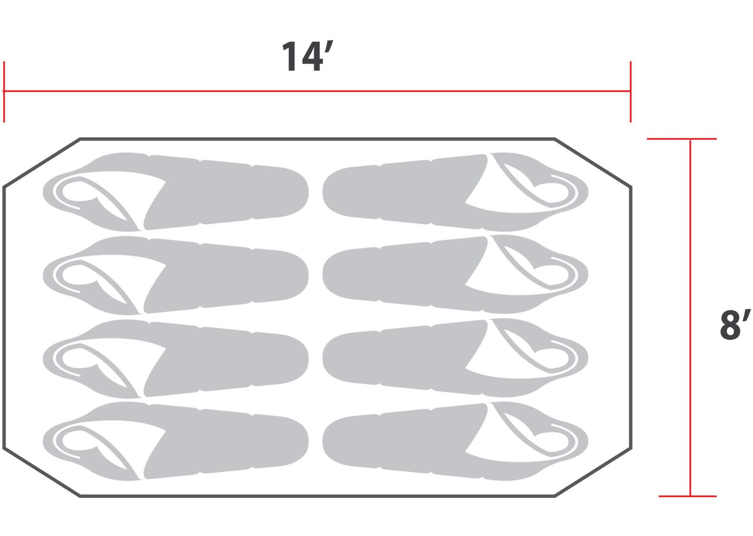 Dimensions : 4,3 m L x 2,4 m la x 1,8 m H (14 pi x 8 pi x 5 pi 10 po)