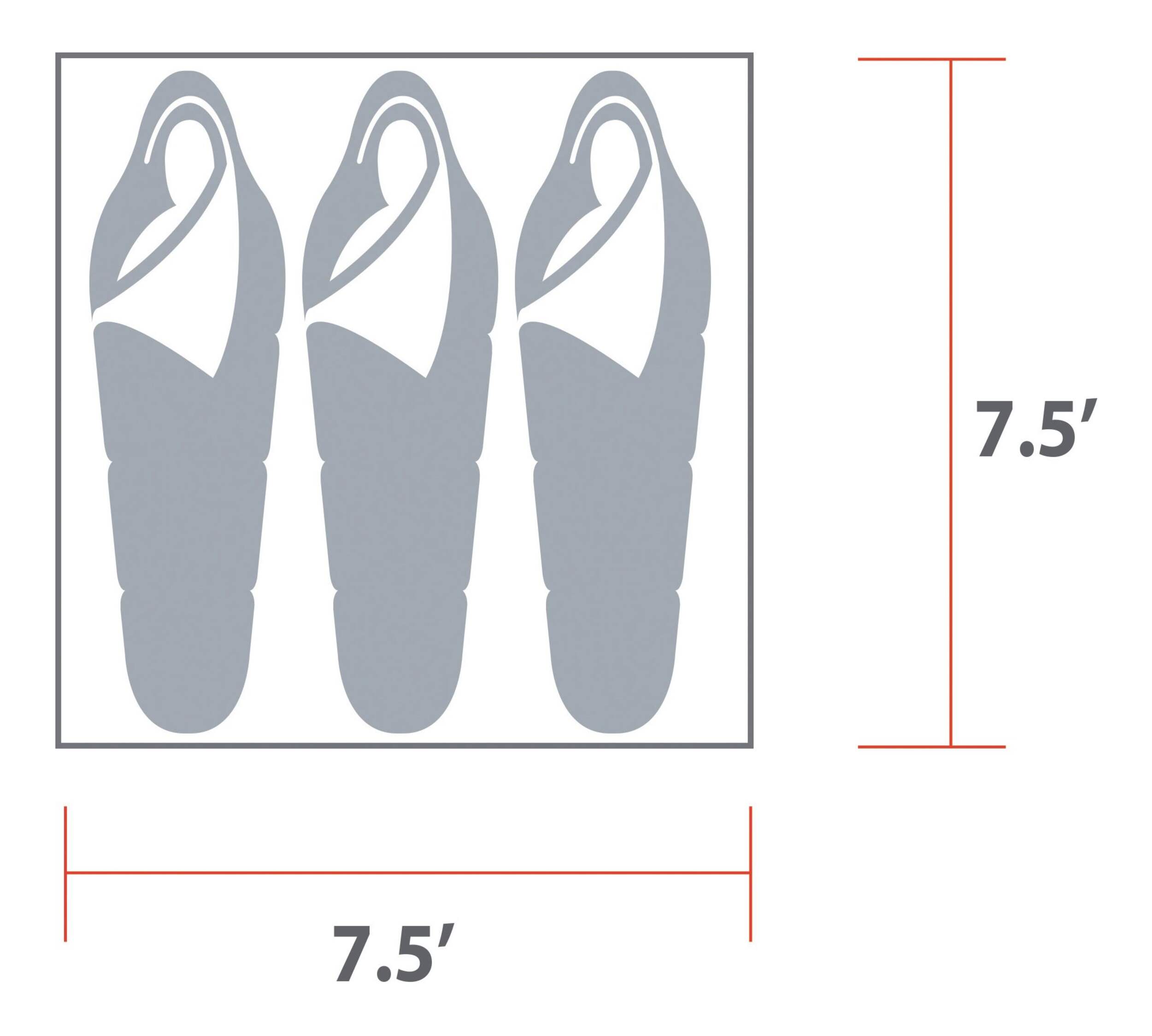 Dimensions de la tente : 2,3 x 2,3 x 1,4 m (7-1/2 pi x 7-1/2 pi x 4 pi 8 po)