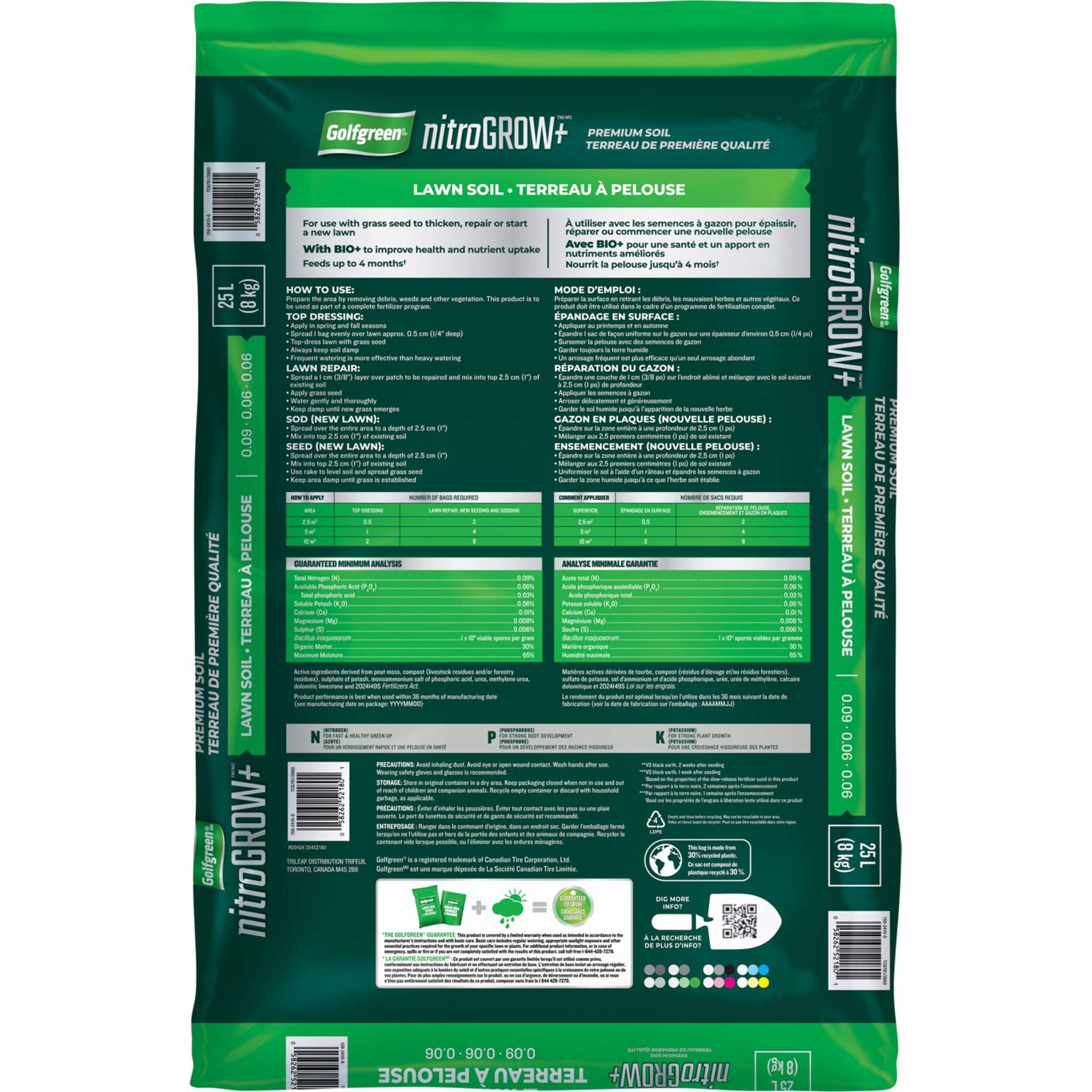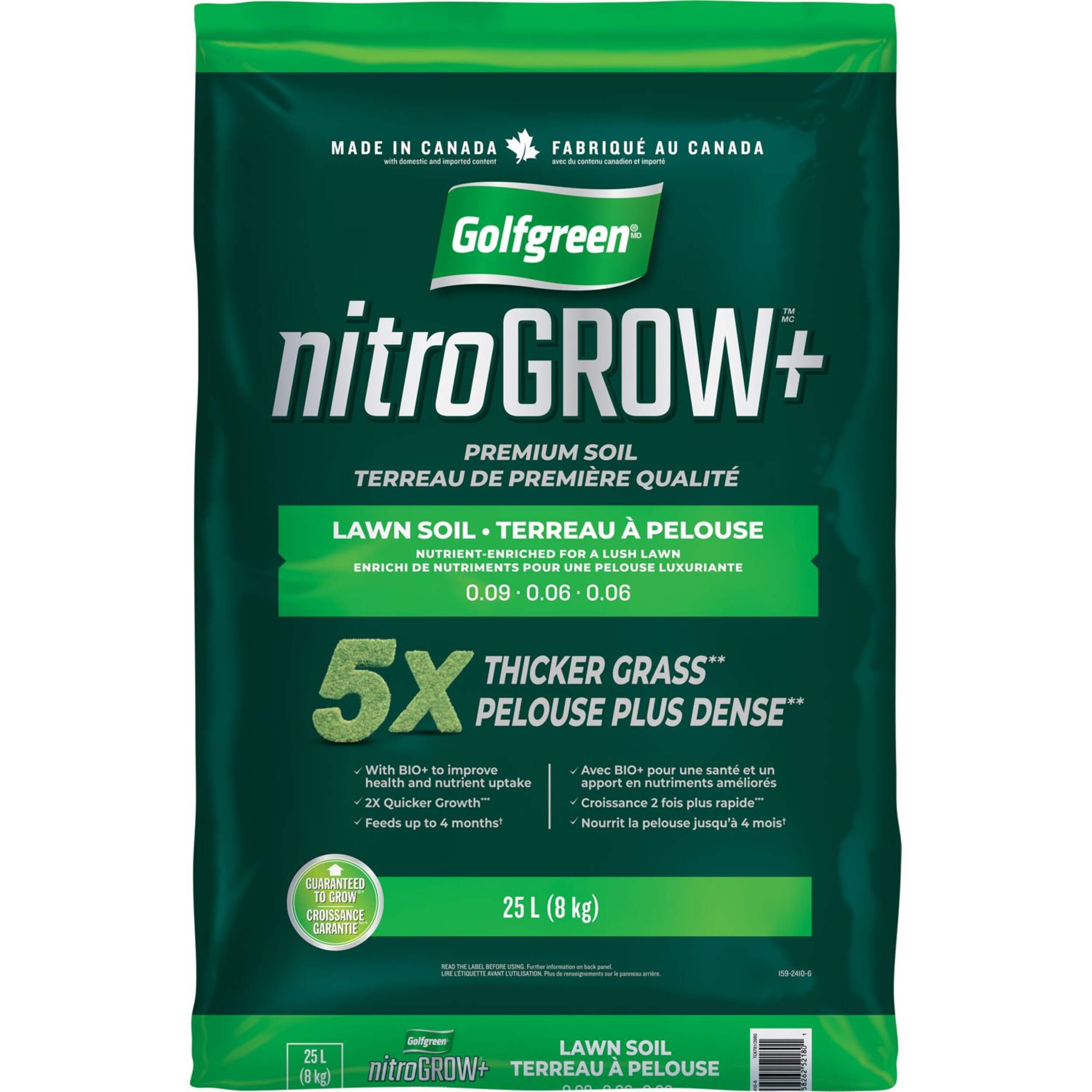La terre à pelouse de première qualité Golfgreen Nitrogrow+ est constituée d'un mélange enrichi en nutriments de compost et d'engrais pour une pelouse luxuriante. Formulé avec BIO+ pour améliorer la santé et l'absorption des éléments nutritifs favorisant une croissance 2 fois plus rapide et une pelouse 5 fois plus épaisse. Ce mélange tout-en-un pour engazonner ou ensemencer de nouvelles pelouses, sursemer des pelouses existantes ou pour remplir les zones dénudées ou clairsemées.