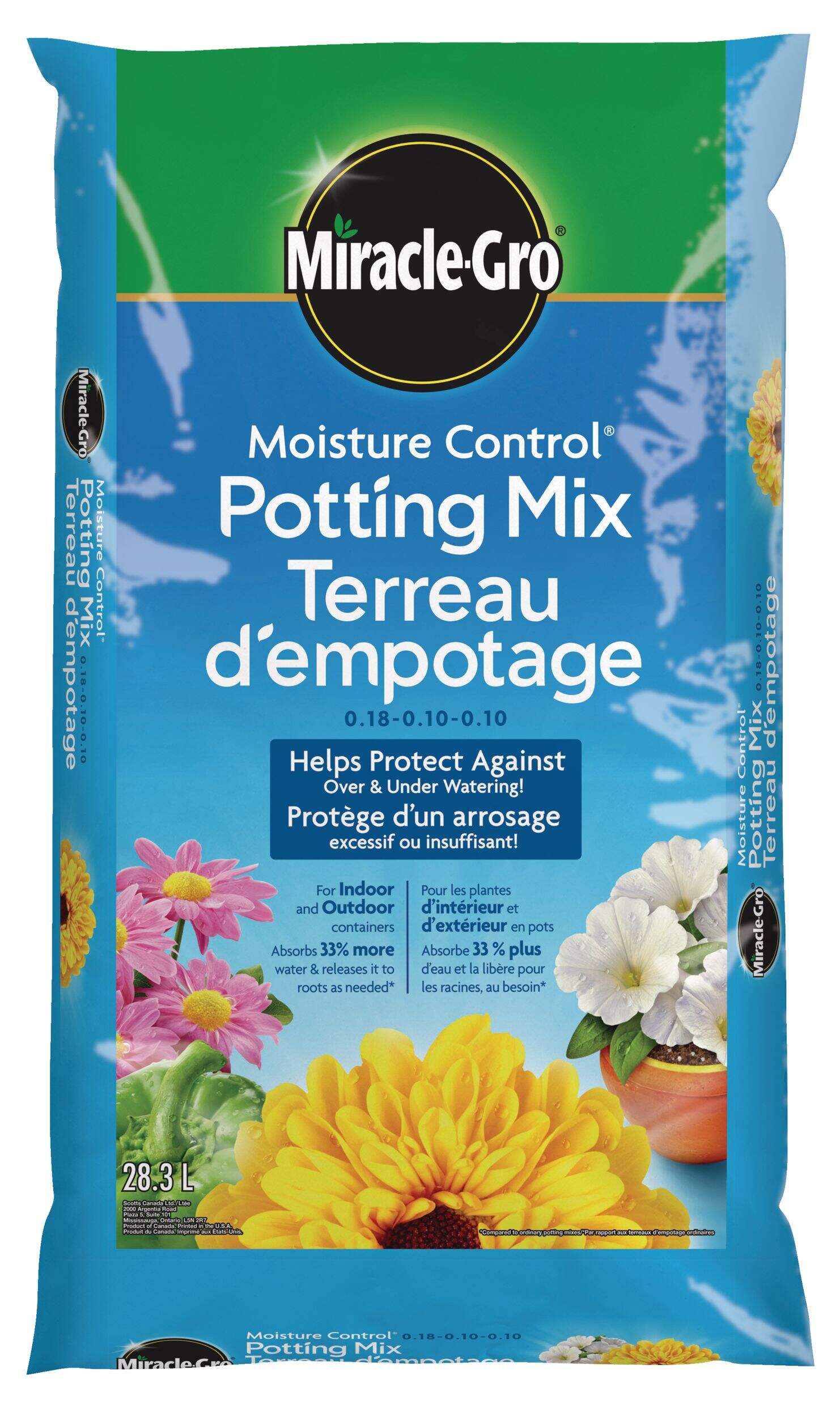 Le terreau d'empotage Miracle-Gro Moisture Control facilite l'entretien des plantes en pot. La formule AquaCoir exclusive absorbe 33 % plus d'eau que la terre de base, en la retenant pour une libération graduelle vers les racines des plantes selon les besoins. Ne vous souciez plus de l'arrosage excessif ou insuffisant, profitez simplement de magnifiques et florissantes plantes tout en réduisant l'entretien. Ce mélange contient également de l'engrais pour plantes qui permet de fertiliser votre verdure jusqu'à 6 mois, ce qui vous permet de passer moins de temps sur l'entretien et plus sur l'admiration de votre travail. Idéal pour les plantes en pot d'intérieur ou d'extérieur.