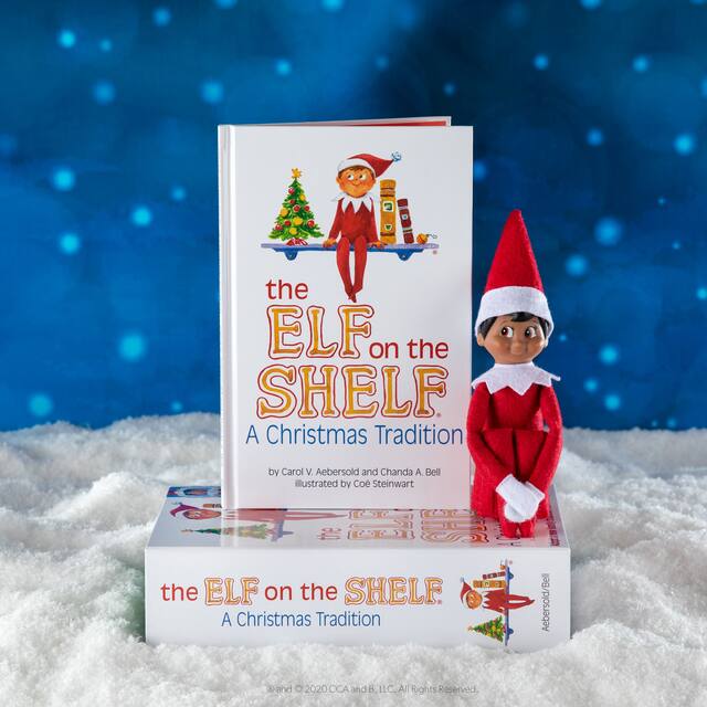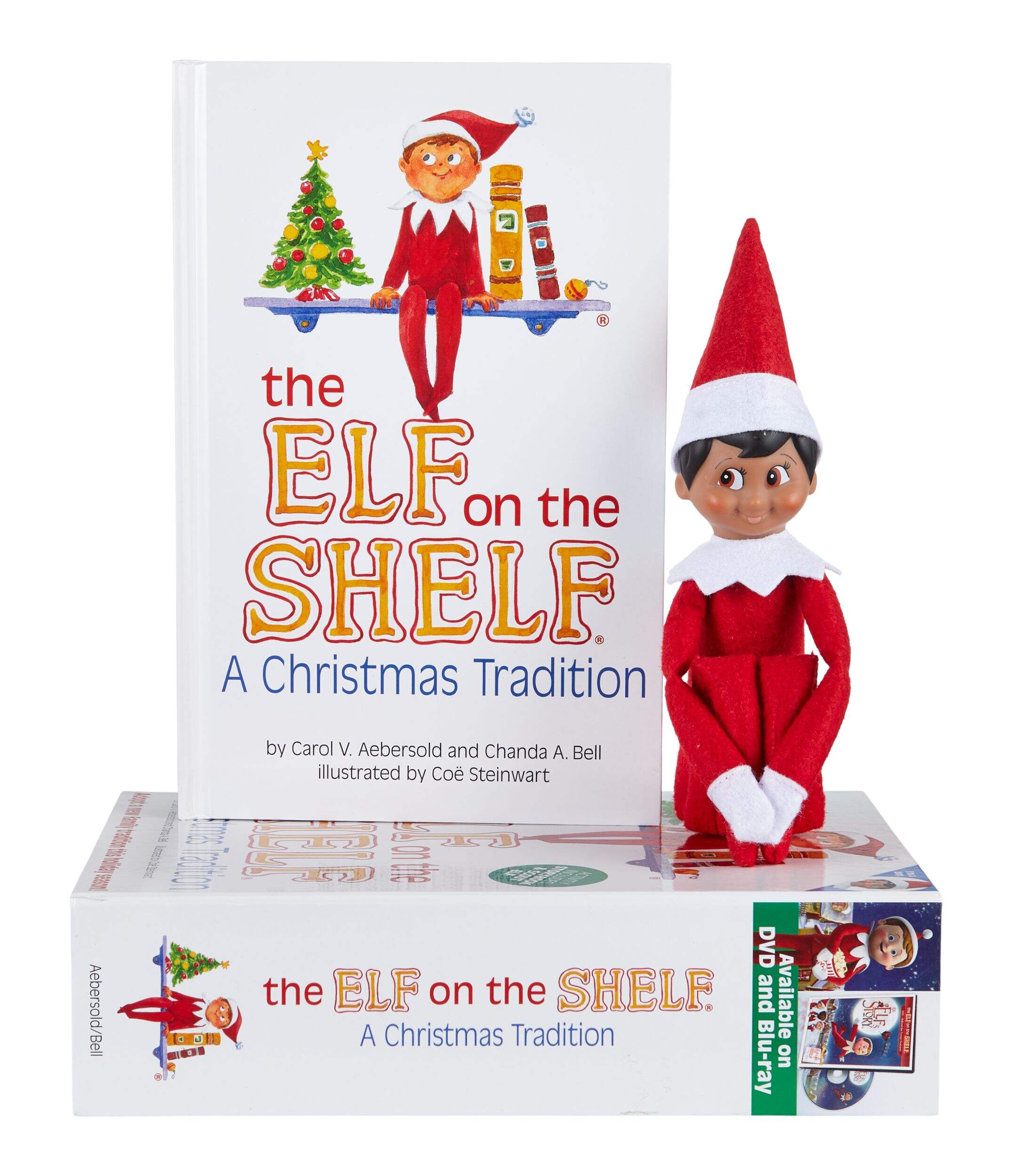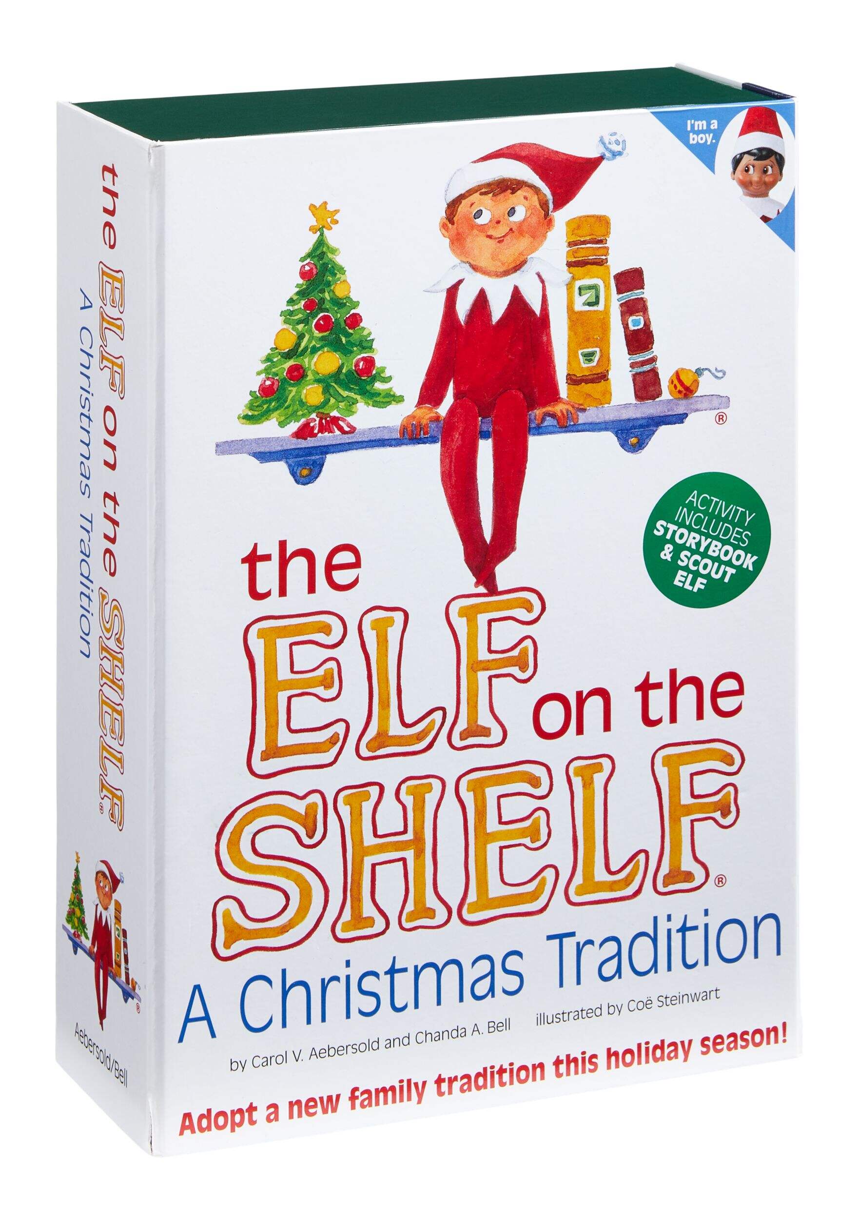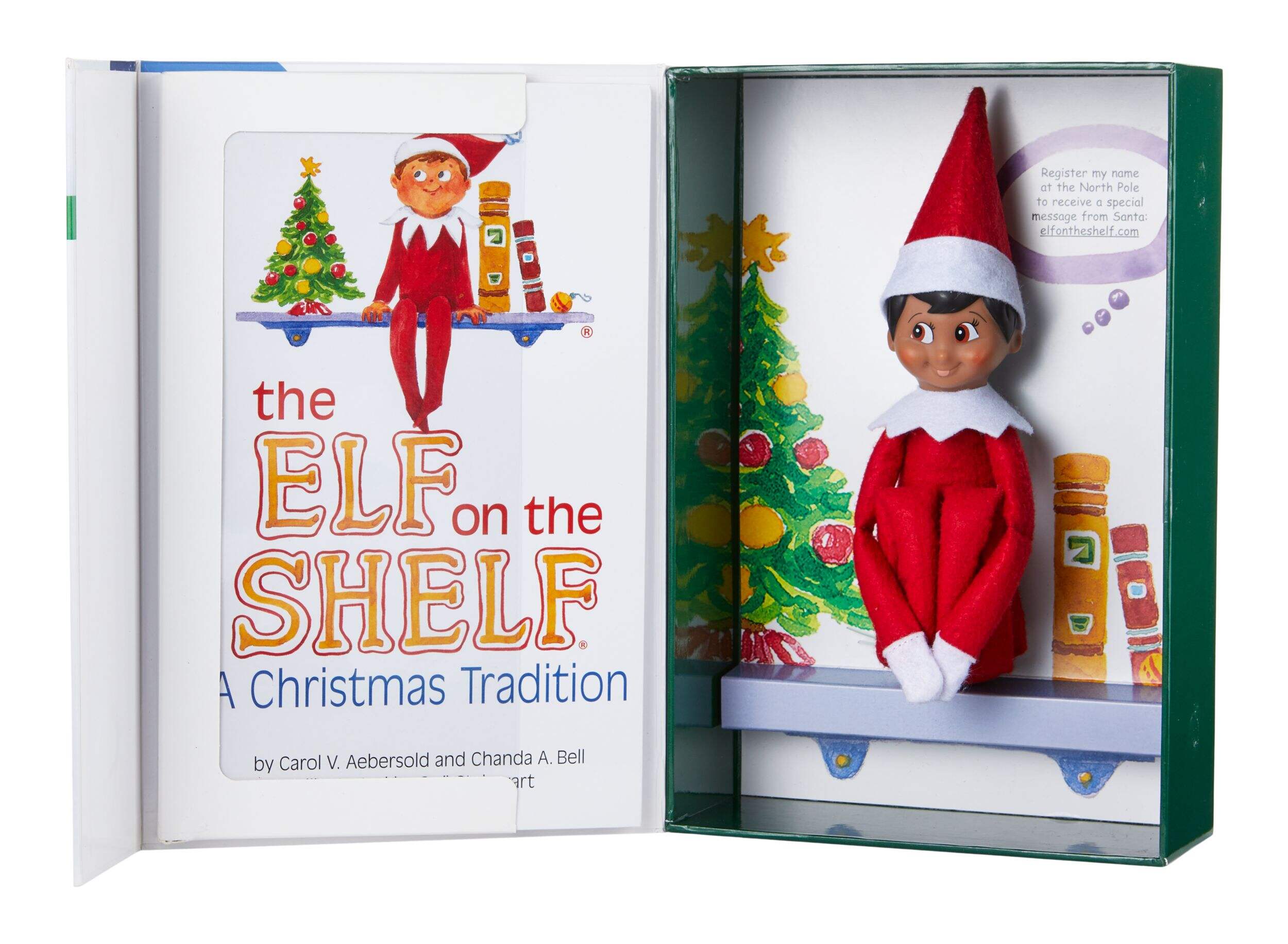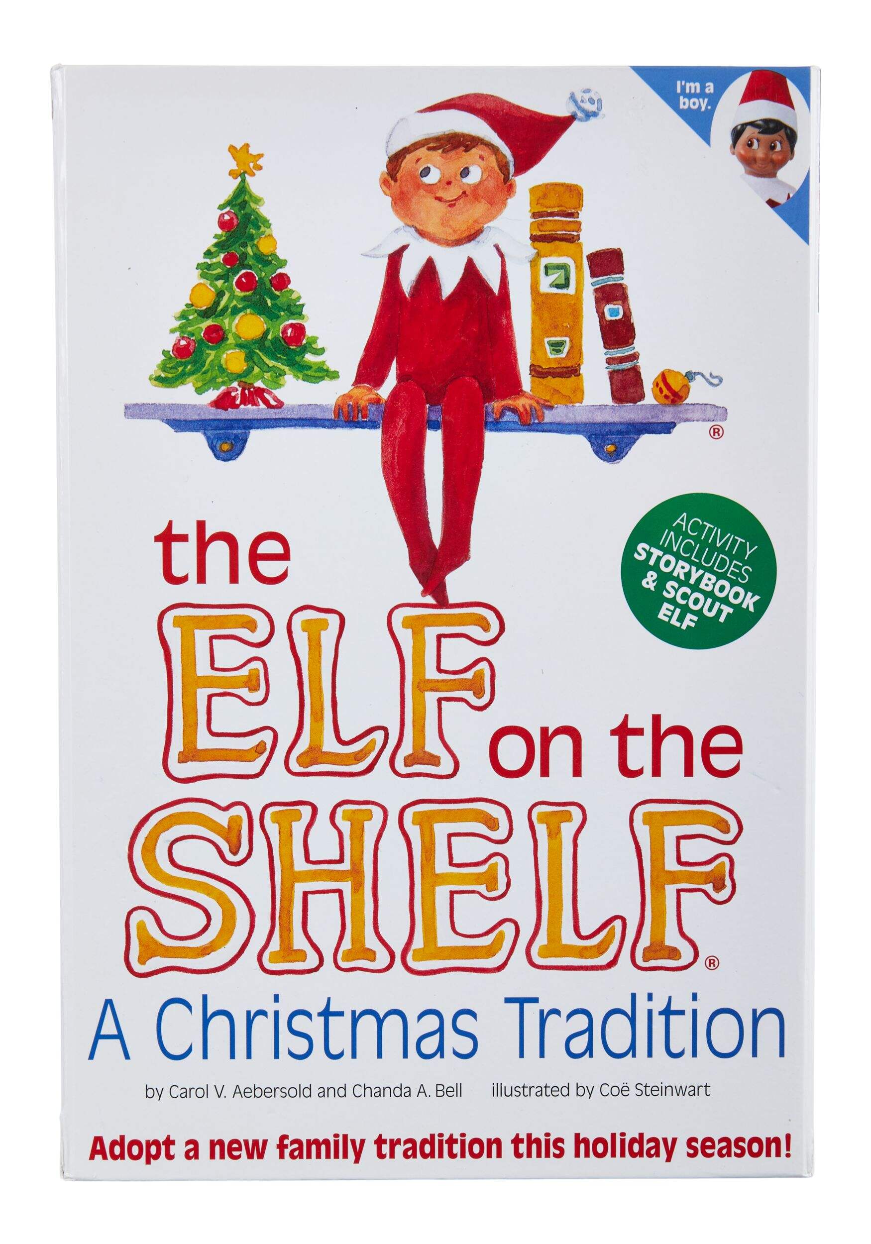 Livre traditionnel de Noël The Elf on the Shelf avec lutin éclaireur garçon aux yeux bruns et boîte souvenir