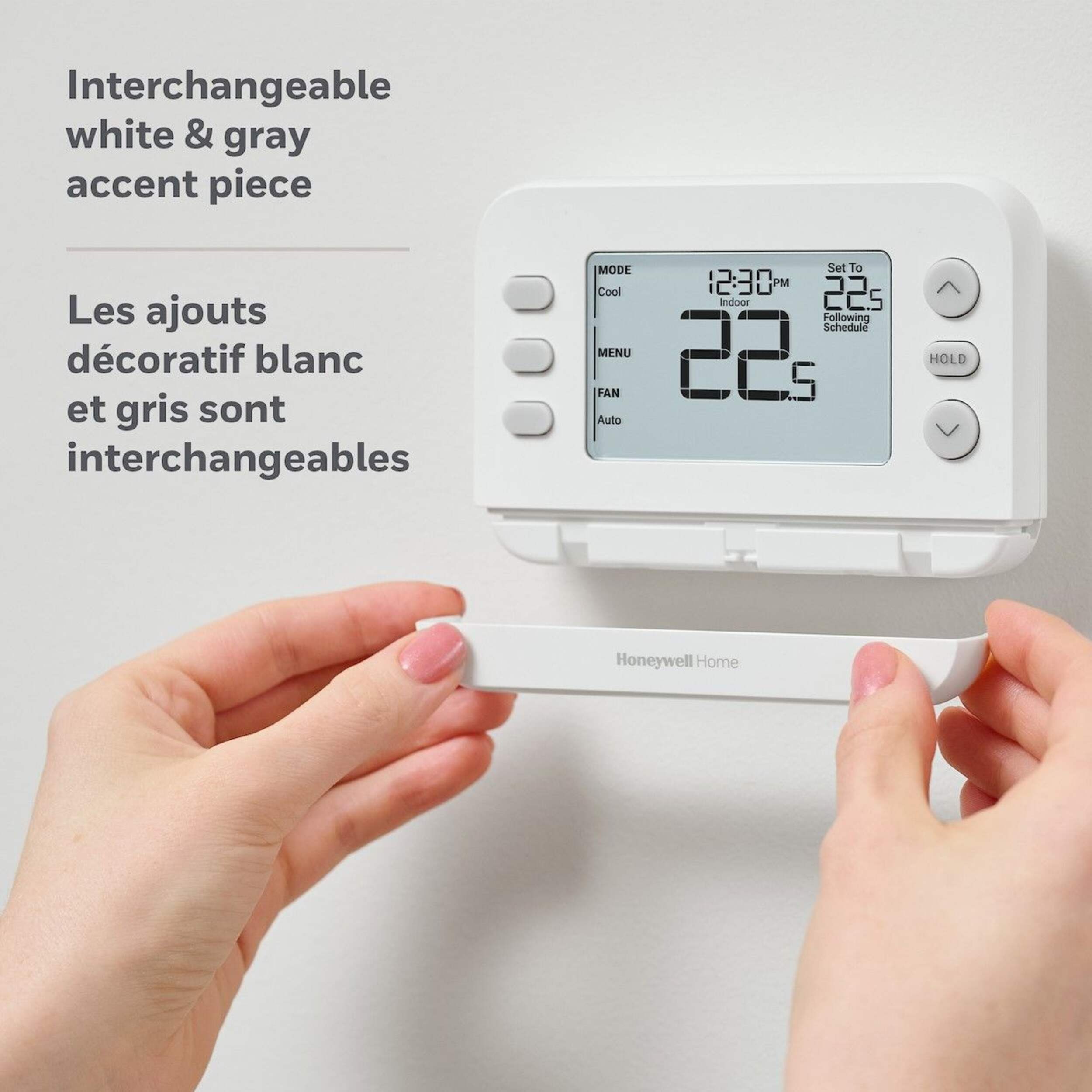 Le thermostat programmable Honeywell Home X2P offre un confort fiable basé sur un horaire, en mettant l'accent sur la simplicité et la convivialité. Conçu pour les propriétaires qui recherchent une solution simple, le X2P offre un contrôle personnalisé du chauffage et de la climatisation, sans complexité inutile. Vous pouvez facilement établir un horaire de chauffage et de climatisation parfaitement adapté à votre vie quotidienne. Choisissez parmi des options de programmation adaptables, y compris des horaires de 7 jours, de 5-1-1 jours, de 5-2 jours ou de 1 semaine, ou optez pour un fonctionnement manuel en désactivant la fonction de programmation. La conception tout simplement mieux du X2P vous garantit que votre confort est toujours facilement accessible.