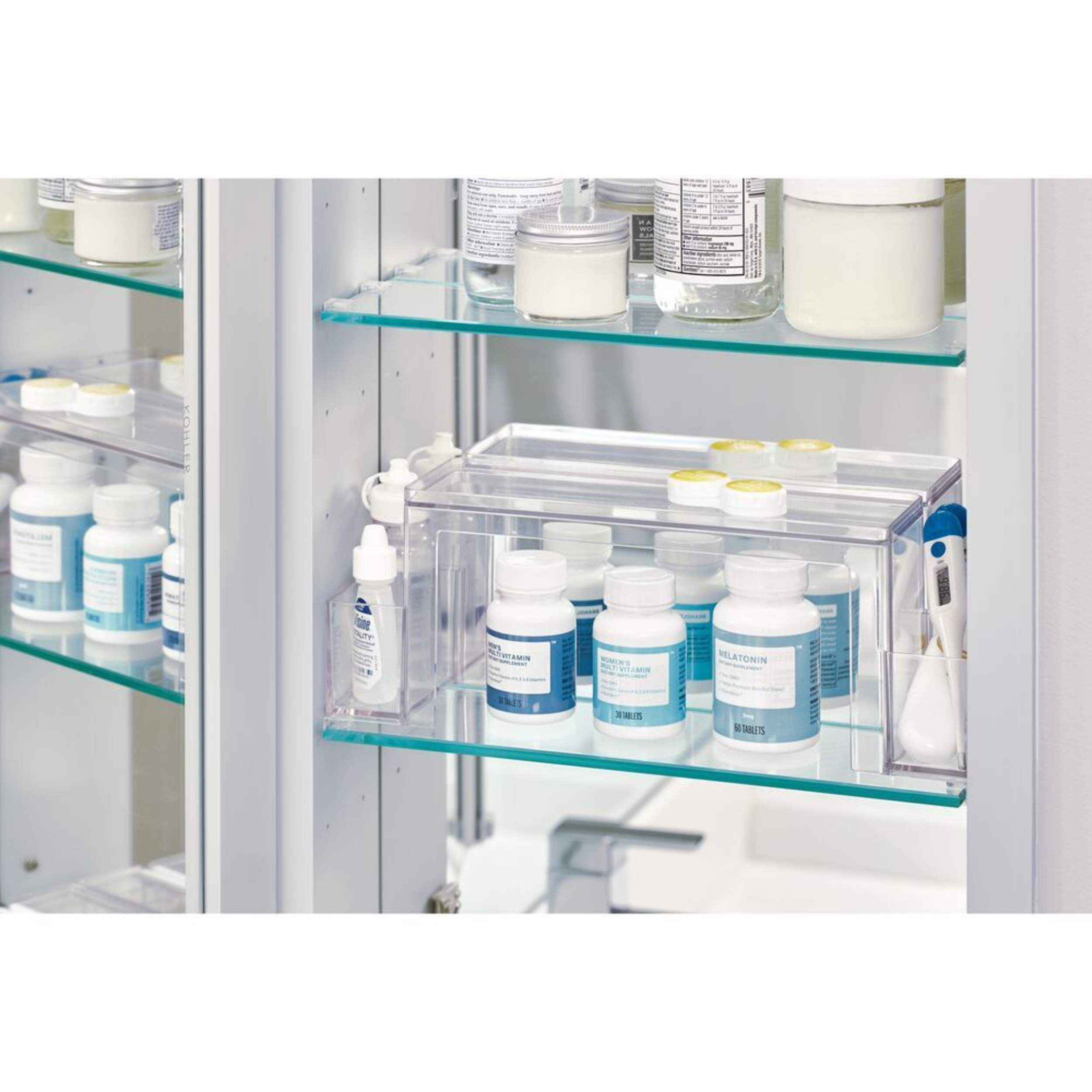 Le range-tout à deux niveaux The Home Edit promet d'apporter la paix à votre armoire à médicaments. Fabriqué en plastique durable et incassable, ce rangement mince garde les pilules et potions debout et offre 2 fois la capacité de rangement des tablettes typiques d'armoire à pharmacie. Les supports latéraux retiennent vitamines, fournitures et cosmétiques, le rebord empêchant les renversements avec une sécurité accrue. Avec sa conception transparente, l'examen du contenu devient facile pour avoir ce dont vous avez besoin, quand vous en avez besoin. Avec les piluliers The Home Edit, ce rangement transforme votre armoire à pharmacie en un endroit accessible et intégré pour tous vos articles essentiels de santé et de bien-être.