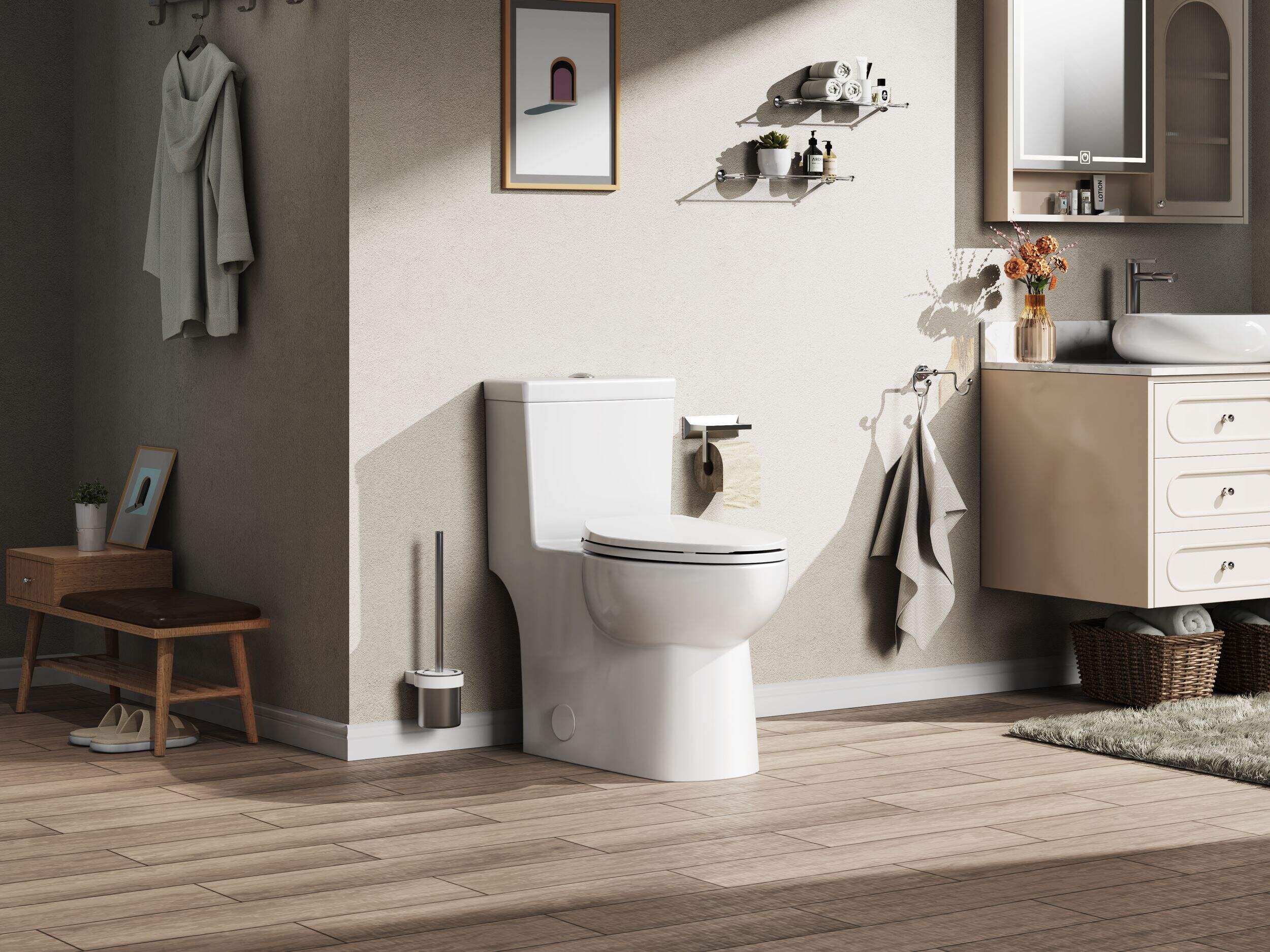 Toilette complète qui comprend la bordure, le bouton, l'anneau de cire et le couvre-siège à fermeture douce