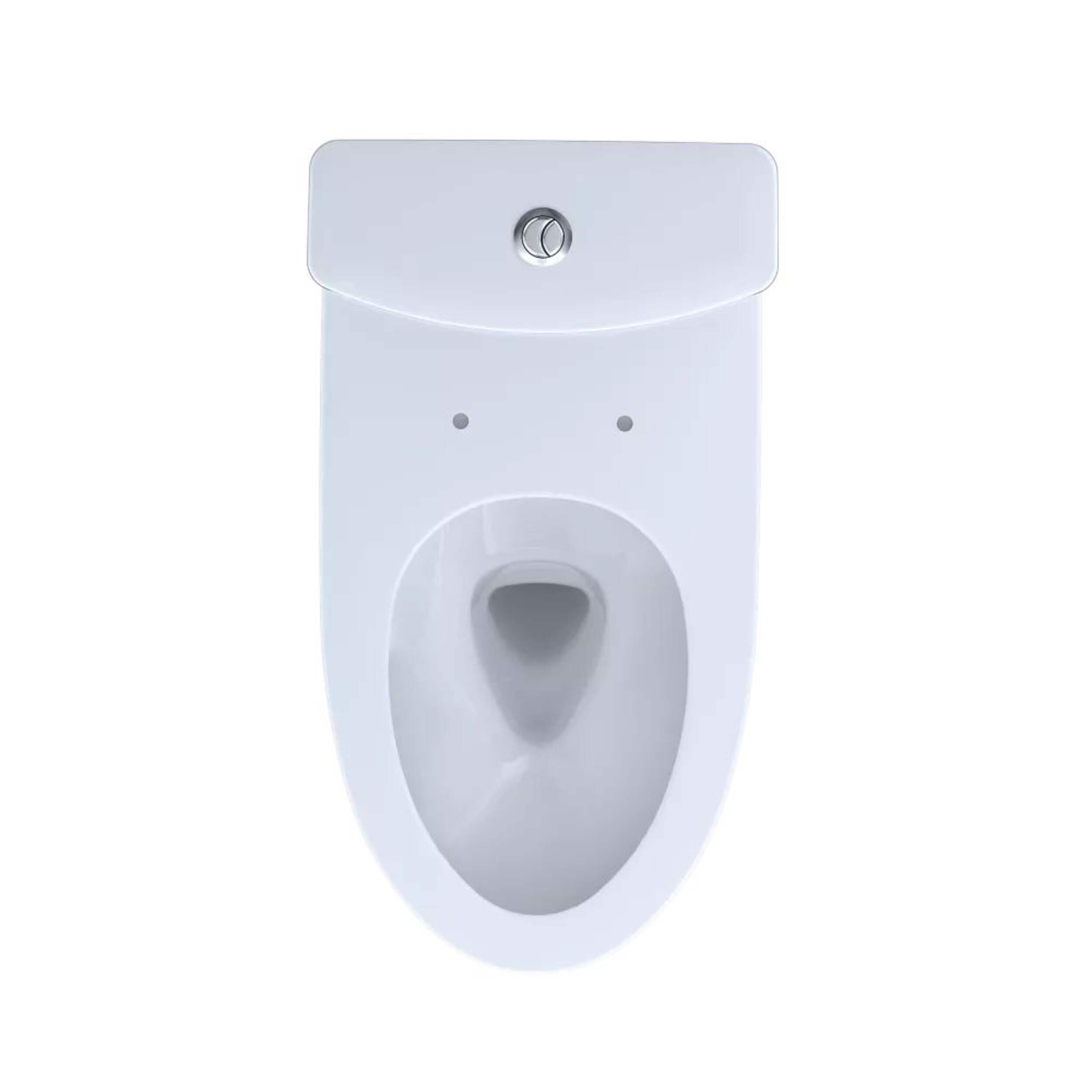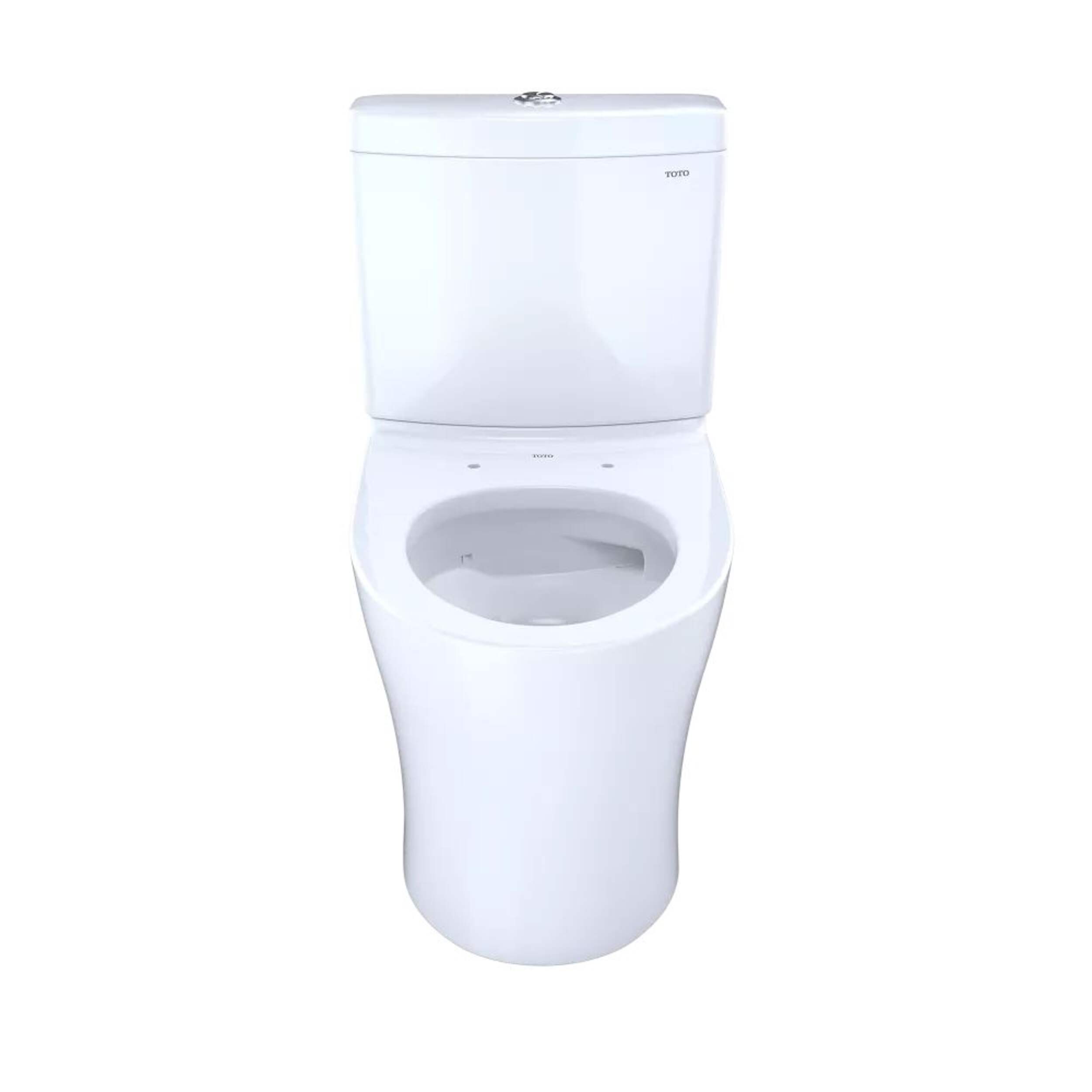 Toilette allongée moderne en deux pièces de hauteur standard avec double chasse