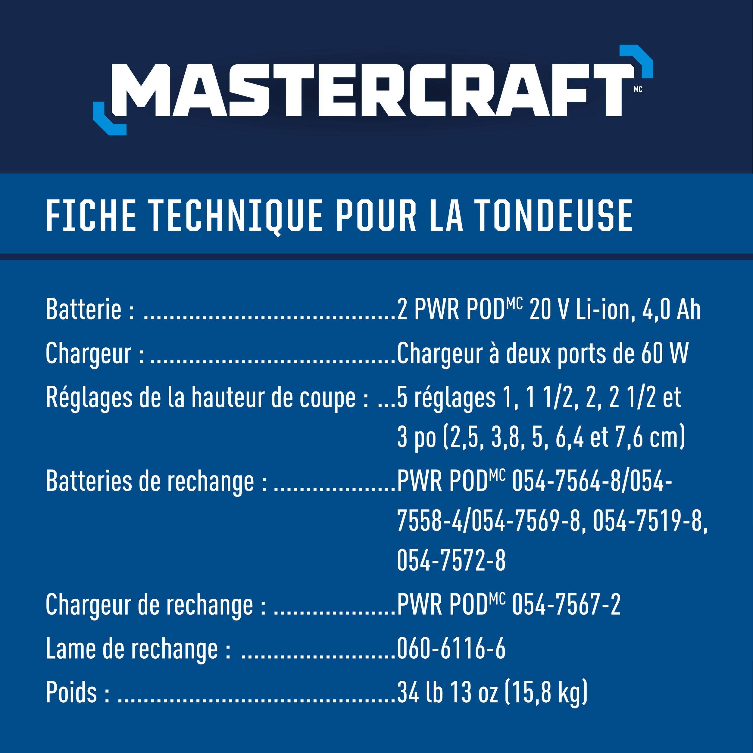 Lame de rechange vendue séparément : Lame de tondeuse Mastercraft, 13 po (n° CT 060-6116)