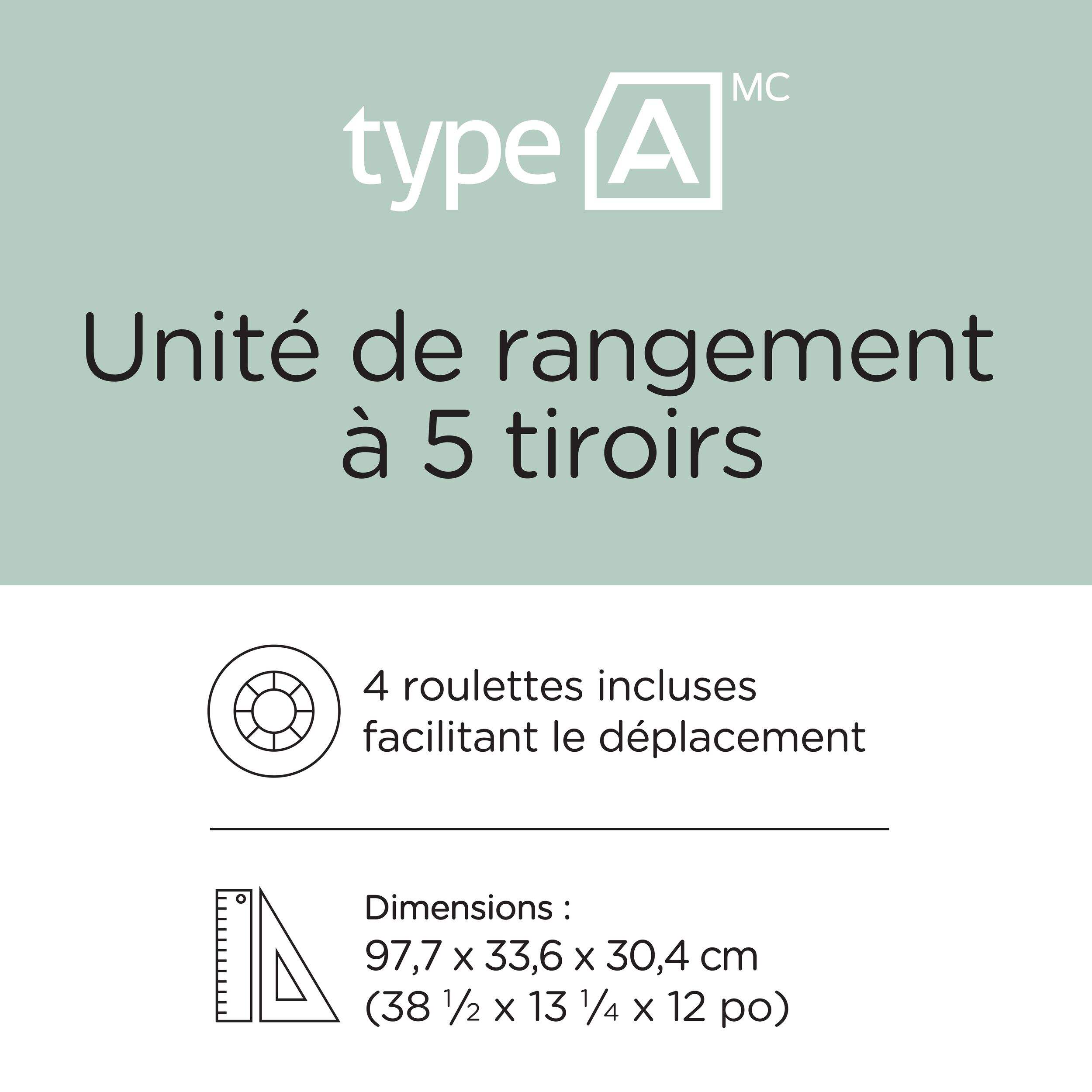 Comprend cinq tiroirs profonds assurant un rangement efficace et sans encombrement