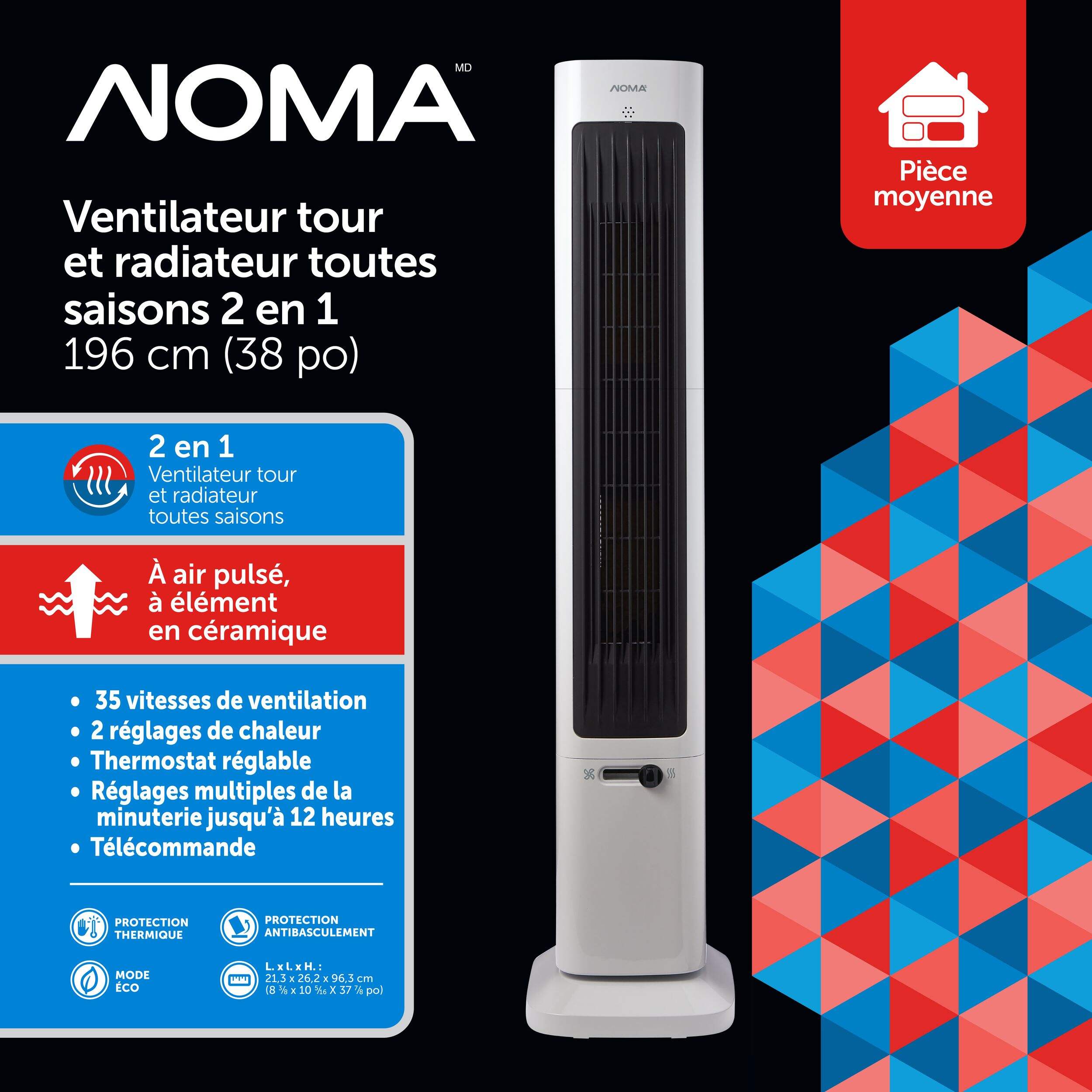 La tour de ventilation et de chauffage 2-en-1 de NOMA est parfaite pour une utilisation en toute saison et offre un grand volume d'air.