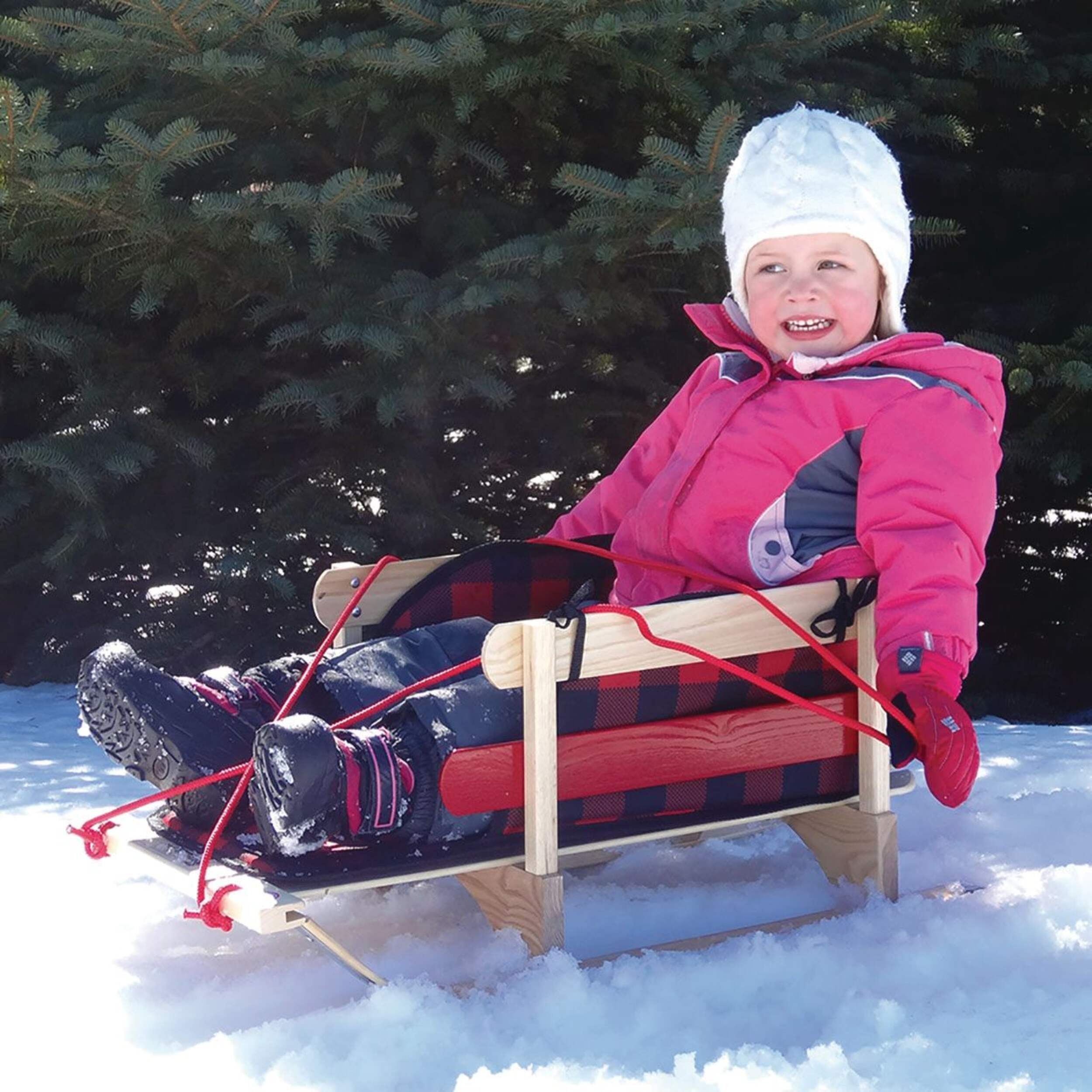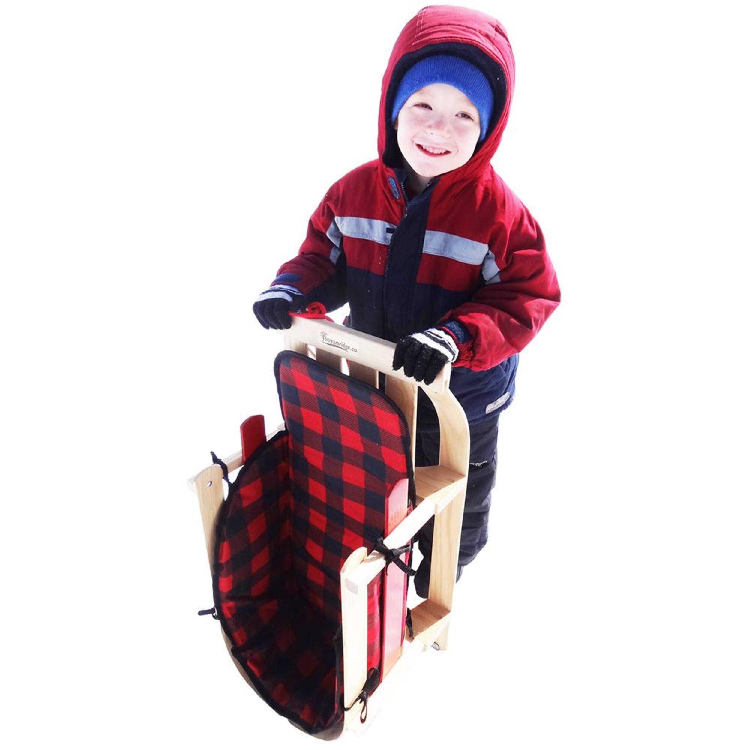 Le traîneau Streamridge Grizzly avec coussin à carreaux promet de joyeuses randonnées hivernales pour votre tout-petit. Fabriqué à partir de frêne de l'Ontario robuste et doté d'un rembourrage épais et confortable, ce traîneau est conçu pour le confort et la durabilité. Barres d'usure en métal sur le dessous du traîneau qui l'aident à glisser en douceur sur la neige et la glace pendant des années et style rétro en bois qui ajoute une touche d'élégance à vos sorties hivernales féeriques. Que ce soit pour glisser sur des pentes douces ou sur un terrain plat, ce traîneau pour bébé et enfants est un moyen classique de créer des souvenirs que votre tout-petit chérira toute sa vie durant les journées enneigées.