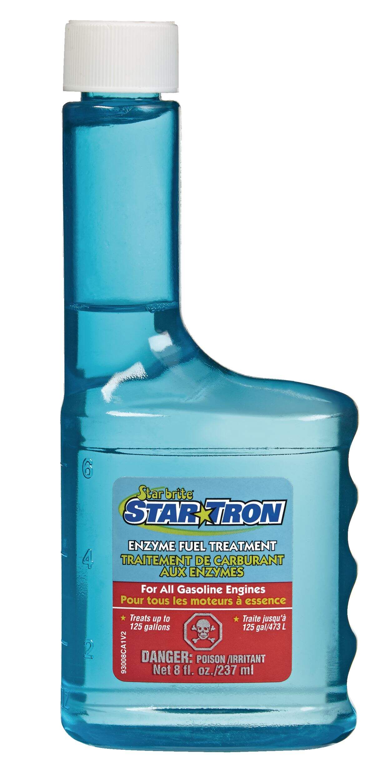 Le traitement du carburant Star Tron enzyme est un additif de carburant multifonctionnel qui utilise une technologie enzymatique unique qui permet à tous les moteurs de démarrer facilement et de tourner en douceur, même lorsqu'ils utilisent un mélange de carburant à l'éthanol ou après être restés à l'arrêt pendant des mois. Star Tron MD élimine et prévient les problèmes d'éthanol-carburant. Star Tron décompose l'excès d'eau et de boue à un diamètre de sous-micron, ce qui permet de le brûler en toute sécurité pendant le fonctionnement normal du moteur, aidant ainsi à prévenir la démixtion. Star Tron MD améliore l'économie de carburant en nettoyant tout le circuit d'alimentation et en éliminant les dépôts de gomme et de vernis nuisant à la performance tout en modifiant la façon dont le carburant brûle. Il en résulte une combustion plus complète et uniforme, une performance maximale, une consommation de carburant plus efficace, une réduction des émissions et un fonctionnement fiable. Star Tron stabilise le carburant pendant 2 ans, empêchant la formation de gomme et d'autres solides qui obstruent les carburateurs et les injecteurs de carburant. Star Tron peut rehausser votre utilisation de vieux carburant et de carburant de qualité inférieure. Star Tron peut être utilisé dans toutes les voitures, motocyclettes et motoneiges et dans tous les hors-bord, en-bord, camions, véhicules tout-terrain, petits moteurs et équipements à moteur pour l'extérieur à essence, y compris les moteurs à prémélange d'essence. Star Tron est sûr pour tous les moteurs et la surutilisation n'est pas nuisible.